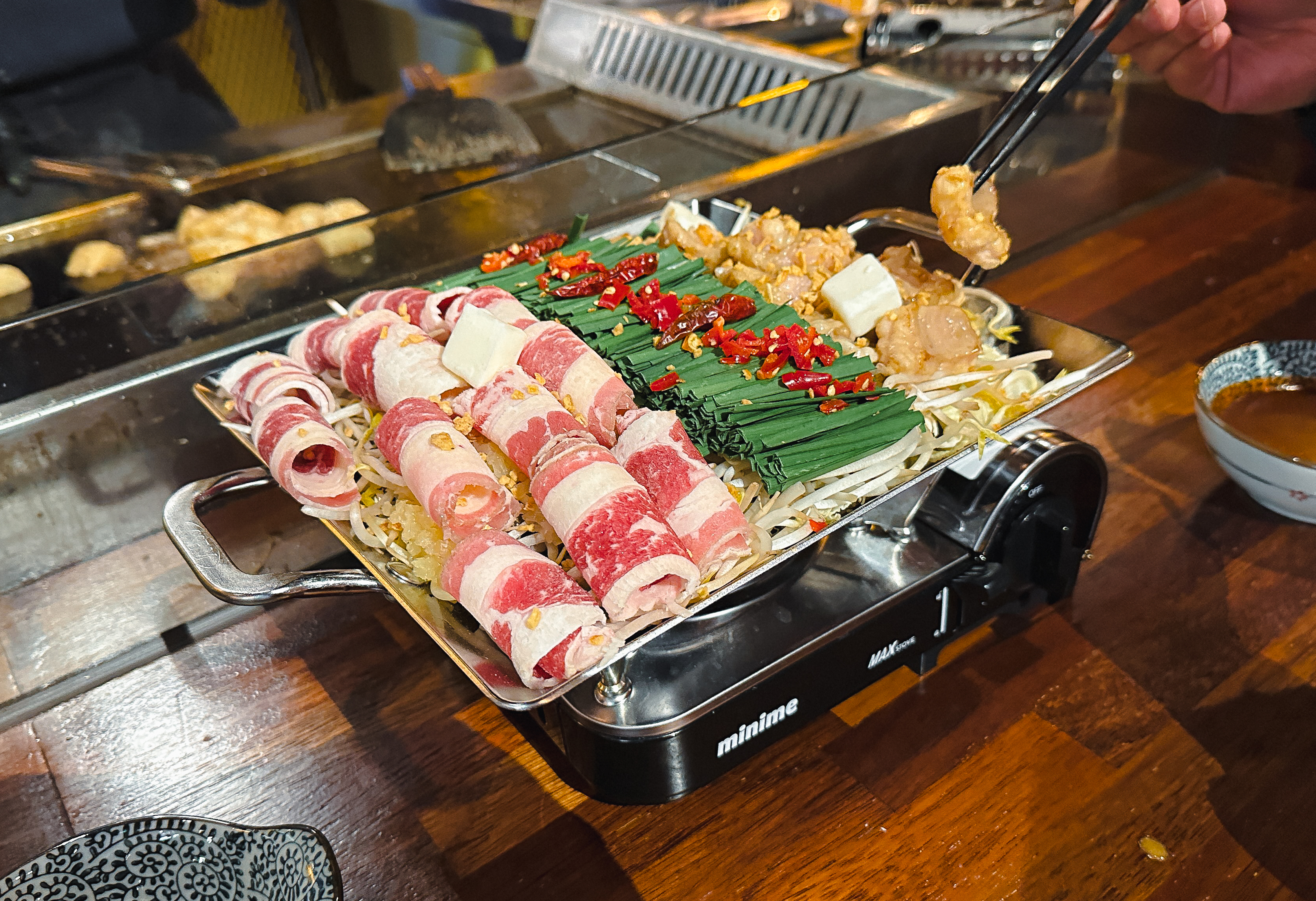 오사카식철판볶음은 숙주와 우삼겹, 대창 등이 올라가 매콤하게 볶아먹는 메뉴였는데, 저는 이 메뉴가 꽤나 인상적이었습니다. 매콤한 철판볶음에 면을 더하니 매콤하게 볶은 파스타를 먹는 느낌이 들더라고요. 겉보기에는 양이 좀 적은 느낌이었는데, 생각보다 양도 넉넉했고 맛이 괜찮았던 메뉴였습니다.