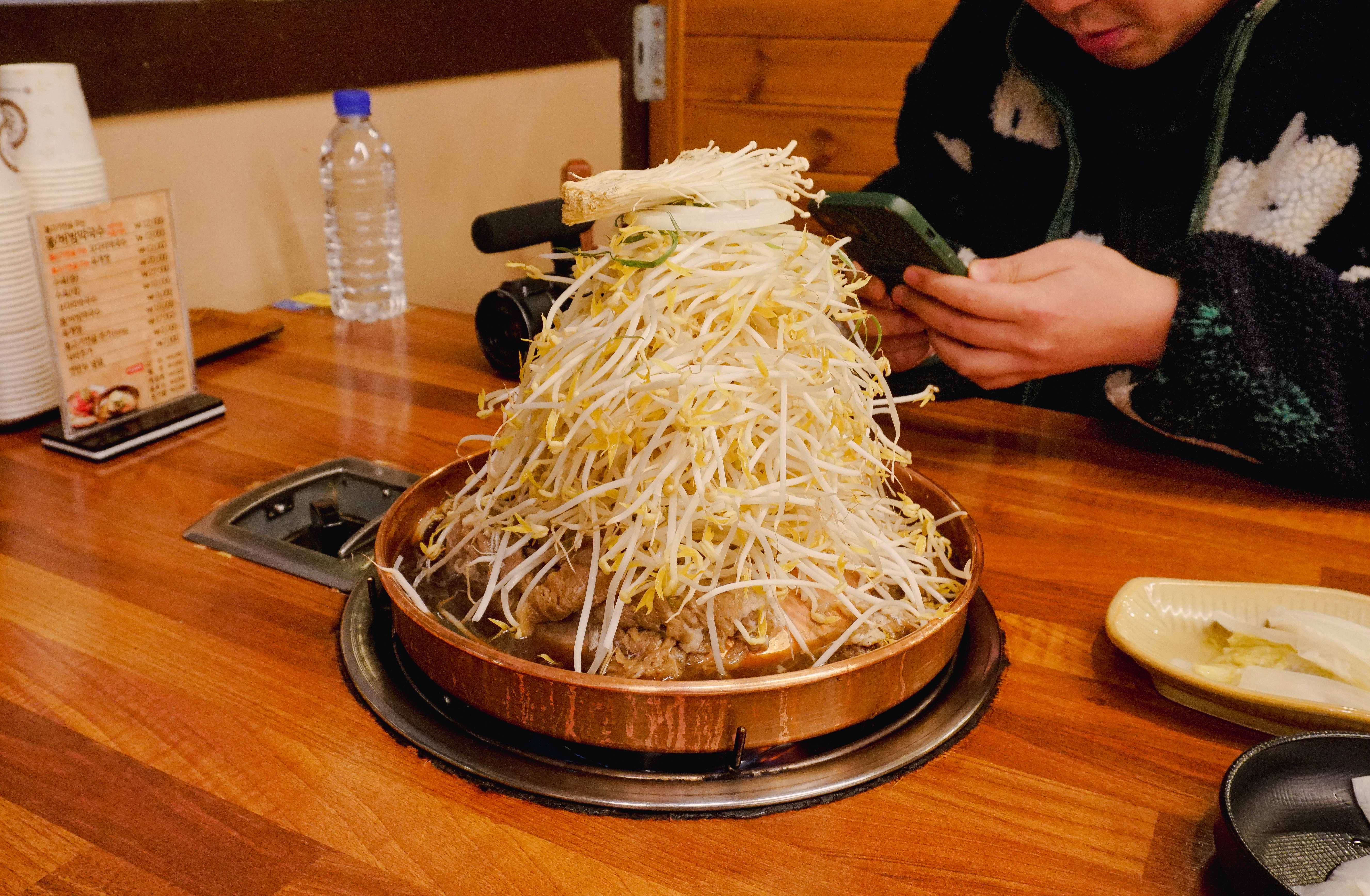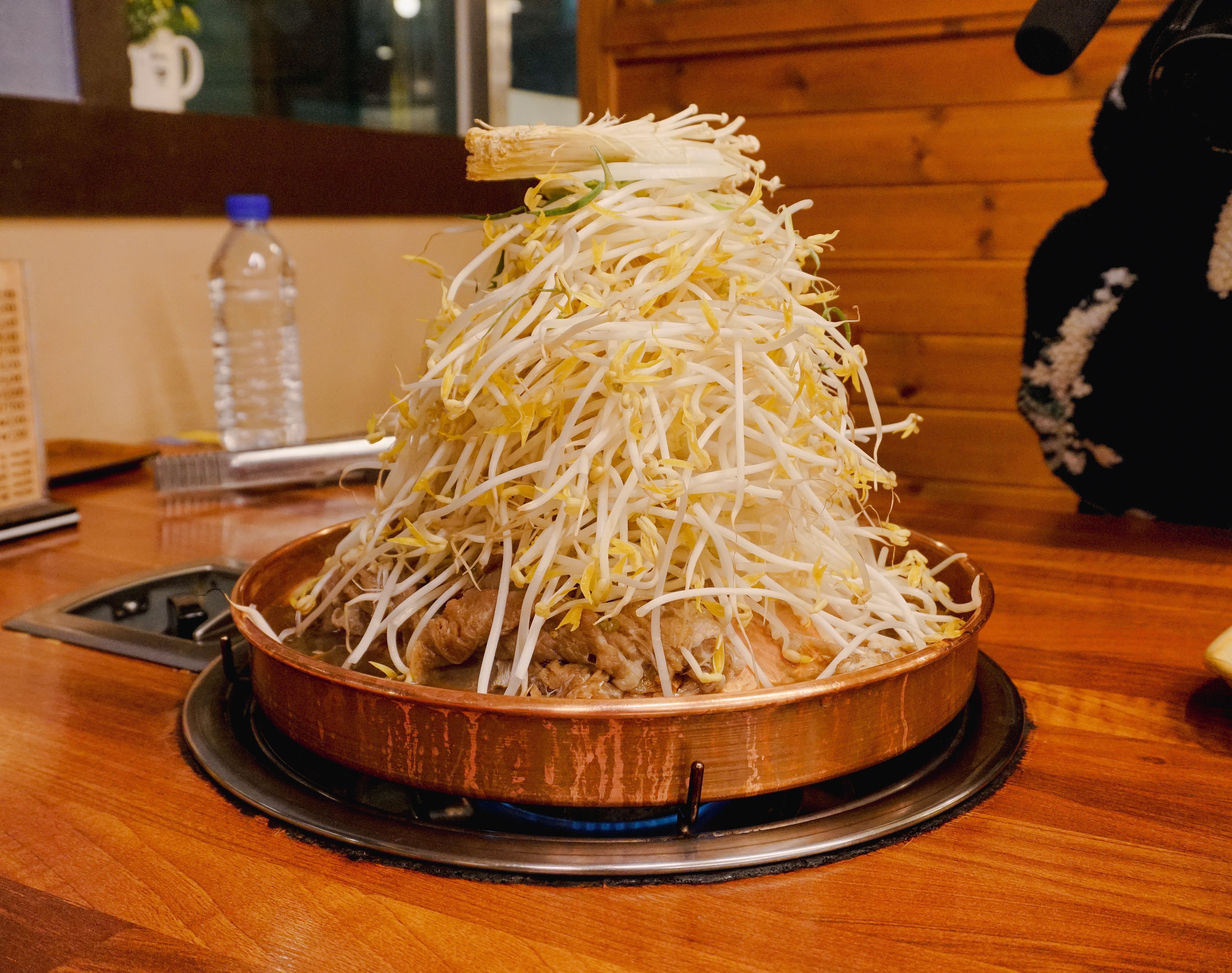 곧이어 막국수에 3,000원 추가하여 주문한 불고기전골이 나왔습니다. 고기 조금에 산더미 같은 숙주가 인상적인 메뉴였는데, 아무래도 서비스에 가까운 메뉴이다 보니 고기의 양이 적은 것은 이해가 되는데, 뭔가 푸짐한 느낌은 없었던 메뉴입니다.