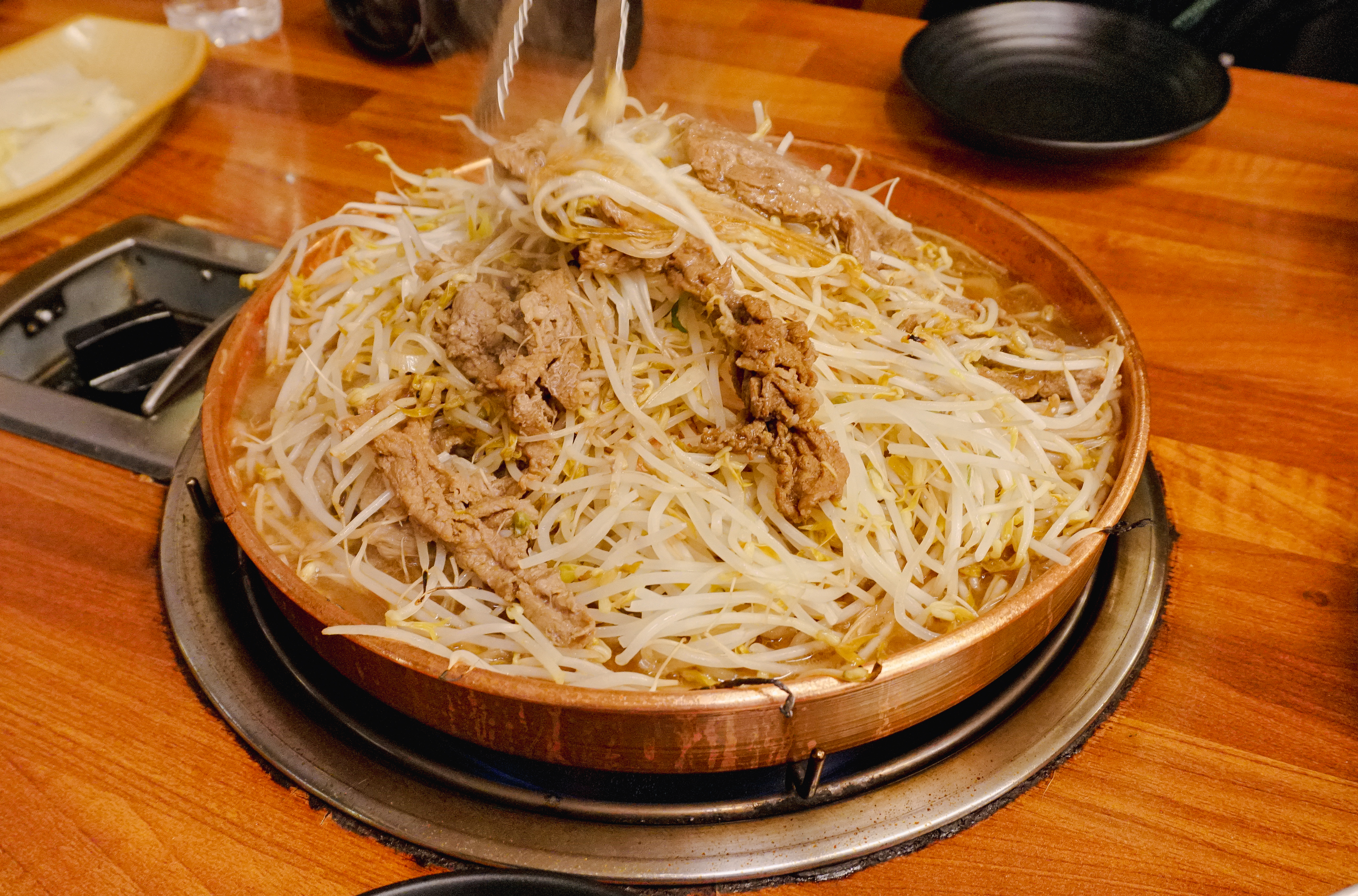 곧이어 막국수에 3,000원 추가하여 주문한 불고기전골이 나왔습니다. 고기 조금에 산더미 같은 숙주가 인상적인 메뉴였는데, 아무래도 서비스에 가까운 메뉴이다 보니 고기의 양이 적은 것은 이해가 되는데, 뭔가 푸짐한 느낌은 없었던 메뉴입니다.