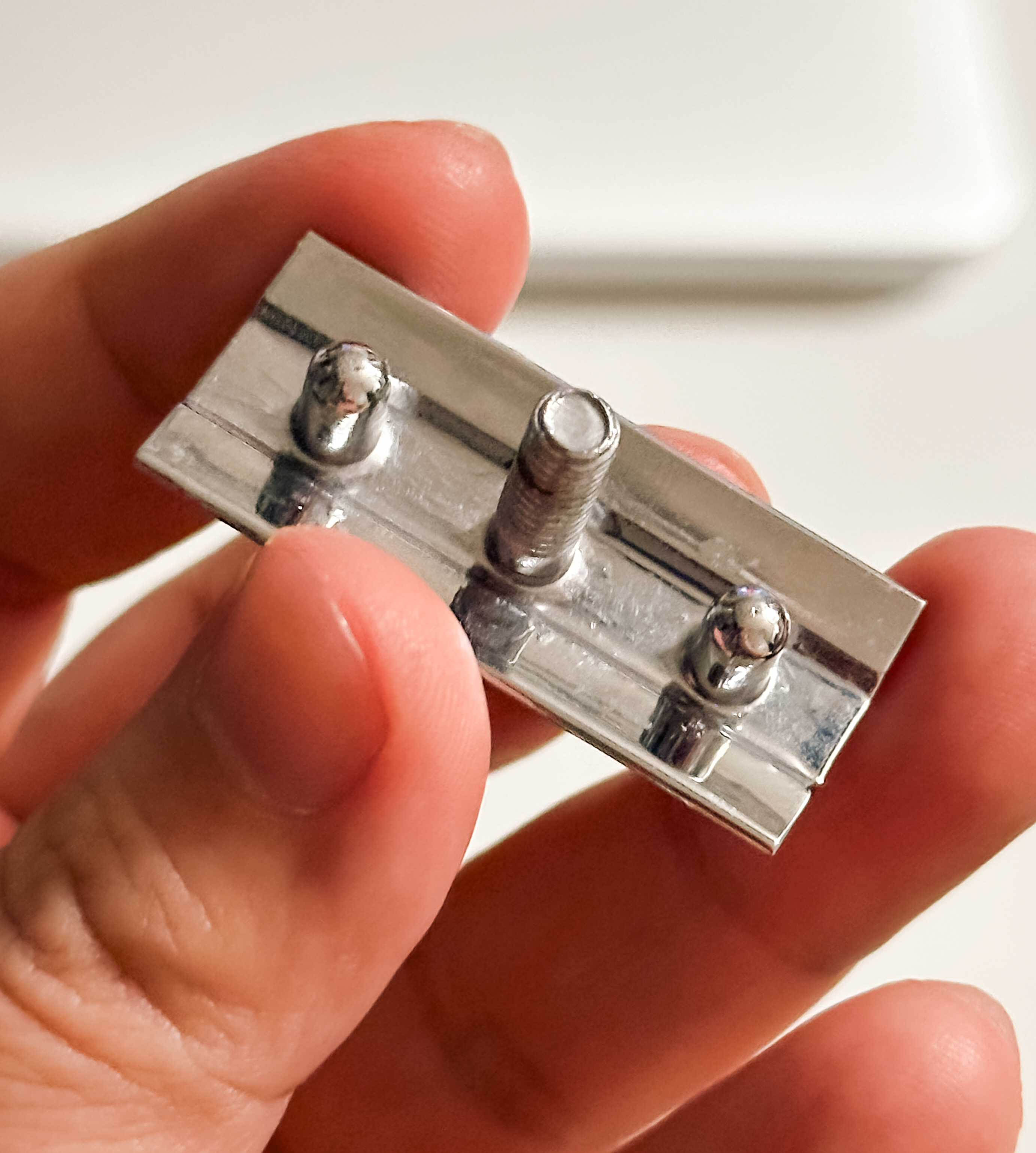 면도기 하단의 면도 강도를 조절하는 래버를 돌리면 상단의 면도기 헤드가 분리됩니다. 면도기 헤드의 고정핀에 면도기날을 걸쳐줍니다. 이후에 면도기 헤드를 면도기에 결착한 뒤 아래의 래버를 돌려 면도기 조립을 완료합니다.