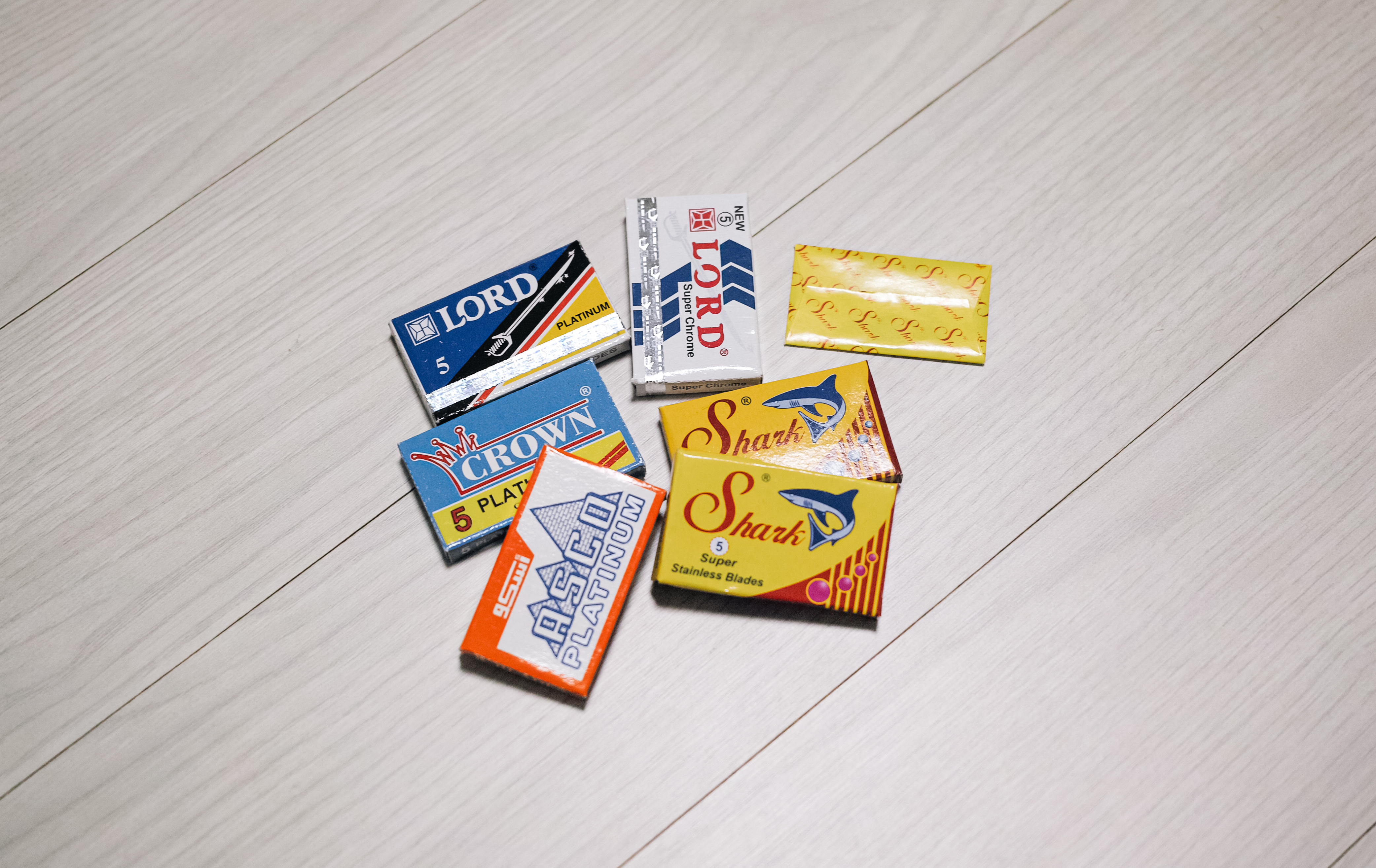 바르베로에서 제공해 준 일회용 면도기날의 모습입니다. LORD, SHARK, CROWN, ASCO 등의 브랜드 면도기날을 제공해 주셨고, 저는 무난한 샤크(Shark) 면도기날을 면도기에 사용하기 위해 준비했습니다.