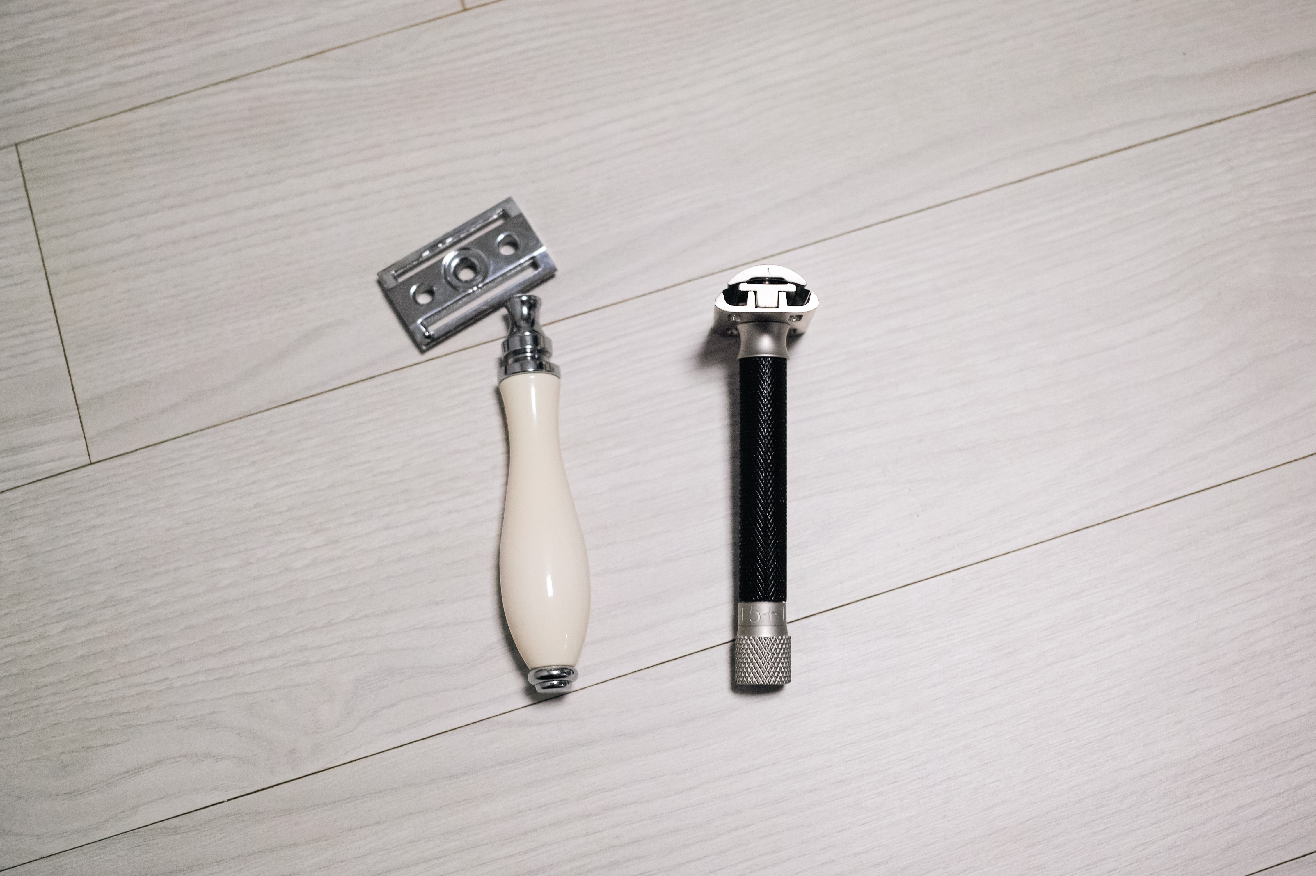 클래식 면도기에는 3가지 종류가 있는데, 하나는 바버샵에서 볼 수 있는 '일자면도기(외날면도기)'이며, '쓰리피스'와 '버터플라이오픈' 형태로 나뉩니다. 가장 보편적으로 쓰이는 안전면도기는 쓰리피스 면도기인데, 제가 받은 베리언트 모델은 '쓰리피스'에 해당되었습니다.