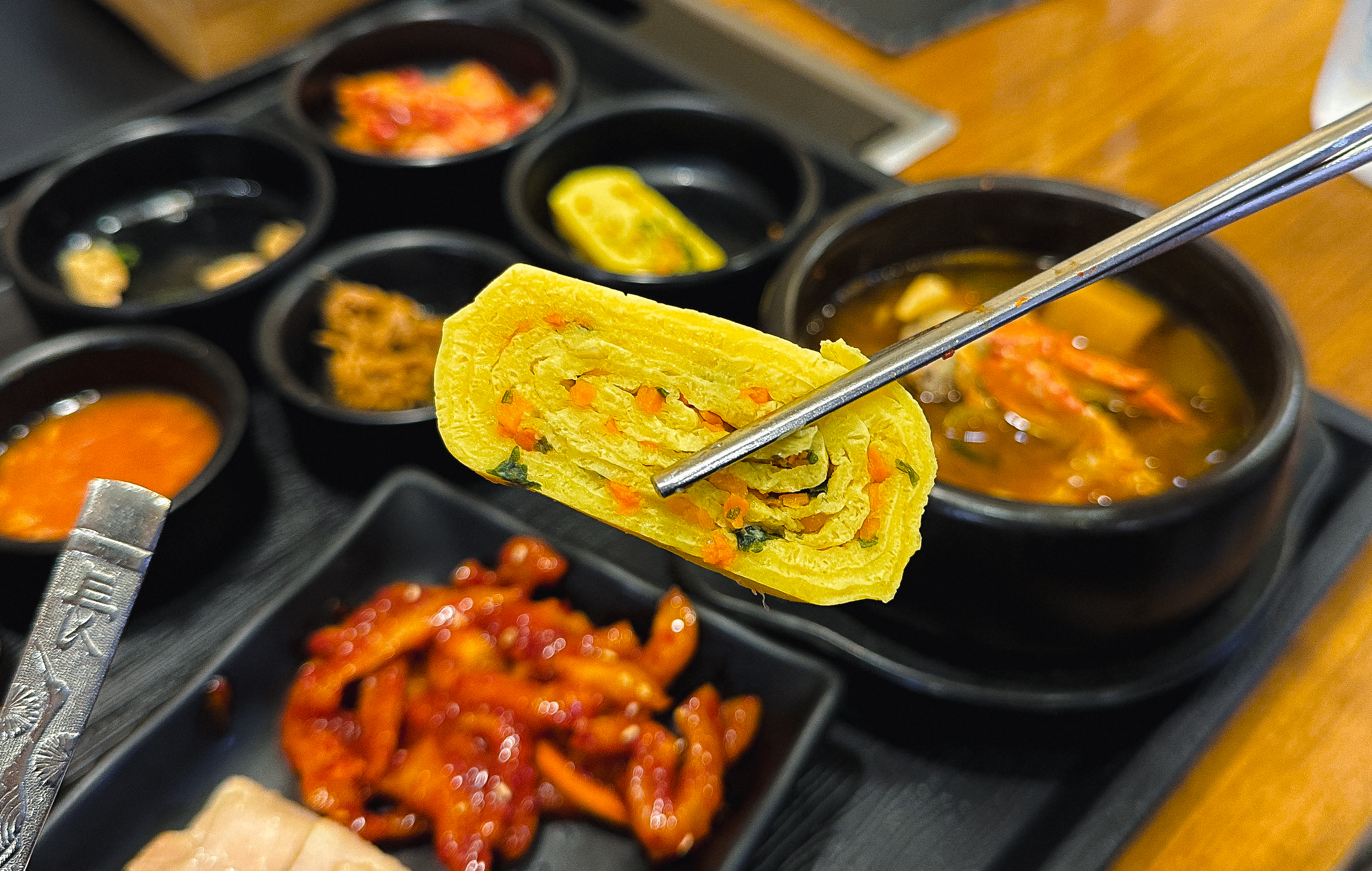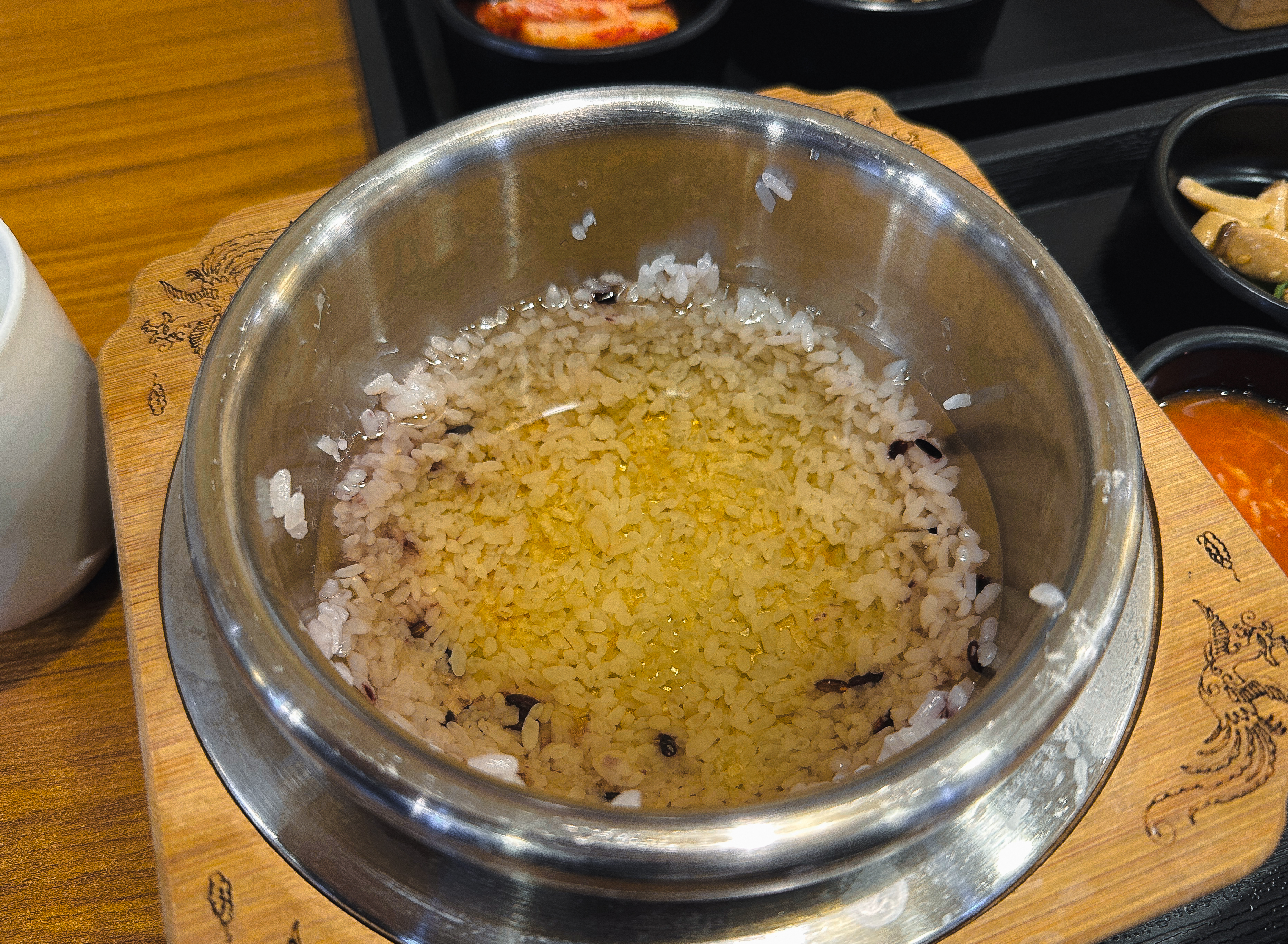 밑반찬은 배추김치, 장조림, 달걀말이를 제외하고 나머지 한 가지 반찬은 바뀌고 있었는데, 이번엔 버섯볶음이 나왔더라고요. 반찬은 썩 맛있는 편은 아닌데, 나오니까 같이 먹는 느낌?