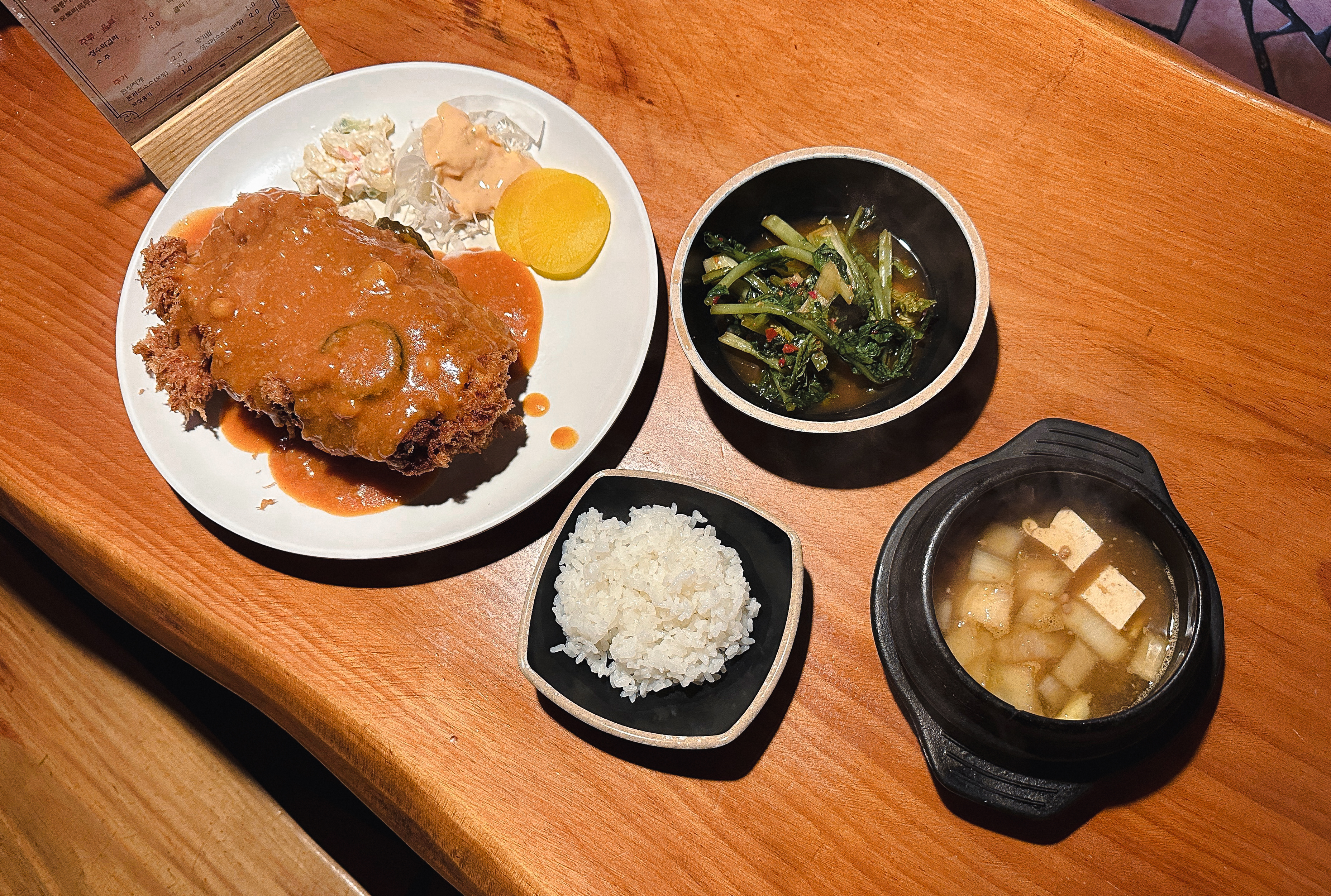 된장찌개는 집된장이라 불리는 구수한 맛의 된장을 사용해서 건더기는 두부랑 양파뿐이지만 맛있었고, 열무김치도 시원하고 아삭한 맛이 돈까스의 느끼함을 잡아주었습니다. 자, 이제 정리를 해볼까요?