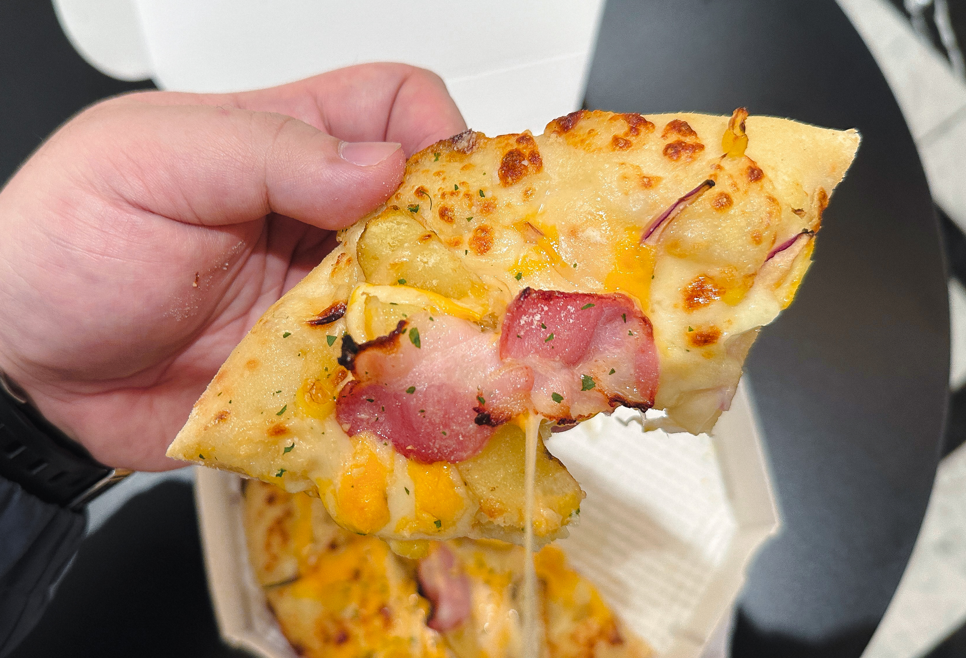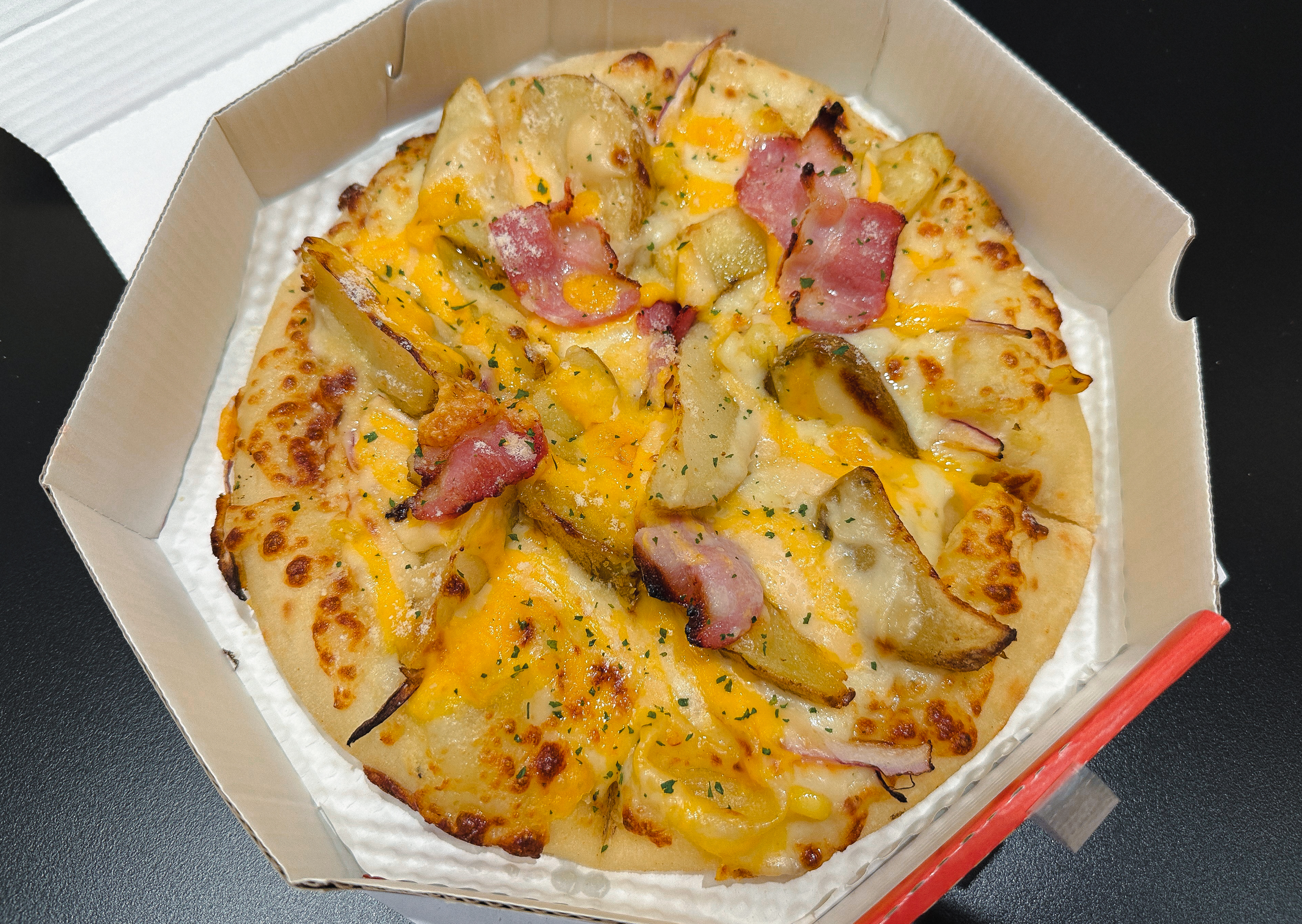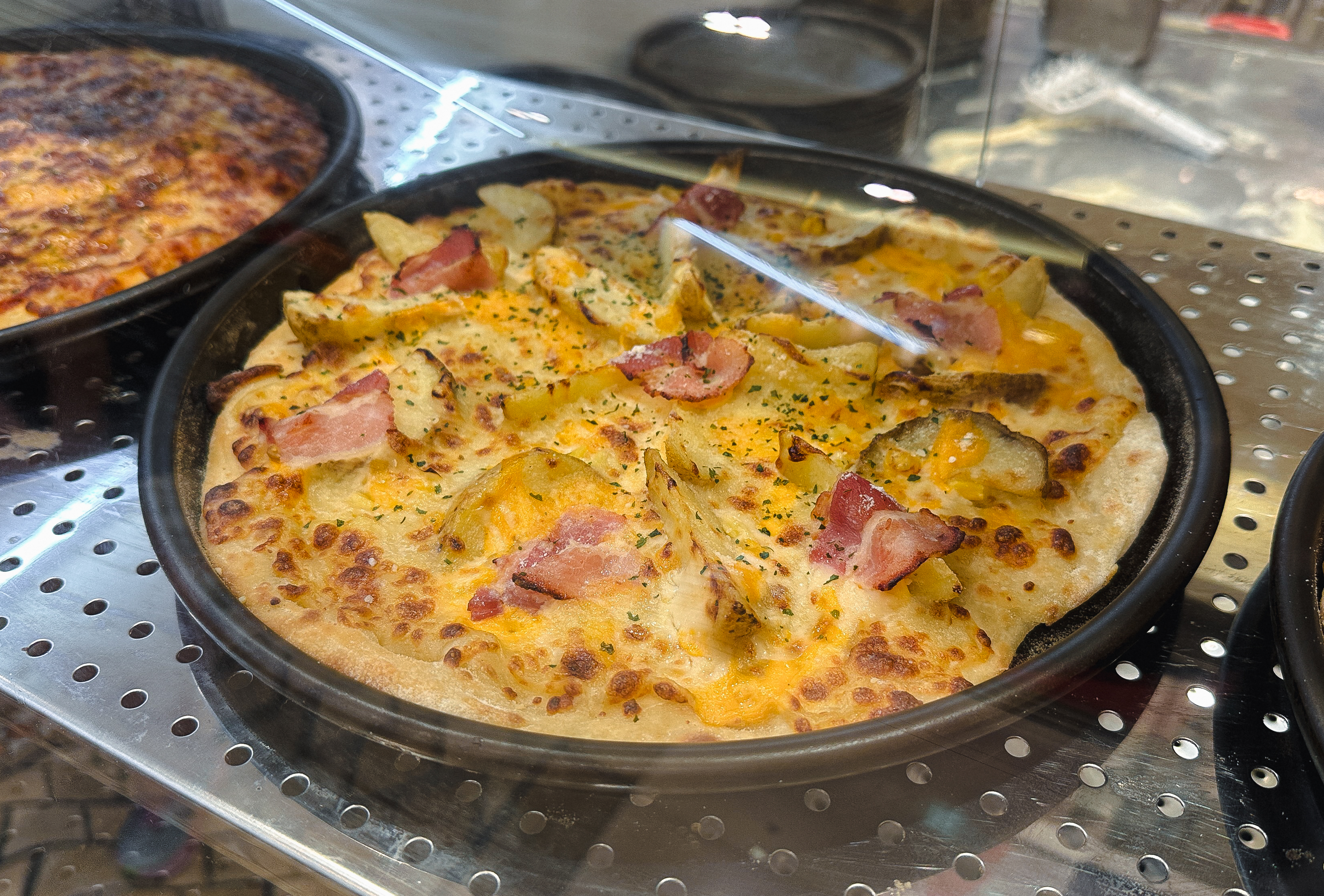 고속터미널역에 있는 신세계백화점 강남점에서 로얄 체다 포테이토 피자를 먹었습니다. 고소하고 진한 맛이 좋았고, 감자와 베이컨까지 들어가 입맛에 잘 맞았습니다. 원래는 바질 토마토 마스카포네 피자를 먹어보고 싶었는데, 가격에 마음이 흔들려 이 메뉴를 먹었네요. 다음에는 바질 토마토 마스카포네 피자를 한 번 먹어봐야겠습니다.