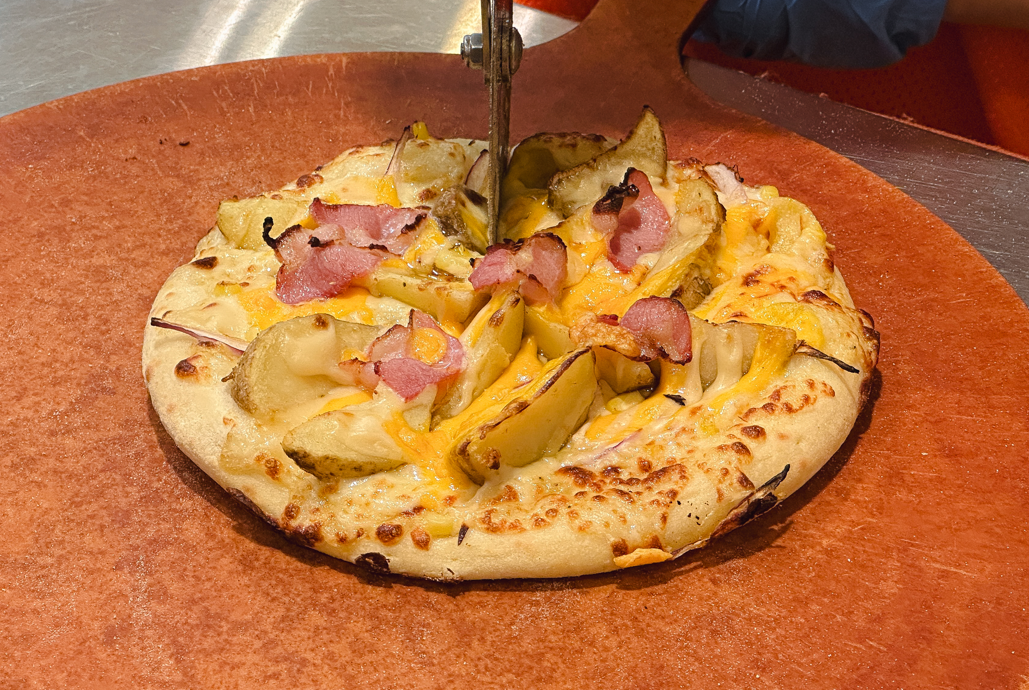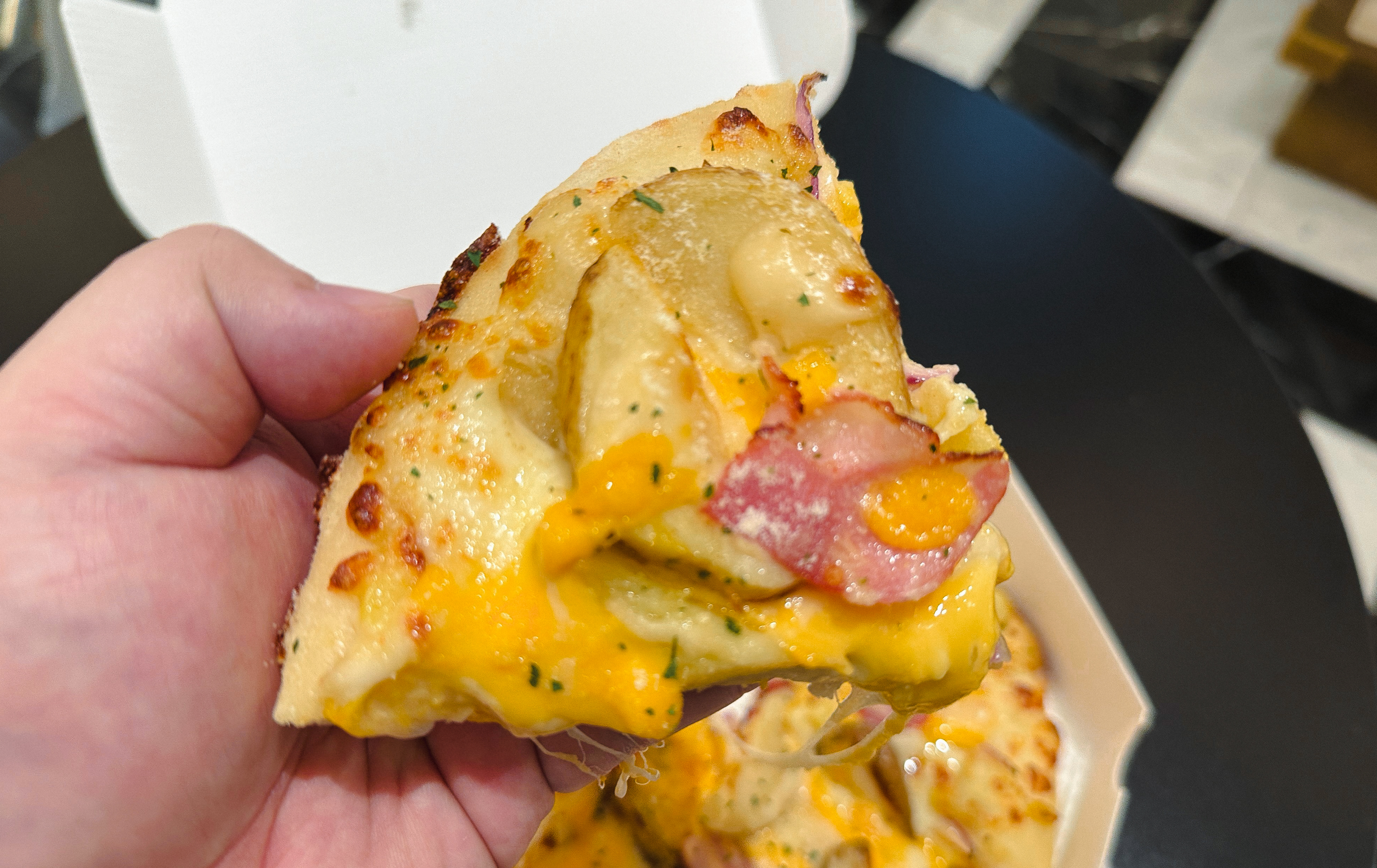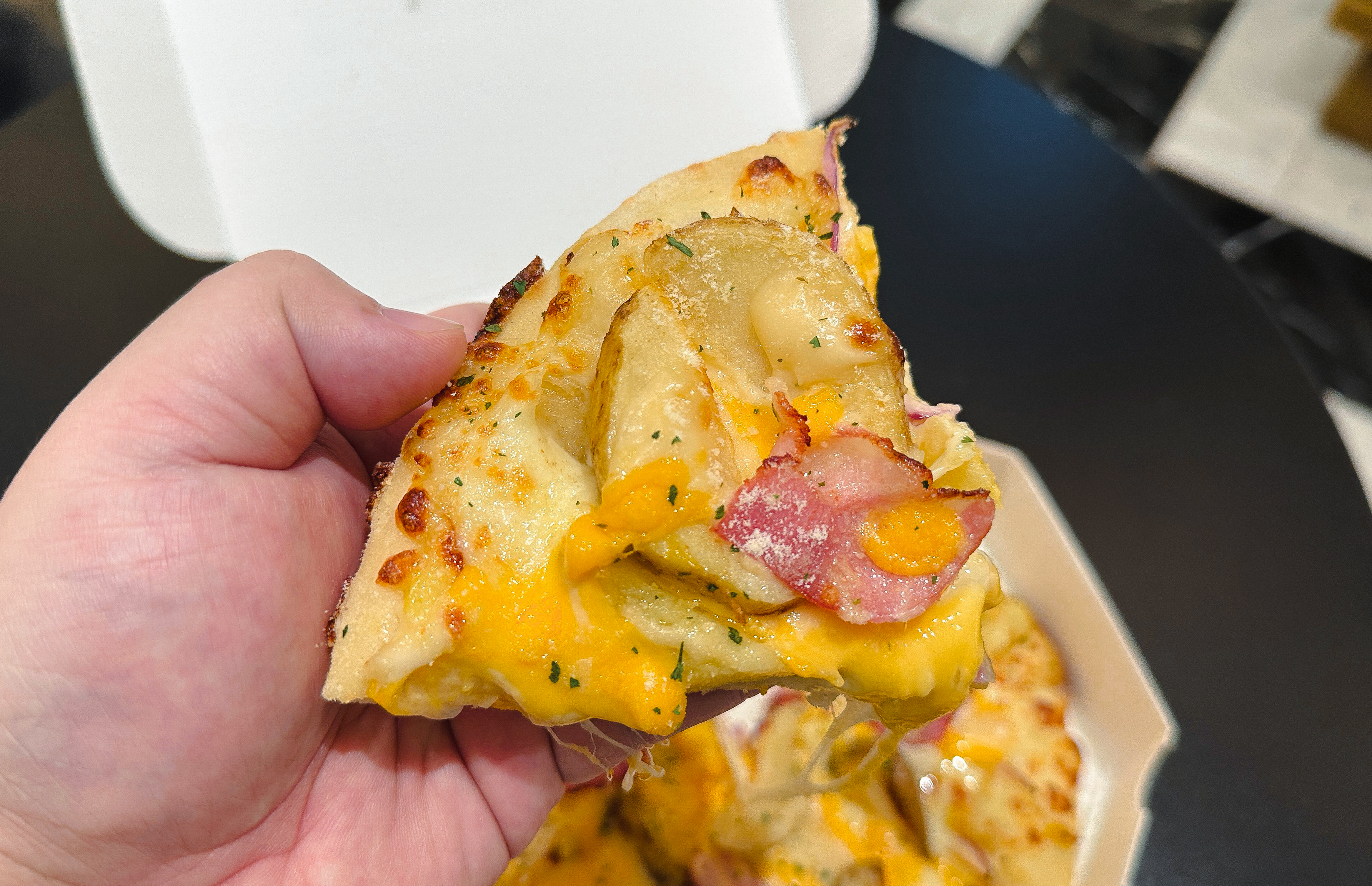 고속터미널역에 있는 신세계백화점 강남점에서 로얄 체다 포테이토 피자를 먹었습니다. 고소하고 진한 맛이 좋았고, 감자와 베이컨까지 들어가 입맛에 잘 맞았습니다. 원래는 바질 토마토 마스카포네 피자를 먹어보고 싶었는데, 가격에 마음이 흔들려 이 메뉴를 먹었네요. 다음에는 바질 토마토 마스카포네 피자를 한 번 먹어봐야겠습니다.