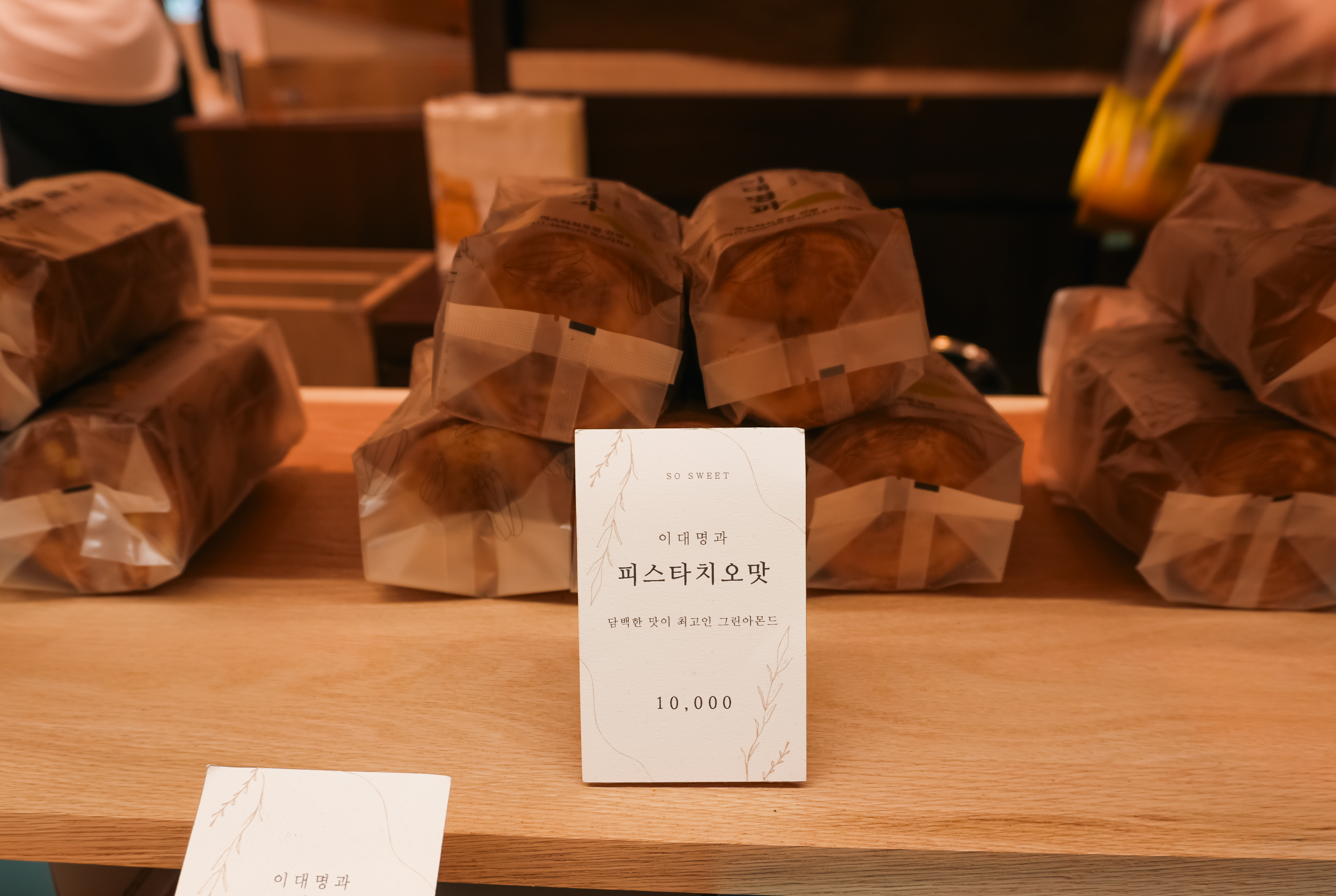 저는 이대명과의 베스트 메뉴인 땅콩맛과 김파래맛을 먹어보았는데, 김파래맛도 좋았지만 땅콩맛이 가장 보편적이고 맛있는 것 같았습니다. 사실 피스타치오와 잣도 맛있어 보이긴 했는데, 가격대가 조금 있어서 기본맛인 땅콩맛을 먹었고요. 김파래맛은 살짝 입에 김가루(?)가 달라붙어 깨끗이 먹기가 살짝 불편하더라고요. 땅콩맛은 진짜 맛있어요. 추천드립니다.