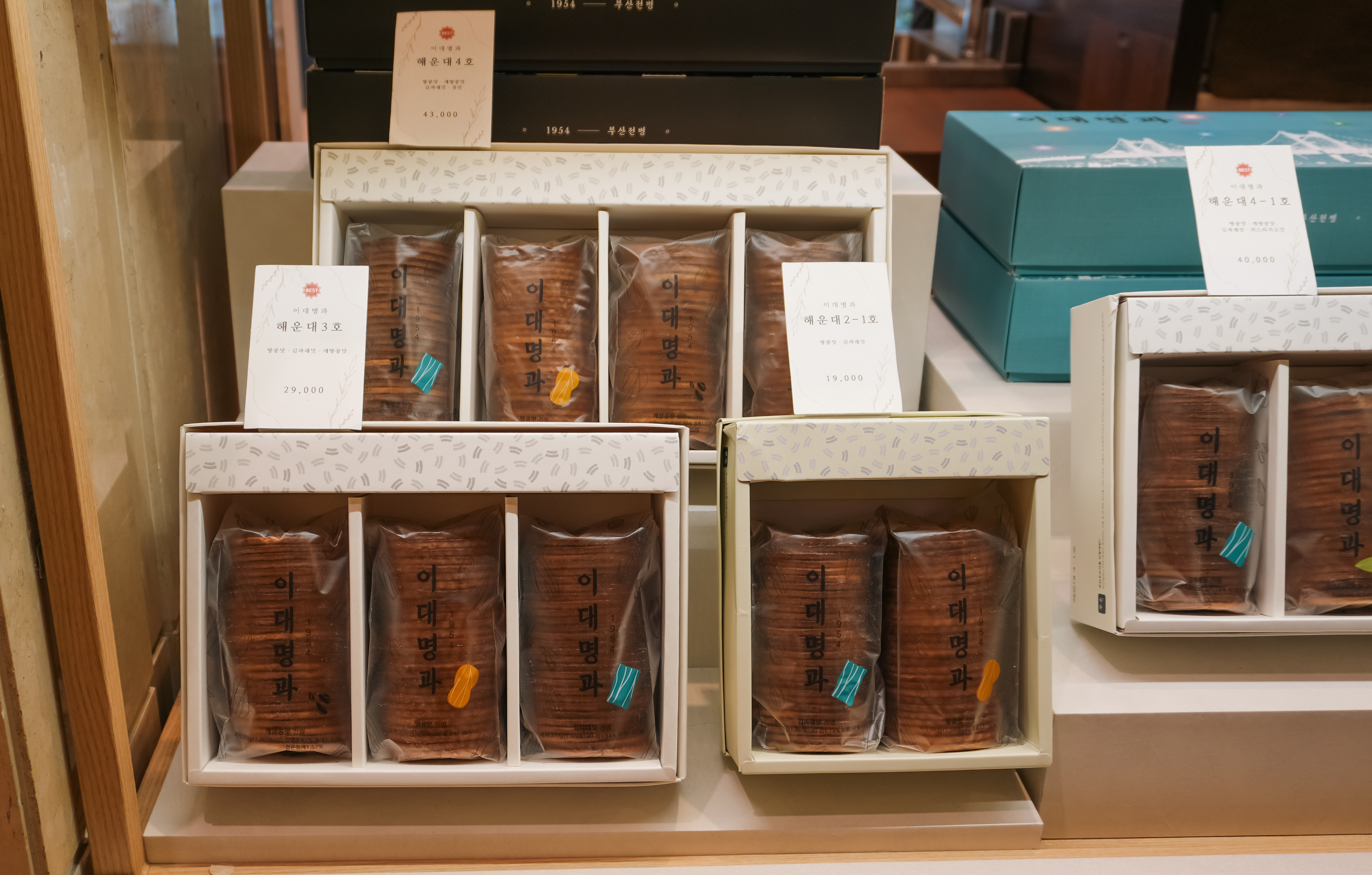 신세계백화점 강남점 '이대명과'에는 다양한 선물세트가 준비되어 있었는데, 종류는 땅콩맛, 깨땅콩맛, 김파래맛, 피스타치오맛, 피칸맛, 잣맛 전병이 있었습니다. 이대명과의 전병은 다양한 견과류를 이용해 만드는 맛있는 전병을 판매하고 있었고, 어른아이 할 것 없이 선물 받으면 기분 좋을 것 같은 고급스러운 포장으로 구성되어 있었습니다.