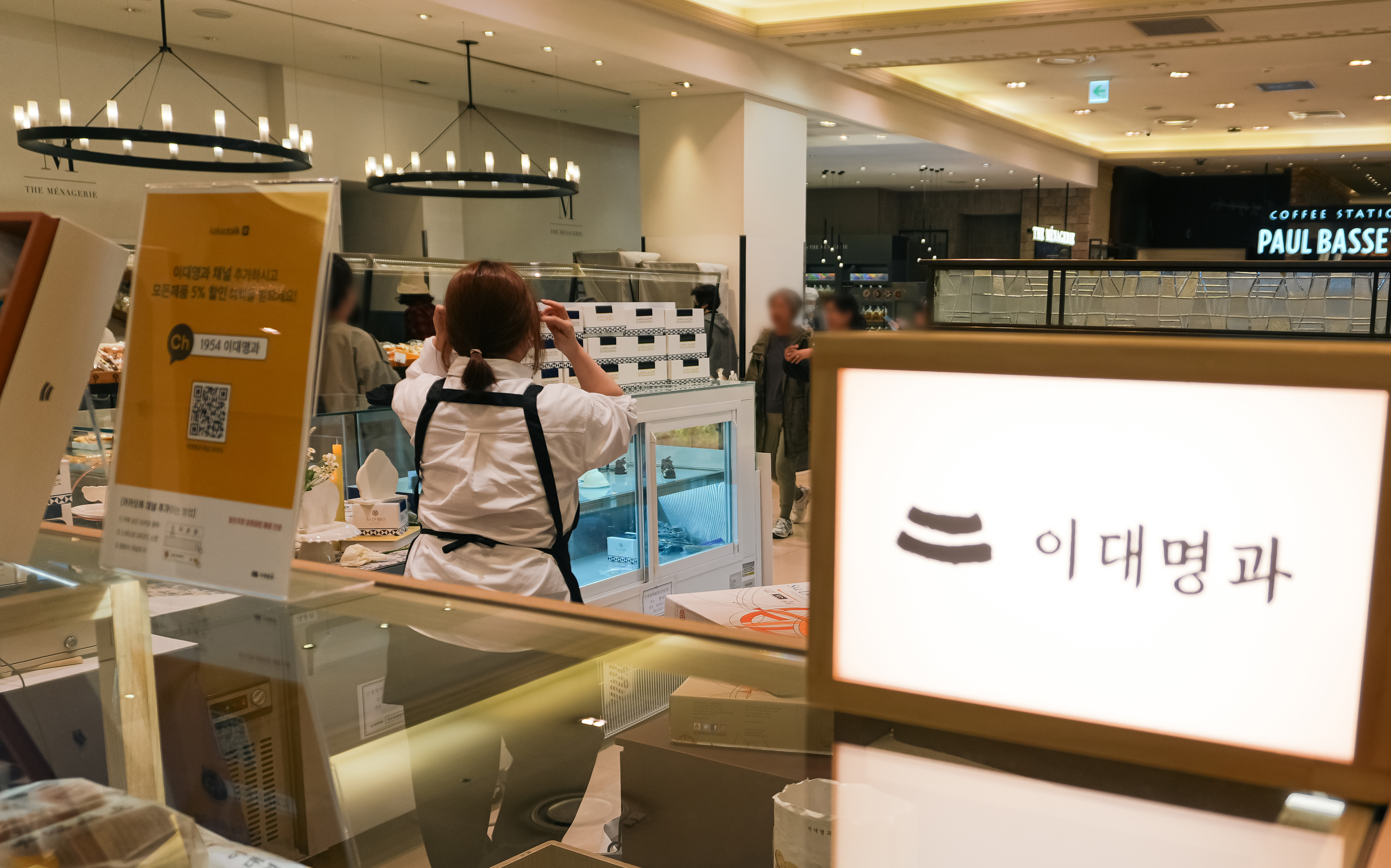 이대명과는 서울 서초구 반포동 19-3, B1에 위치한 신세계백화점 강남점 '신세계 푸드마켓'에 위치해 있었습니다. 신세계백화점 지하 1층에 스위트파크와 푸드마켓이 있는데, 푸드마켓 안으로 들어가시면 1층에서 B1층으로 내려오는 에스컬레이터 바로 앞에서 만날 수 있었습니다.