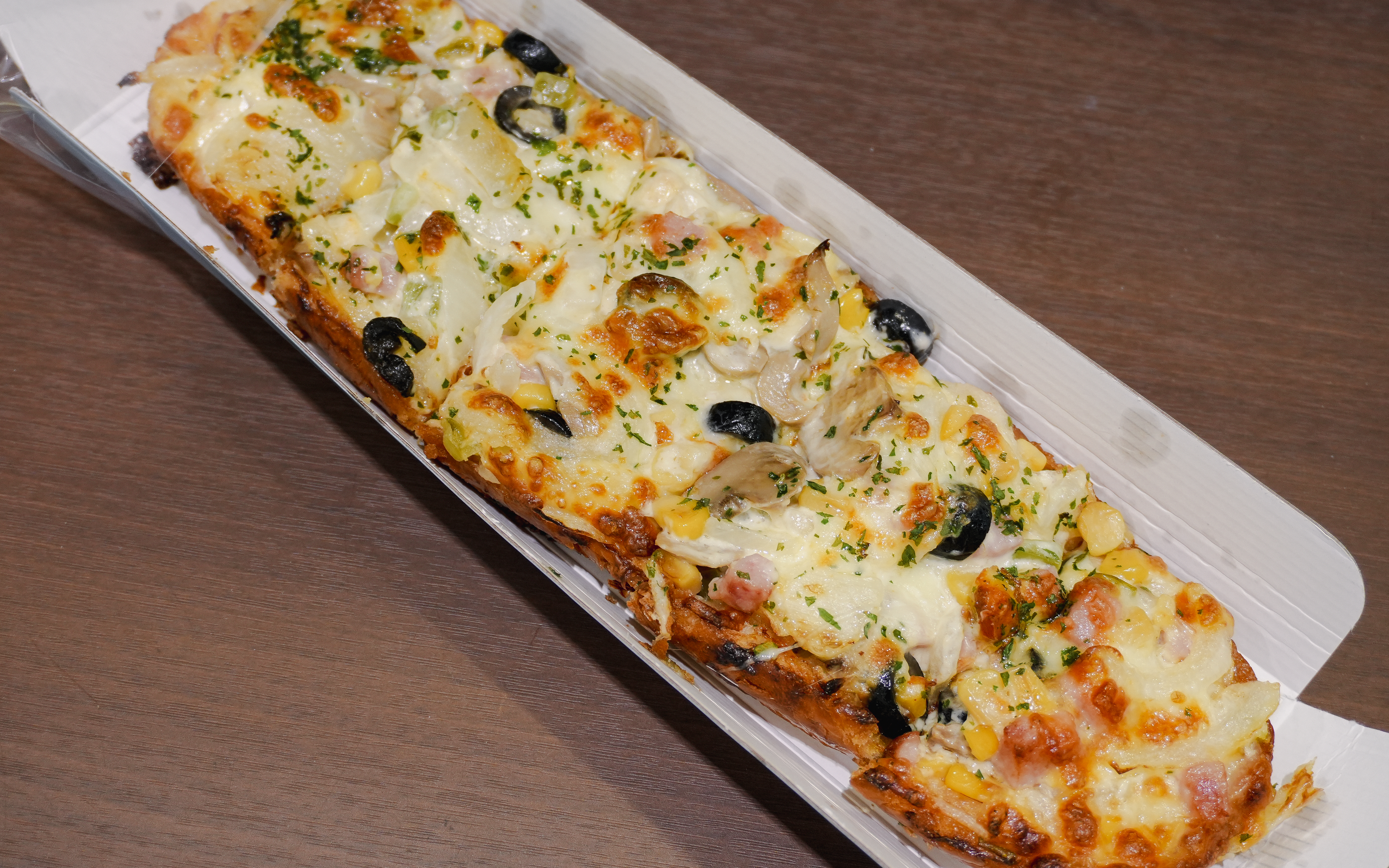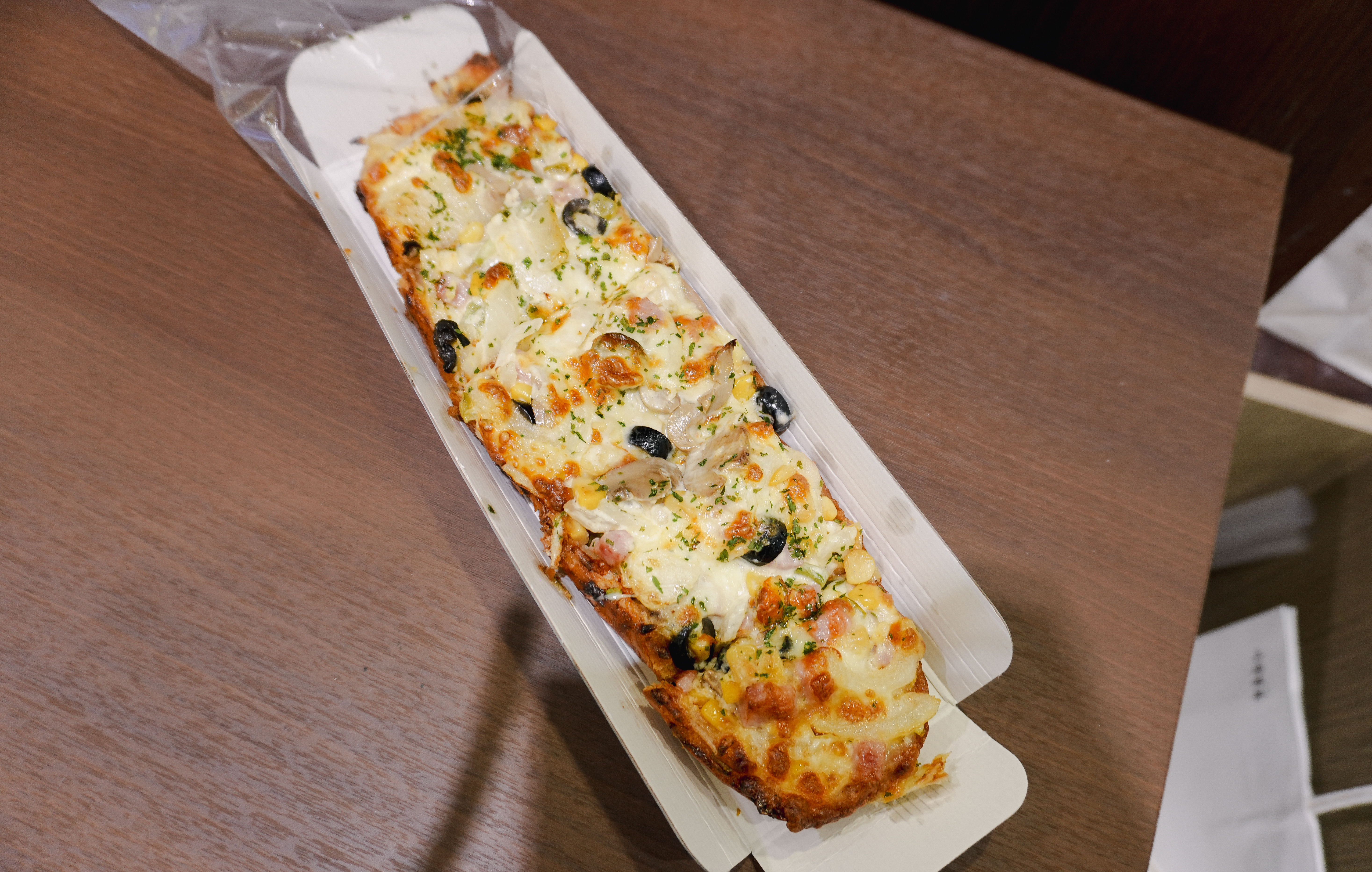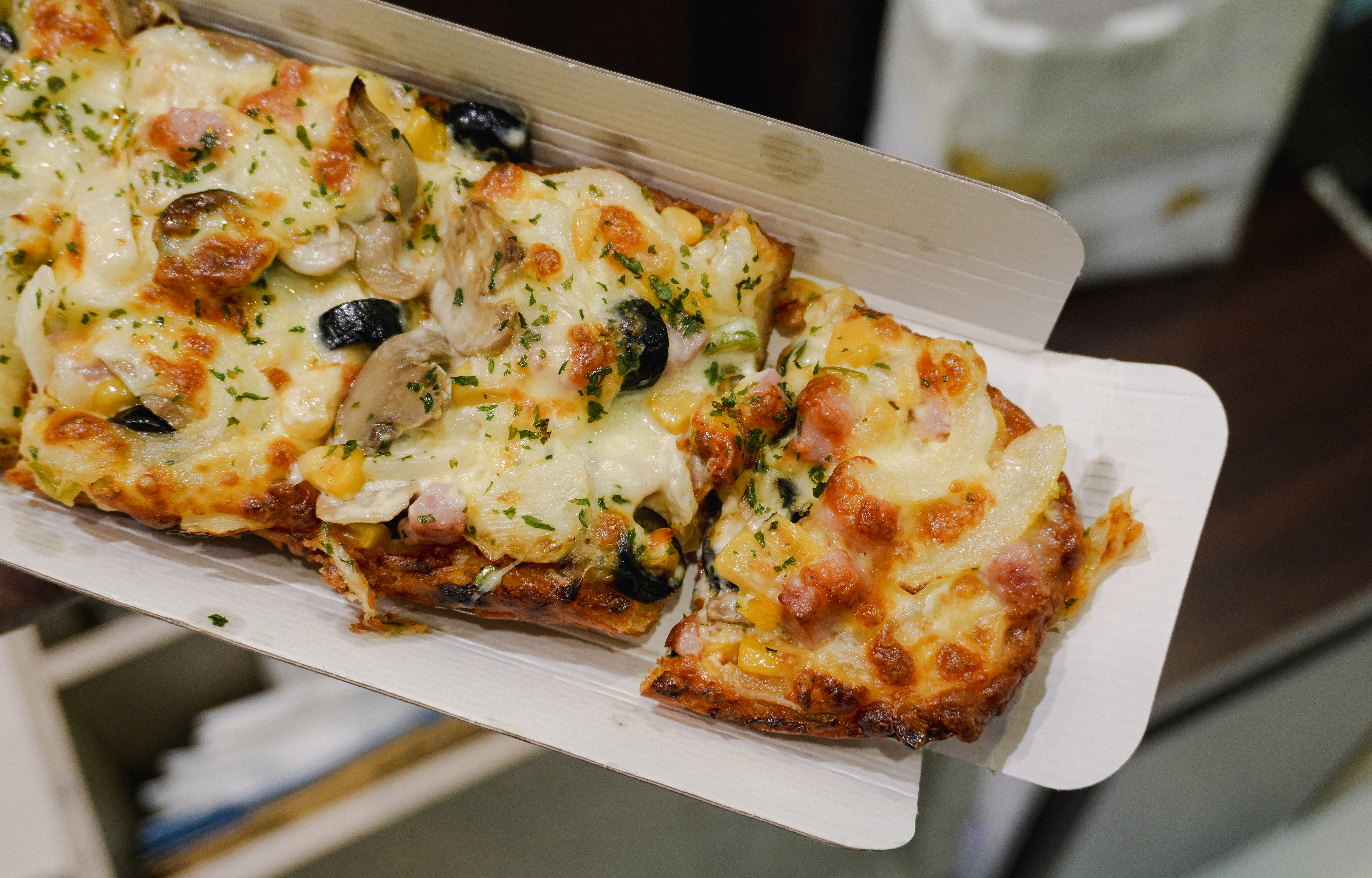 더 메나쥬리 피자빵은 피자치즈에 올리브와 콘샐러드, 햄, 양파, 버섯등이 들어가 고소하고 맛있었습니다. 재료가 5,900원에 비해 듬뿍 들어가 가성비가 정말 좋았습니다. 먹어보니 왜 항상 손님들이 줄 서서 사가시는지 알 것 같더라고요.