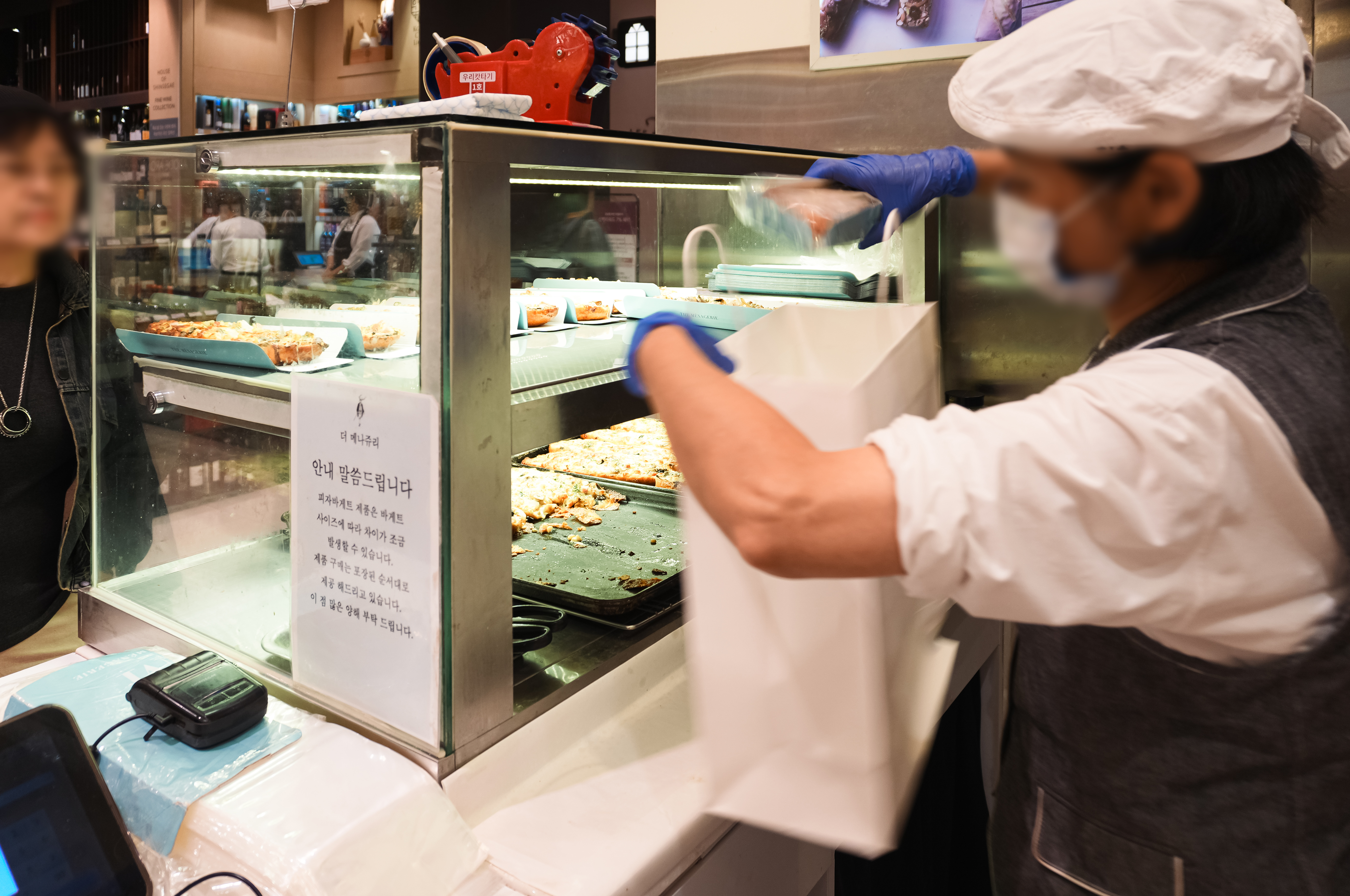 강남 신세계 백화점 '더 메나쥬리'는 제가 '살데리소(Sal De Riso)'의 디저트 판매를 할 때마다 건너편에 줄 서는 모습을 자주 봐서 항상 그 맛이 궁금했었는데, 이번에 한 번 궁금했던 피자빵을 먹어보았습니다.