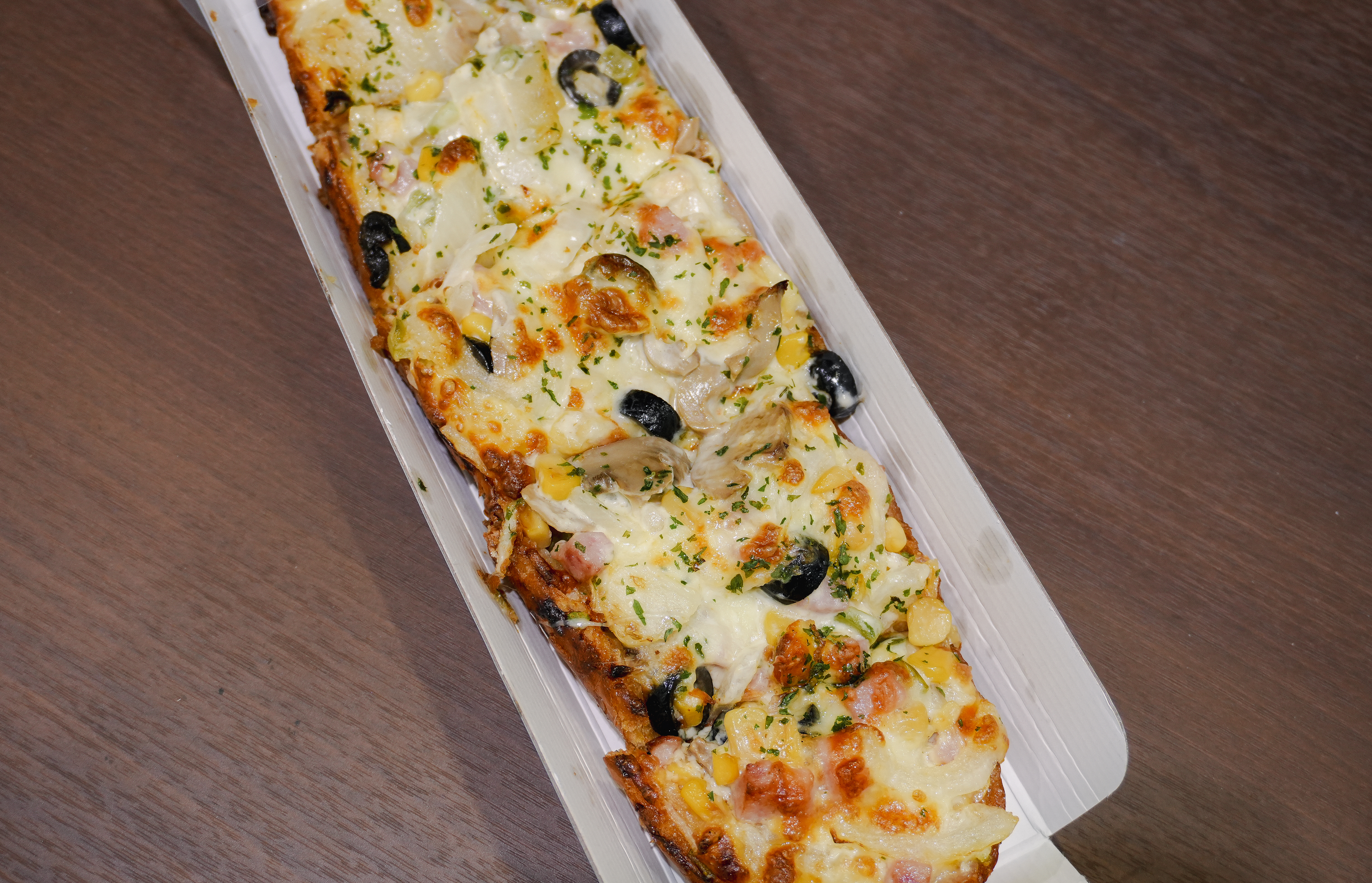 더 메나쥬리 피자빵은 피자치즈에 올리브와 콘샐러드, 햄, 양파, 버섯등이 들어가 고소하고 맛있었습니다. 재료가 5,900원에 비해 듬뿍 들어가 가성비가 정말 좋았습니다. 먹어보니 왜 항상 손님들이 줄 서서 사가시는지 알 것 같더라고요.