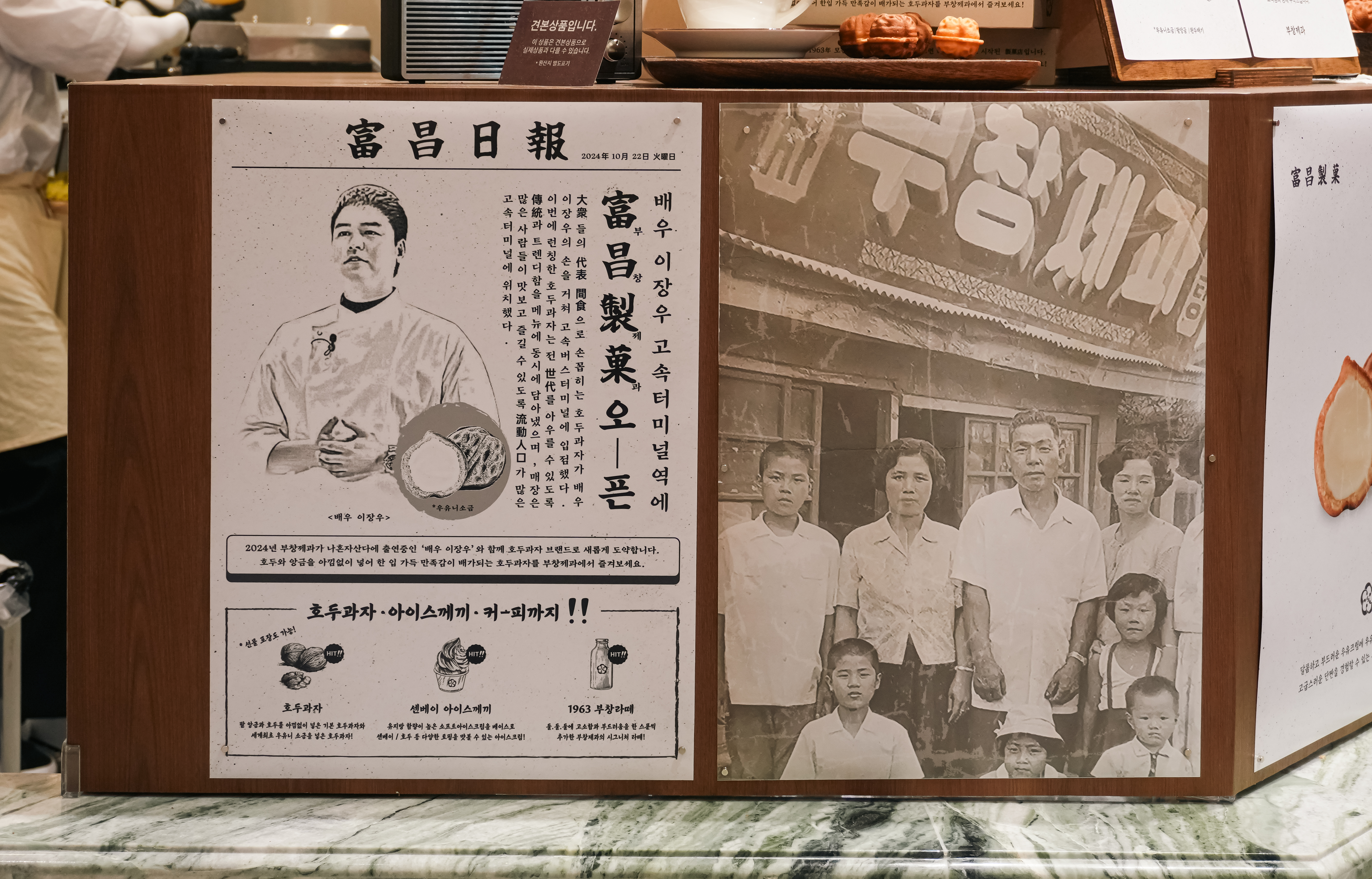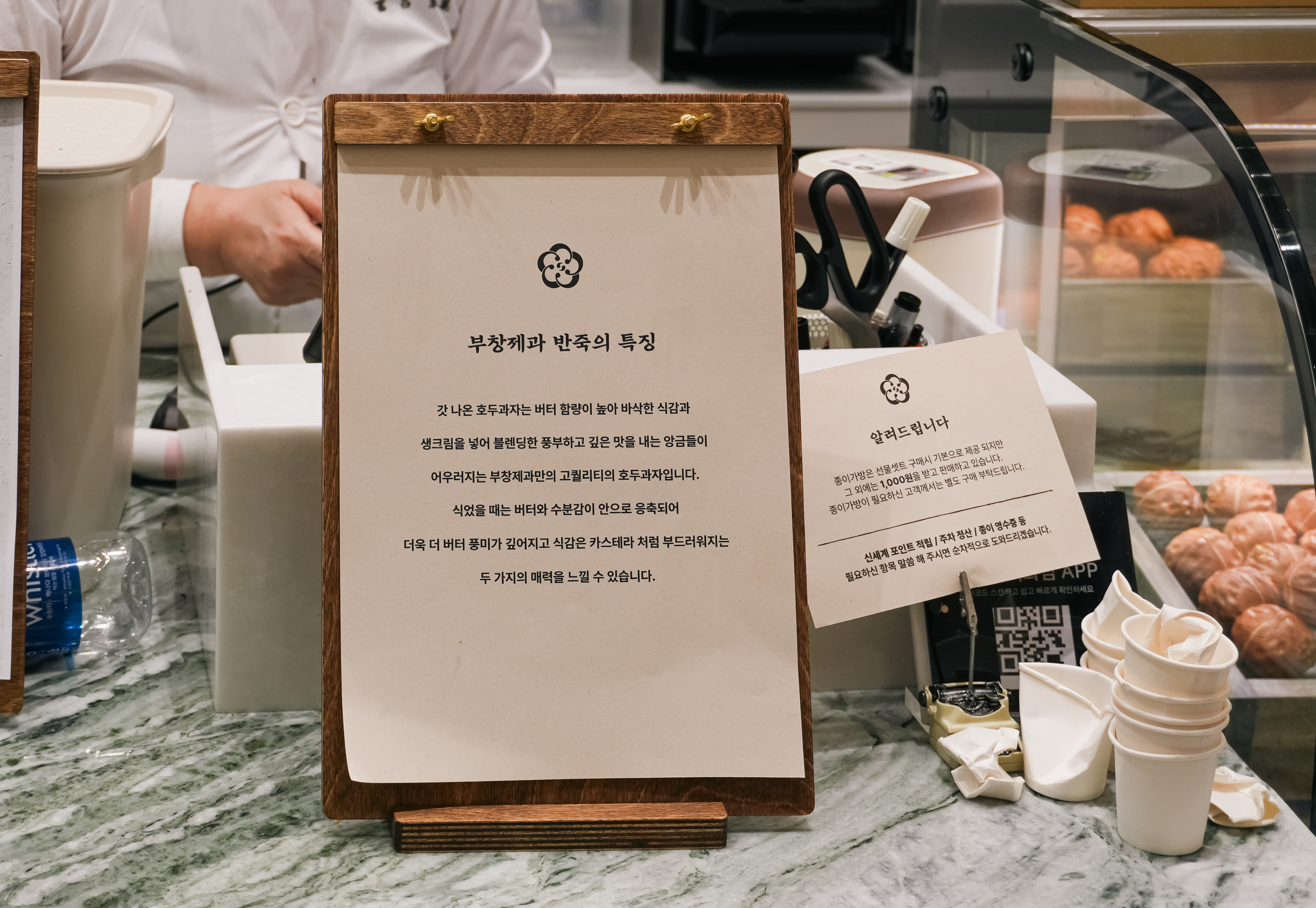 부창제과는 호두과자를 전문으로 하는 브랜드로, 다양한 맛의 호두과자와 함께 아이스크림, 커피 등의 디저트를 판매하고 있었습니다. 매장은 서울 서초구 신반포로 176, 지하 1층 강남신세계백화점 스위트파크에 위치해 있었고, 2024.10.22. 오픈할 때 배우 이장우 님이 한 번 오셨던 것 같은데, 살데리소 팝업으로 근무했던 나머지 2주 동안은 워낙 바쁘셔서 그런 건지 이장우 배우를 한 번도 보지 못했습니다.