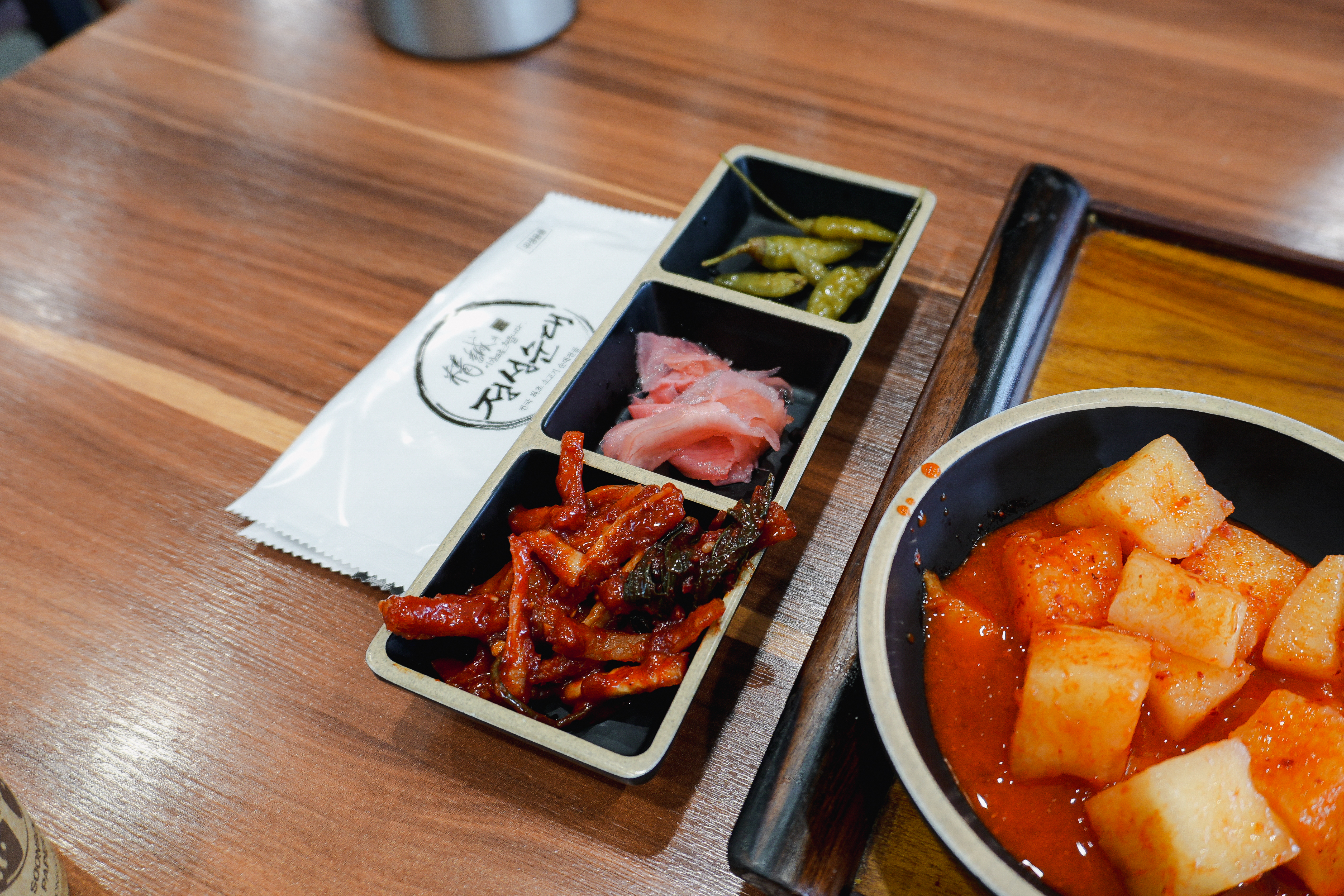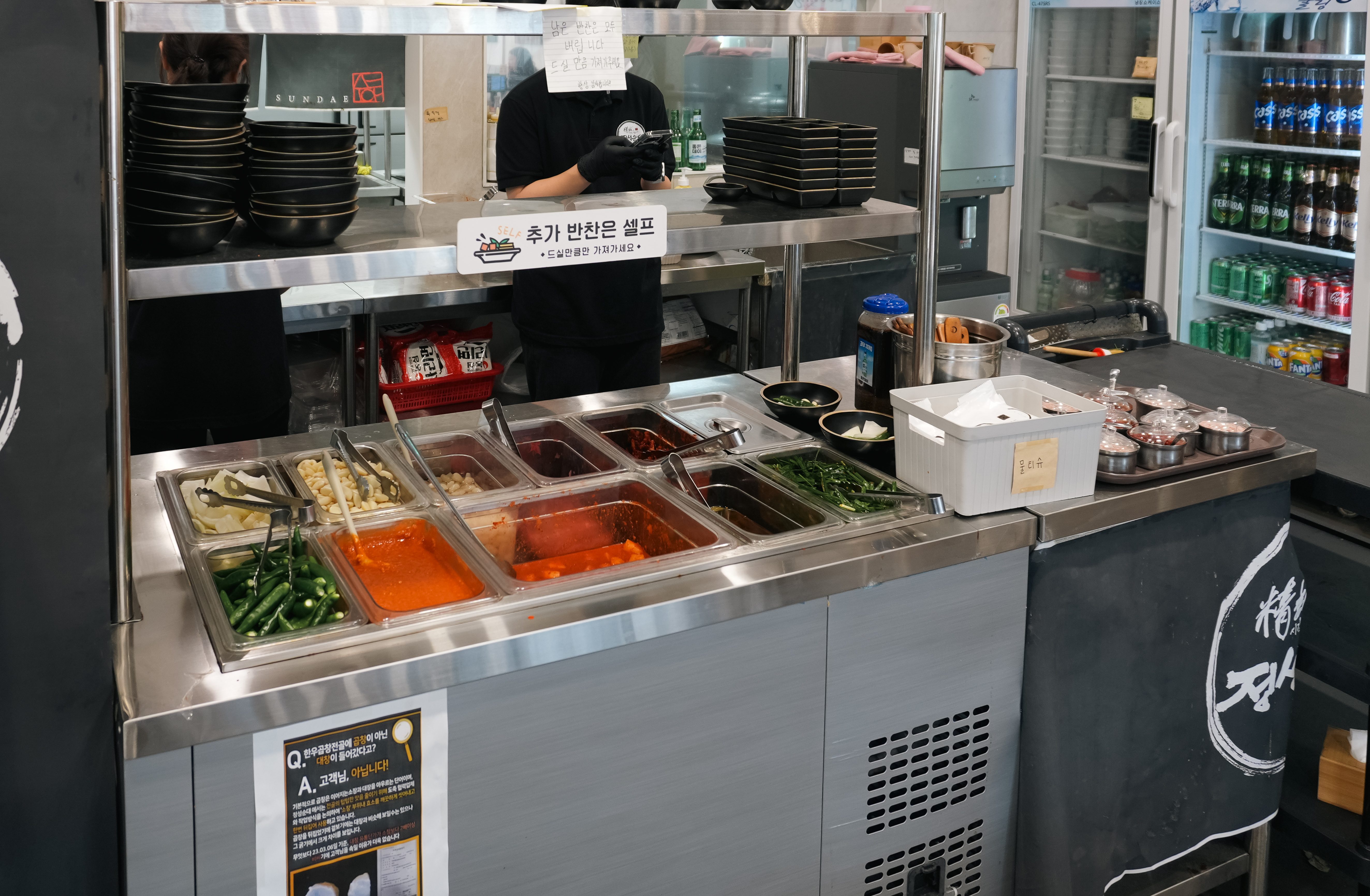 순대국밥에 곁들일 추가반찬은 직접 가져다 먹을 수 있도록 셀프코너로 마련되어 있었고, 자리에는 통들깨가 있어서 직접 갈아서 국물에 넣어 먹을 수 있게 소형 절구를 갖추고 있었습니다.