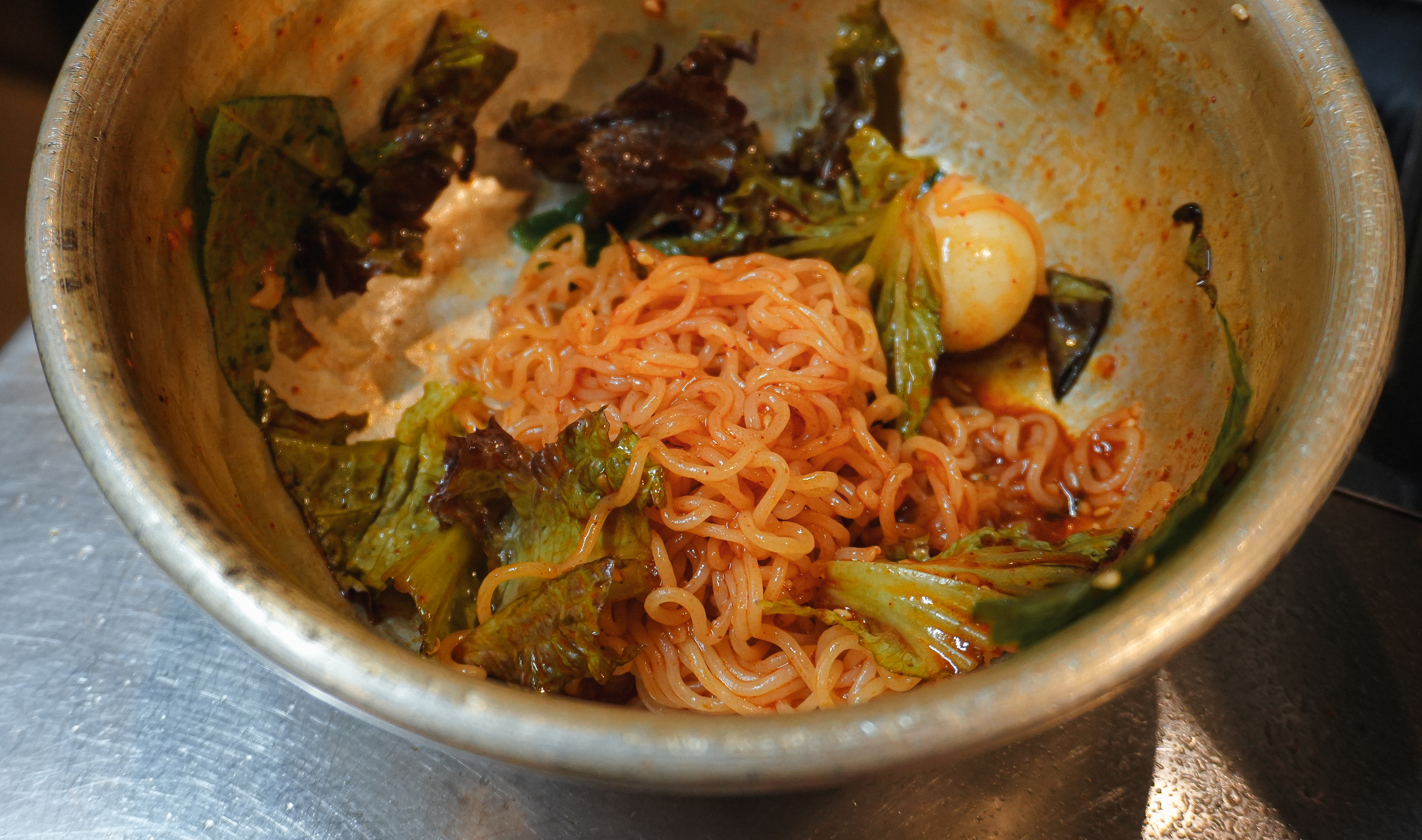 후식으로 먹었던 볶음밥과 도가니된장, 비빔면에 사장님의 주문실수(?)로 인해 서비스로 주신 라면까지 울산 목구멍의 사이드 메뉴를 먹어보았습니다. 원래는 볶음밥 메뉴는 따로 없었는데, 공깃밥을 주문해서 볶아 먹으려고 하니 아주머니께서 직접 볶아주셔서 더 맛있었고요. 도가니된장이 꽤 알차고 맛있더라고요. 비빔면과 라면 중에 더 맛있었던 메뉴를 고르자면 저는 라면이 그나마 조금 더 나았다고 할 수 있겠습니다.