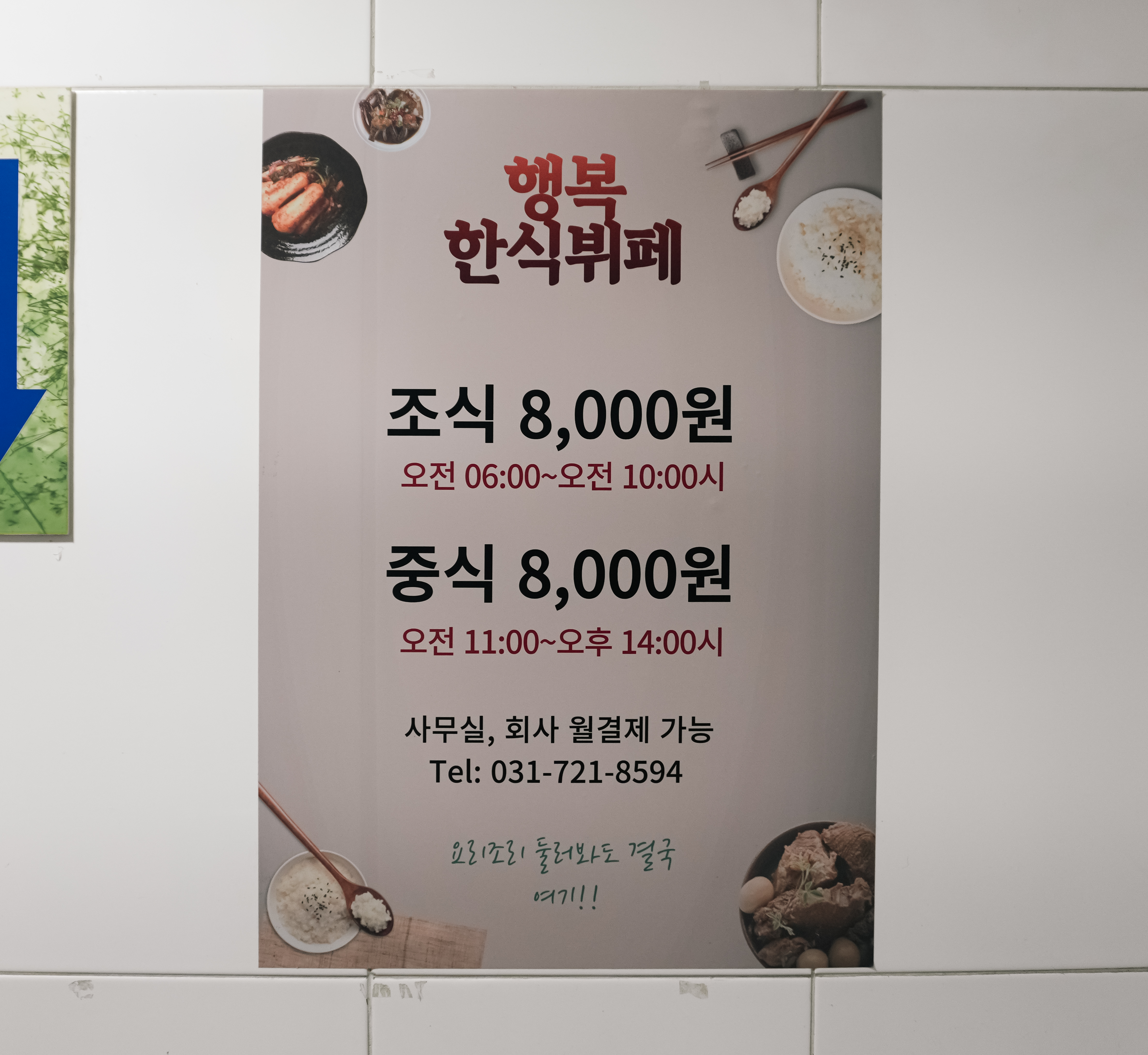 행복한식뷔페는 성남시 수정구 복정동에 위치한 가게로, 8,000원에 꽤 괜찮은 메뉴들로 구성된 한식뷔페였습니다. 물론 최근에 다녀온 엄청난 한식뷔페가 있어서 거기에 비해서는 가성비로는 약간 아쉬움이 있지만, 종종 집에서 요리대신 간단하게 식사하기 위해서 방문하게 되는 것 같습니다.