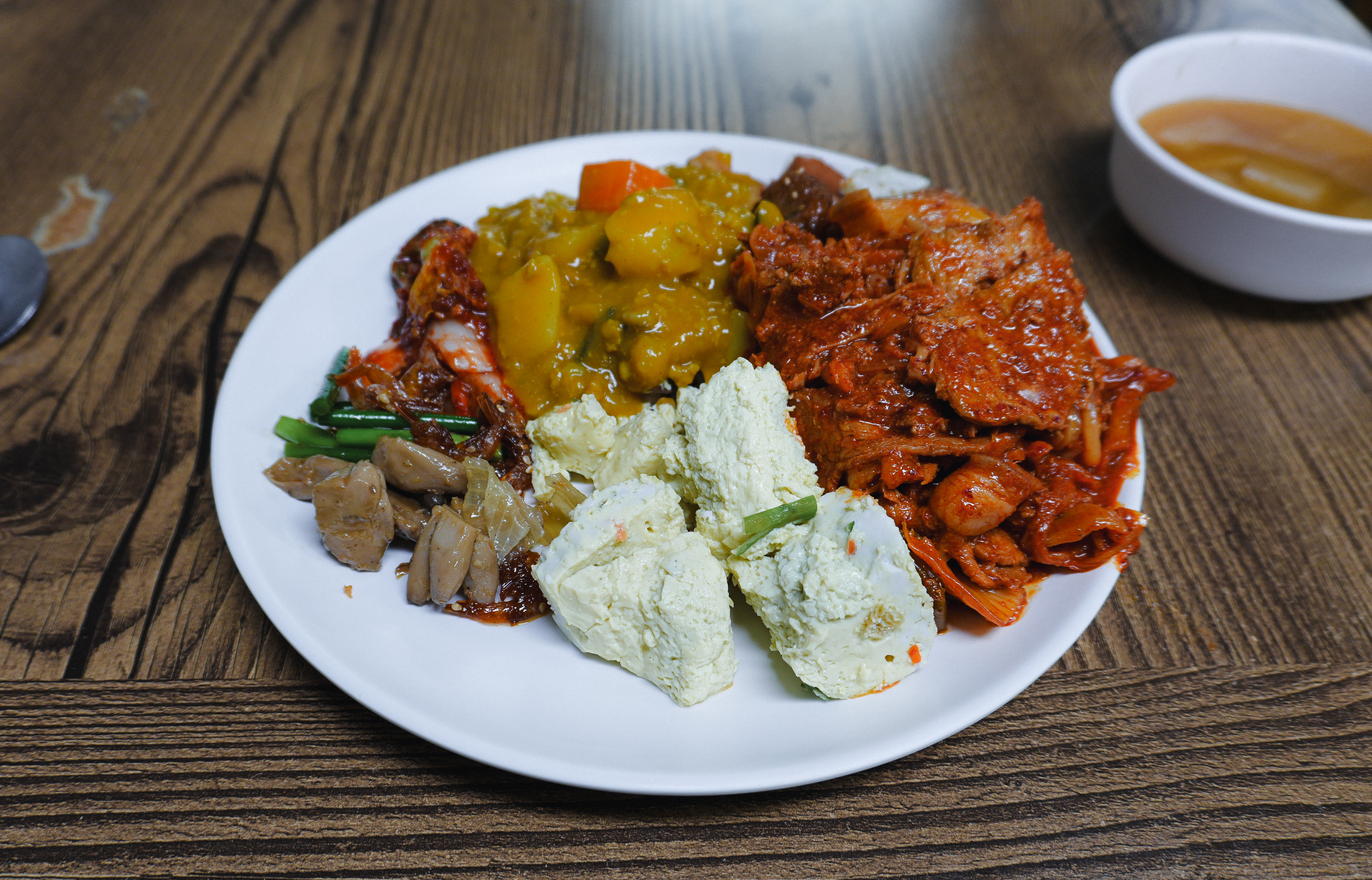 저는 돼지고기김치볶음과 카레, 계란찜 위주로 먹었고, 버섯볶음과 떡갈비, 새우볶음, 김치등을 가져와 먹었습니다. 오늘은 된장국이 같이 나왔는데, 입맛대로 골라오니 잔반이 많이 생기지 않아서 좋았고, 양껏 먹어도 눈치 주지 않아서 배불리 먹을 수 있었습니다.