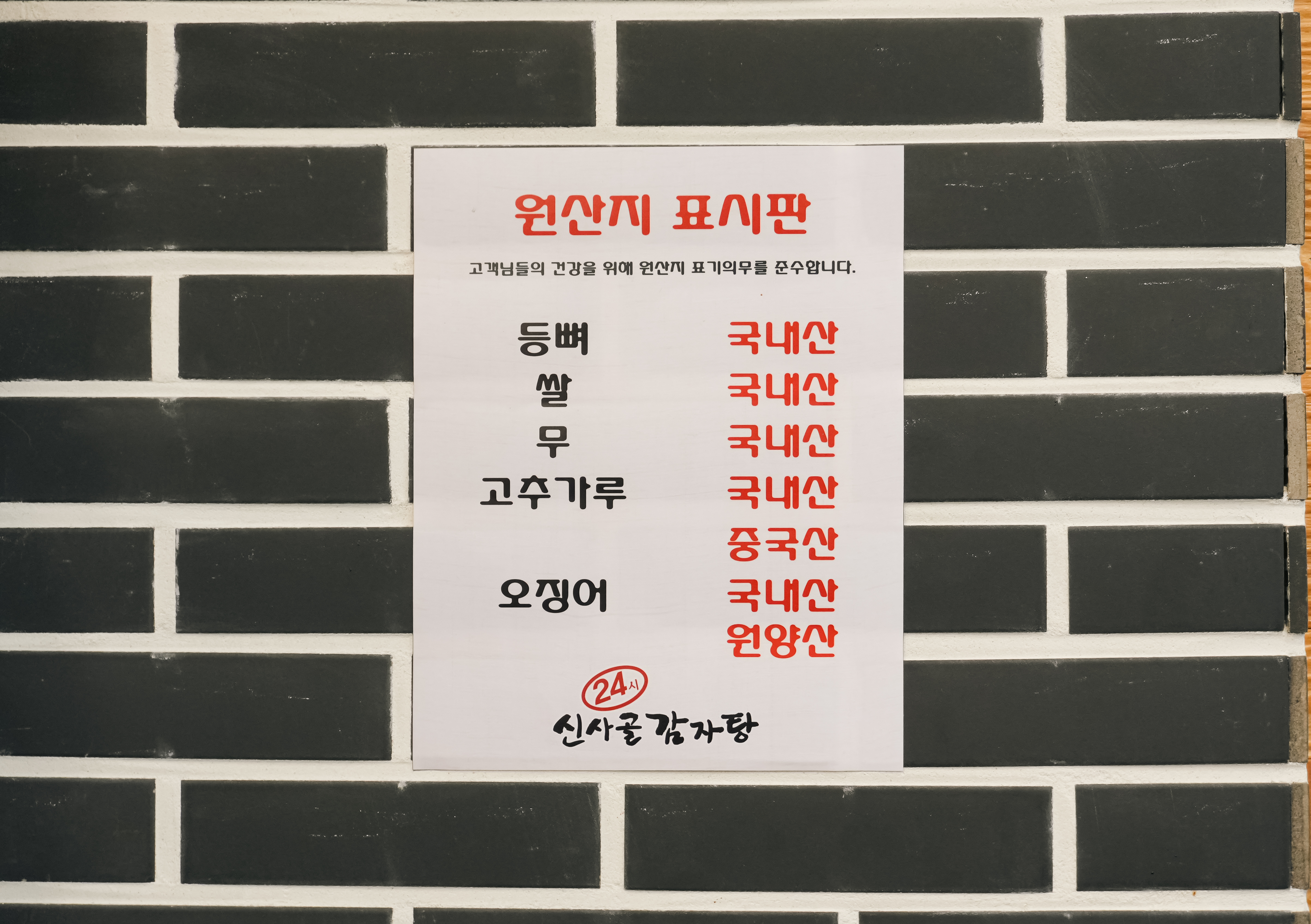 신사골감자탕 거여점은 서울 송파구 거여동 37-3, 1층에 위치해 있었습니다. 24시 영업 중인 가게이고, 손님들이 정말 많이 있었습니다. 가게 밖에는 판매 중인 메뉴에 대한 정보가 적혀있었고, 가게에는 국내산 등뼈를 사용한다고 적혀있었습니다.