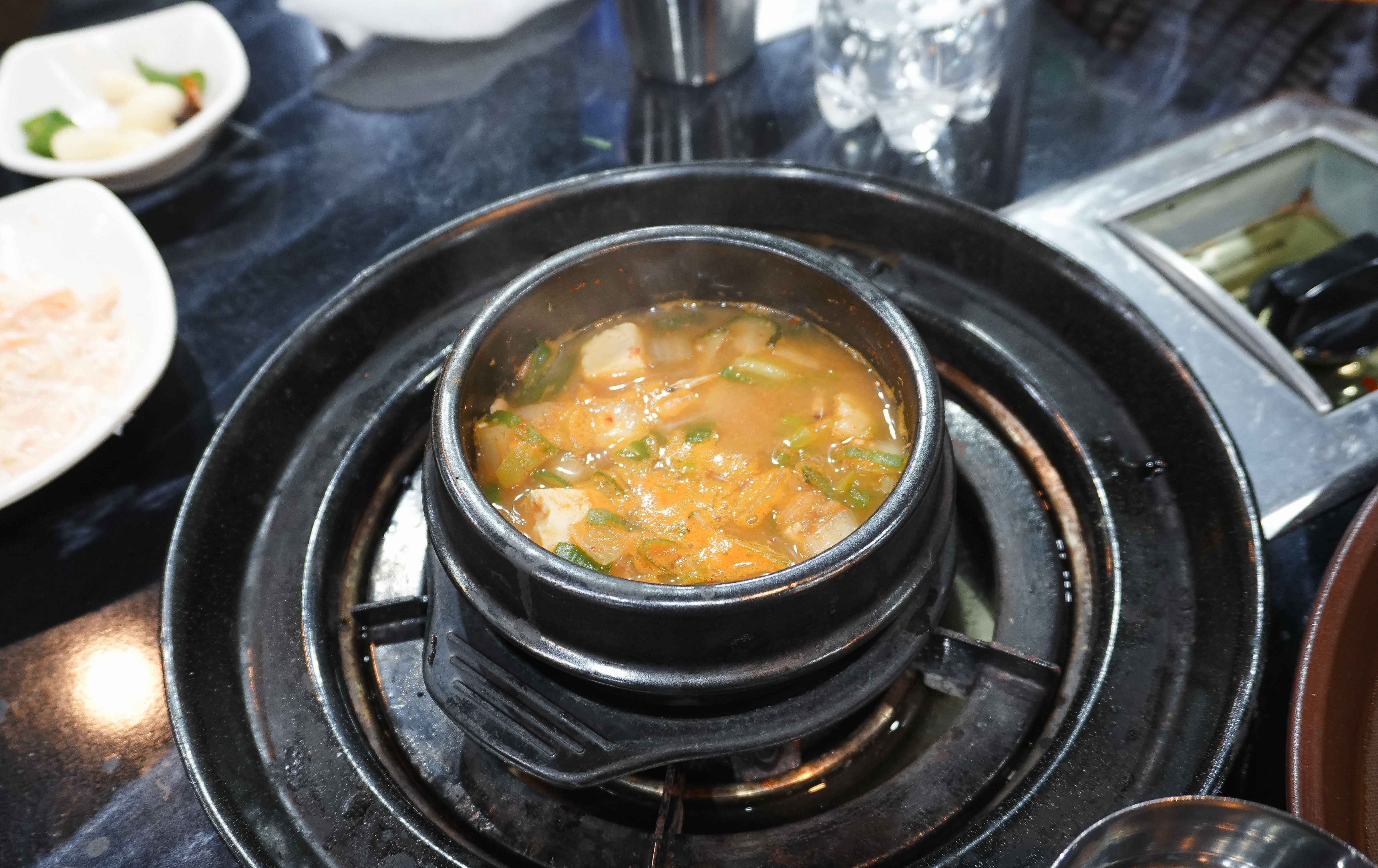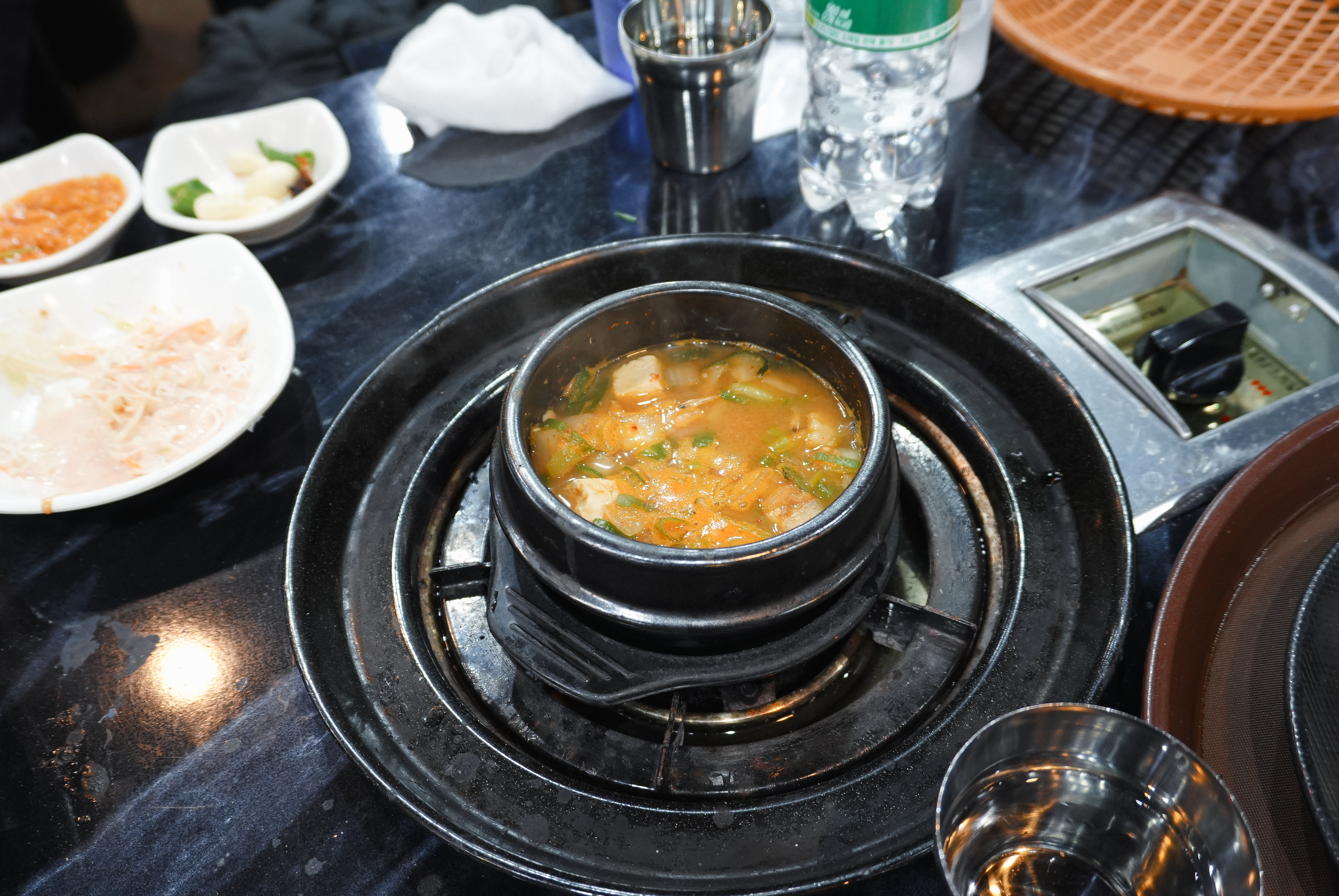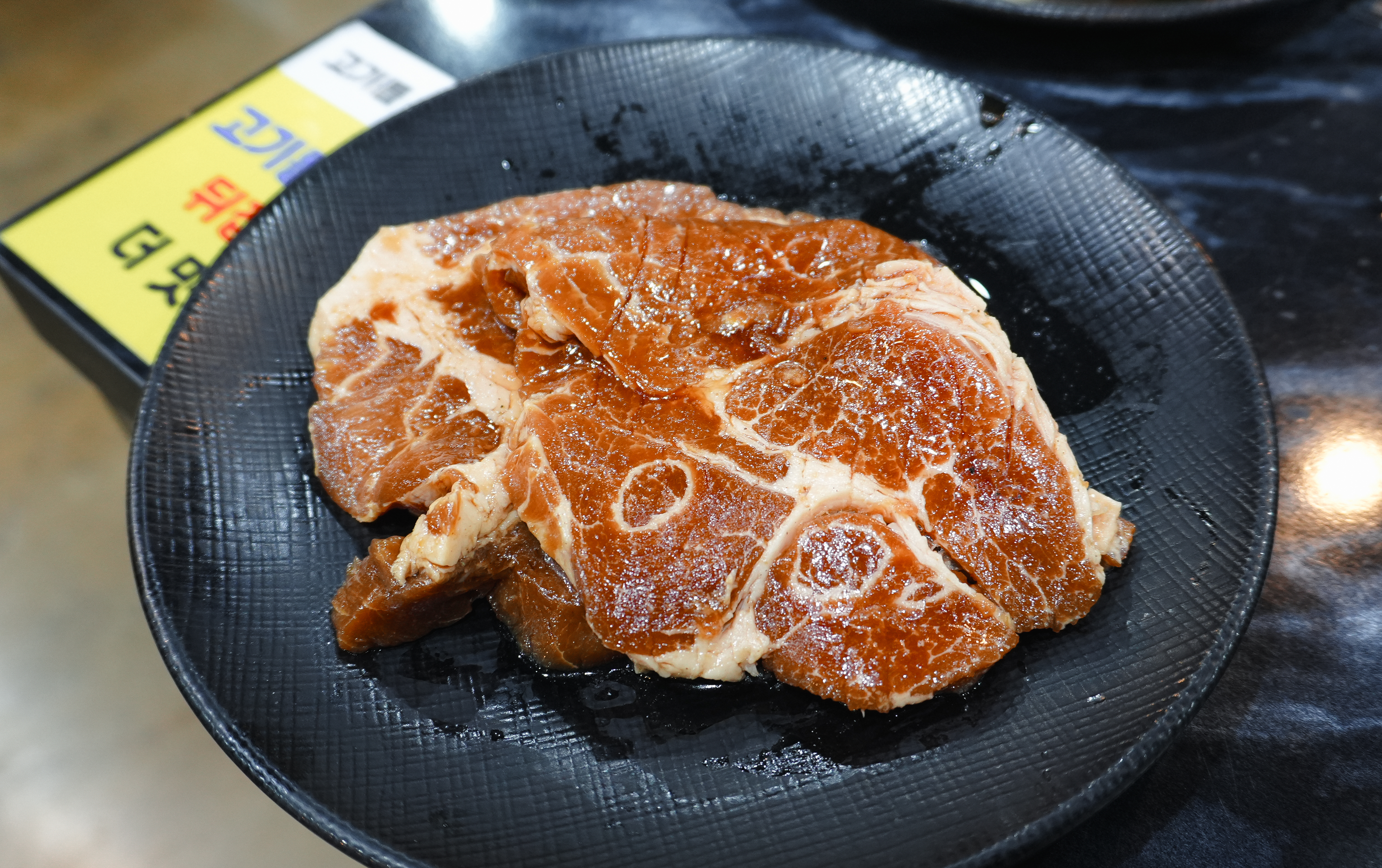 그런데 태능참숯화로구이의 갈매기살은 앞서 설명드린 것처럼 고소하면서도 기름기 없이 담백한 맛이 좋았습니다. 물론 갈매기살도 지방이 아예 없는 것은 아니지만 적당히 질김과 부드러움 사이에 식감이 잘 살아있어서 먹기에도 좋았던 것 같습니다. 어느 정도 갈매기살을 먹다가 된장찌개도 추가해서 먹었고, 마무리로 돼지갈비를 먹었습니다. 돼지갈비는 목전지 부위를 사용하시는 것 같은데, 개인적으로 목전지 부위도 나쁘지는 않다고 생각합니다.