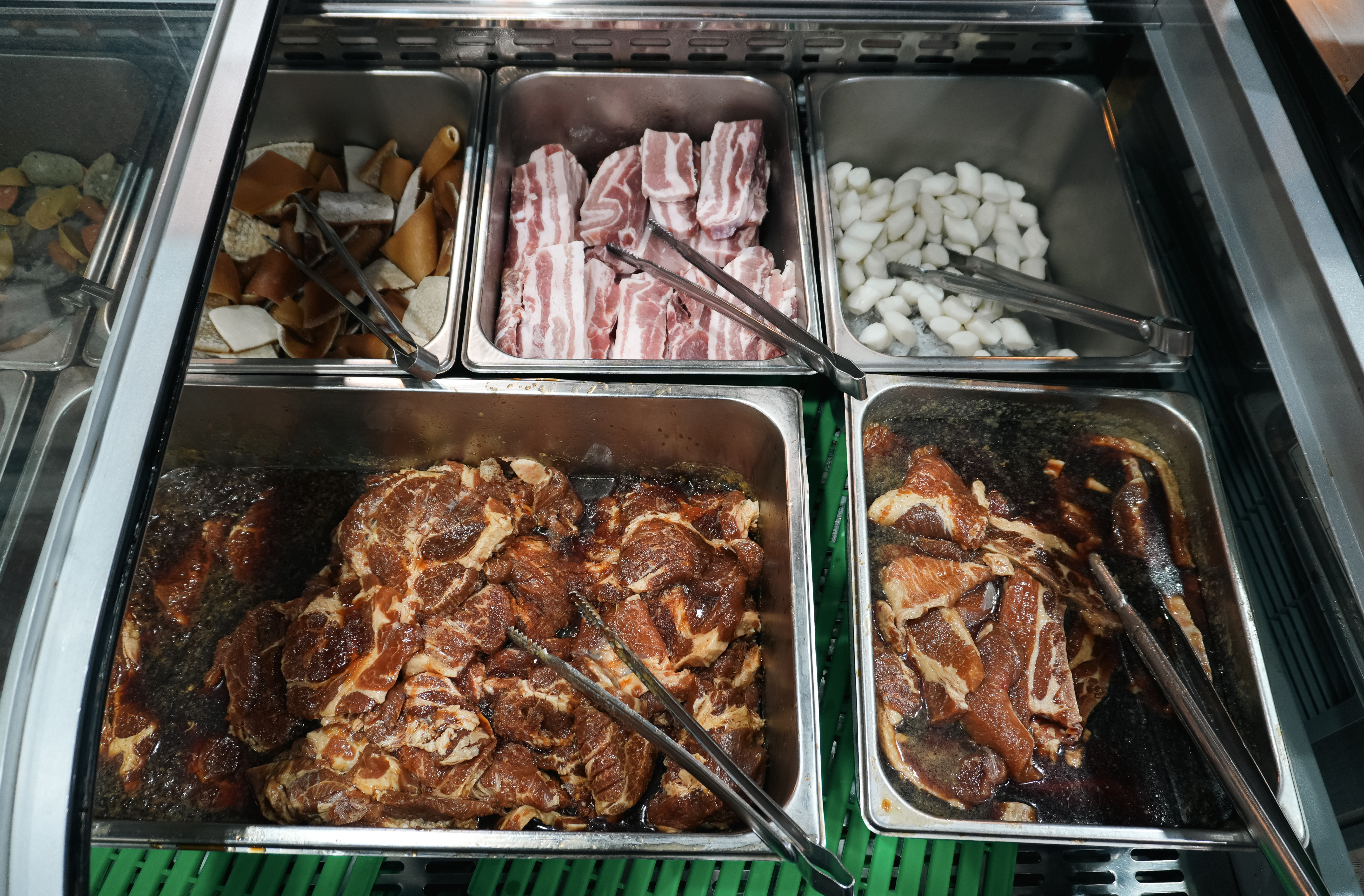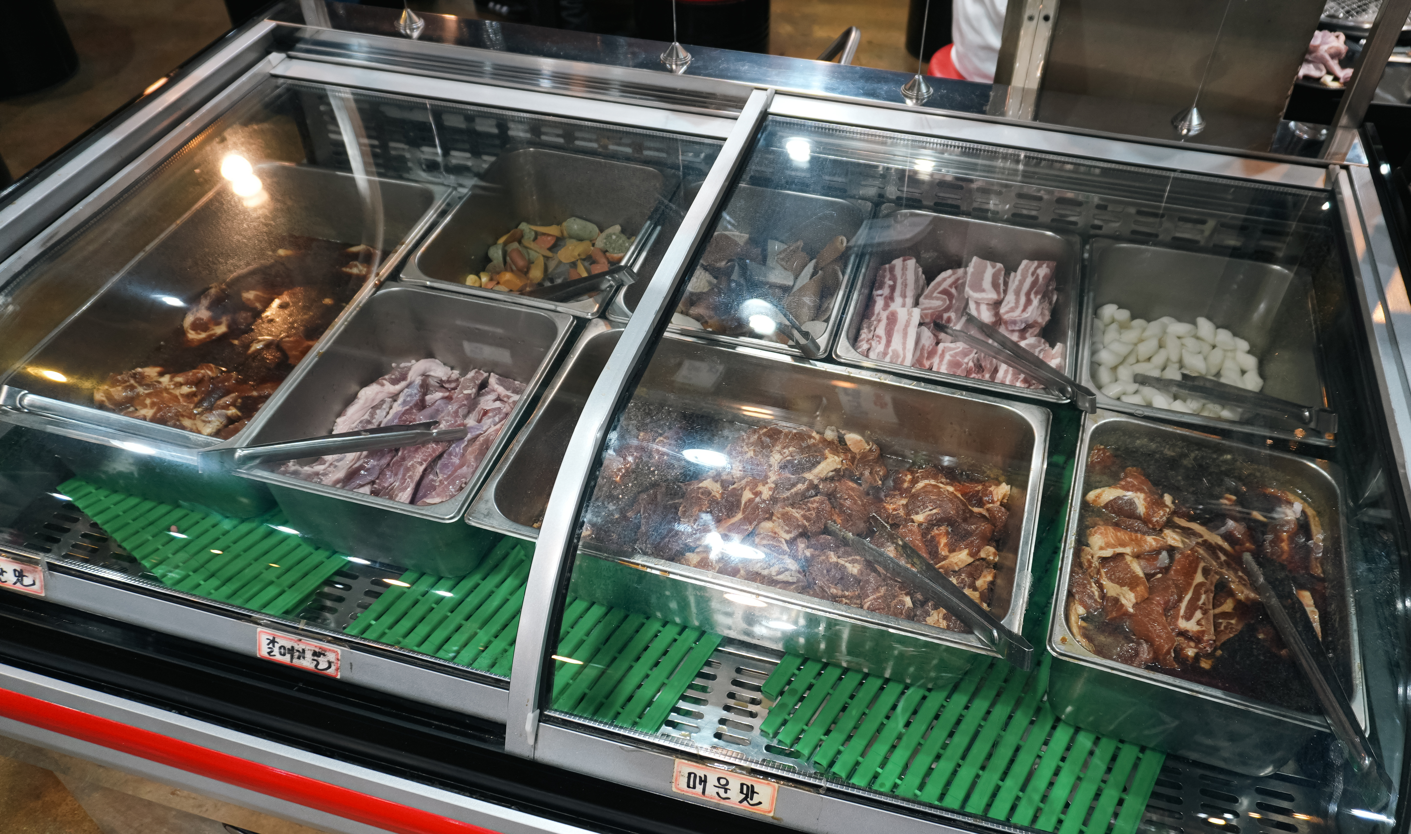 셀프바에서는 돼지갈비, 삼겹살, 갈매기살, 소시지, 껍데기, 떡 등이 있었습니다. 특히 돼지갈비는 매운맛과 순한 맛 종류별로 있어서 입맛에 맞게 골라서 먹으면 되었습니다. 다른 부분도 살펴보겠습니다.