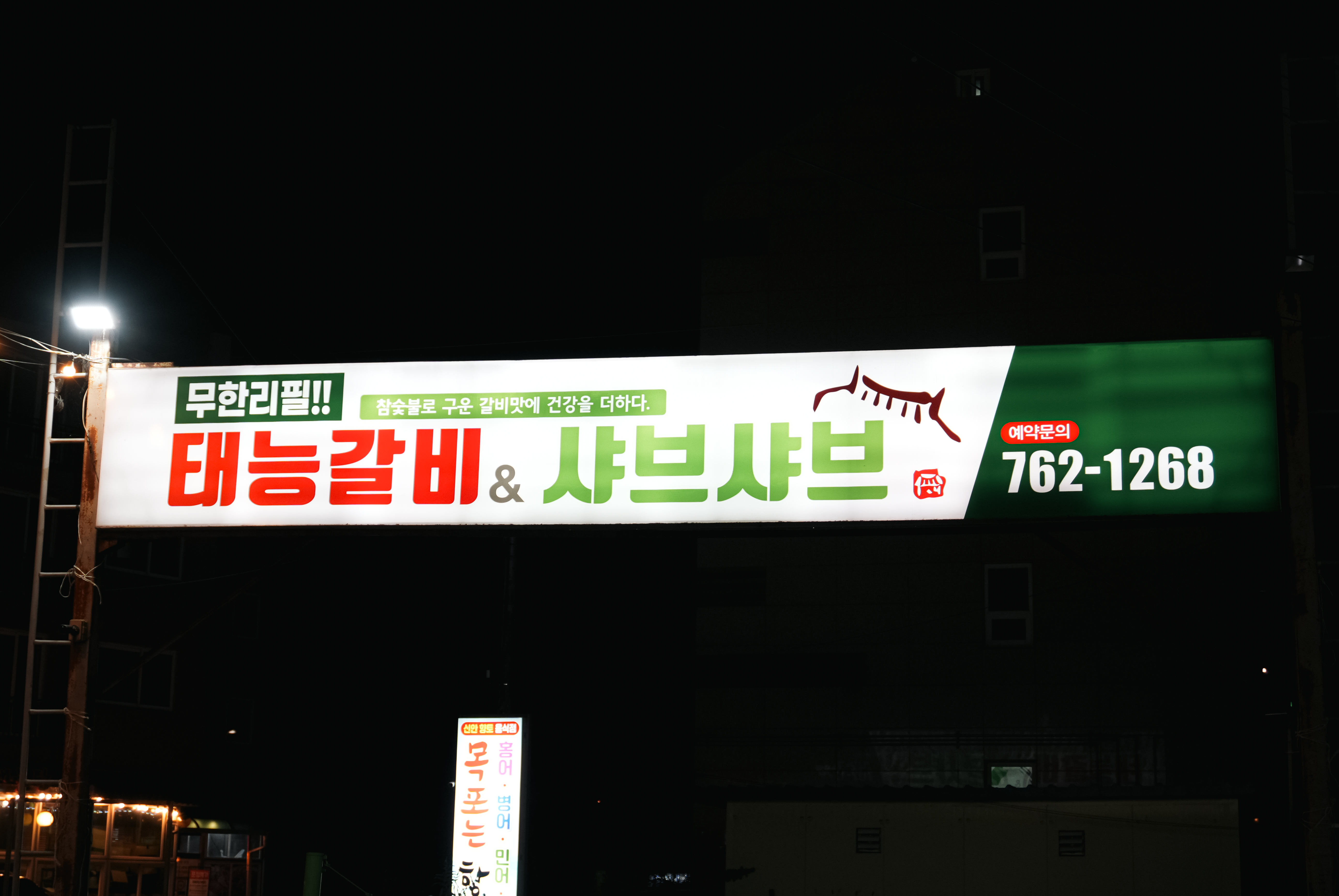 태능참숯화로구이 본점은 경기 광주시 초월읍 쌍동리 3-2, 1층에 위치해 있었습니다. 특히 저번에 왔을 때는 태능참숯화로구이라고만 적혀있었는데, 이번에 가보니 '태능갈비&샤브샤브'라는 이름으로 바뀌어 있었습니다. 특히 무한리필이라는 특징은 그대로 갖고 가서, 기존의 고기뷔페에 샤브샤브가 추가되었다고 보시면 될 것 같습니다.