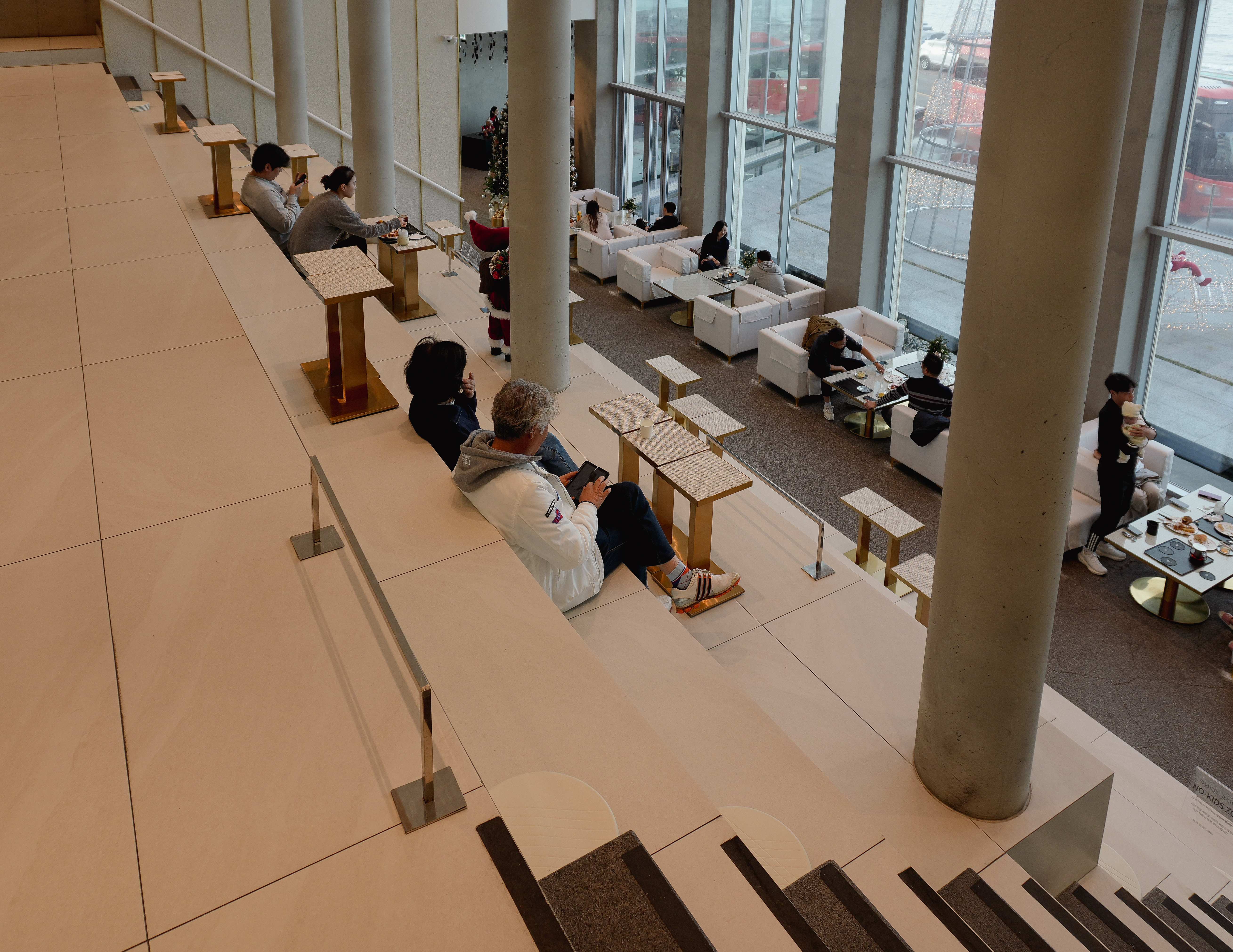 울산 라메르판지 1층은 베이커리 카페답게 다양한 종류의 빵이 있었습니다. 1층에는 바다를 전망할 수 있는 커다란 계단형태의 공간이 있었는데요, 요즘 바다뷰 카페에서 흔히 볼 수 있는 구조였죠. 이제 2층을 살펴보도록 하시죠.