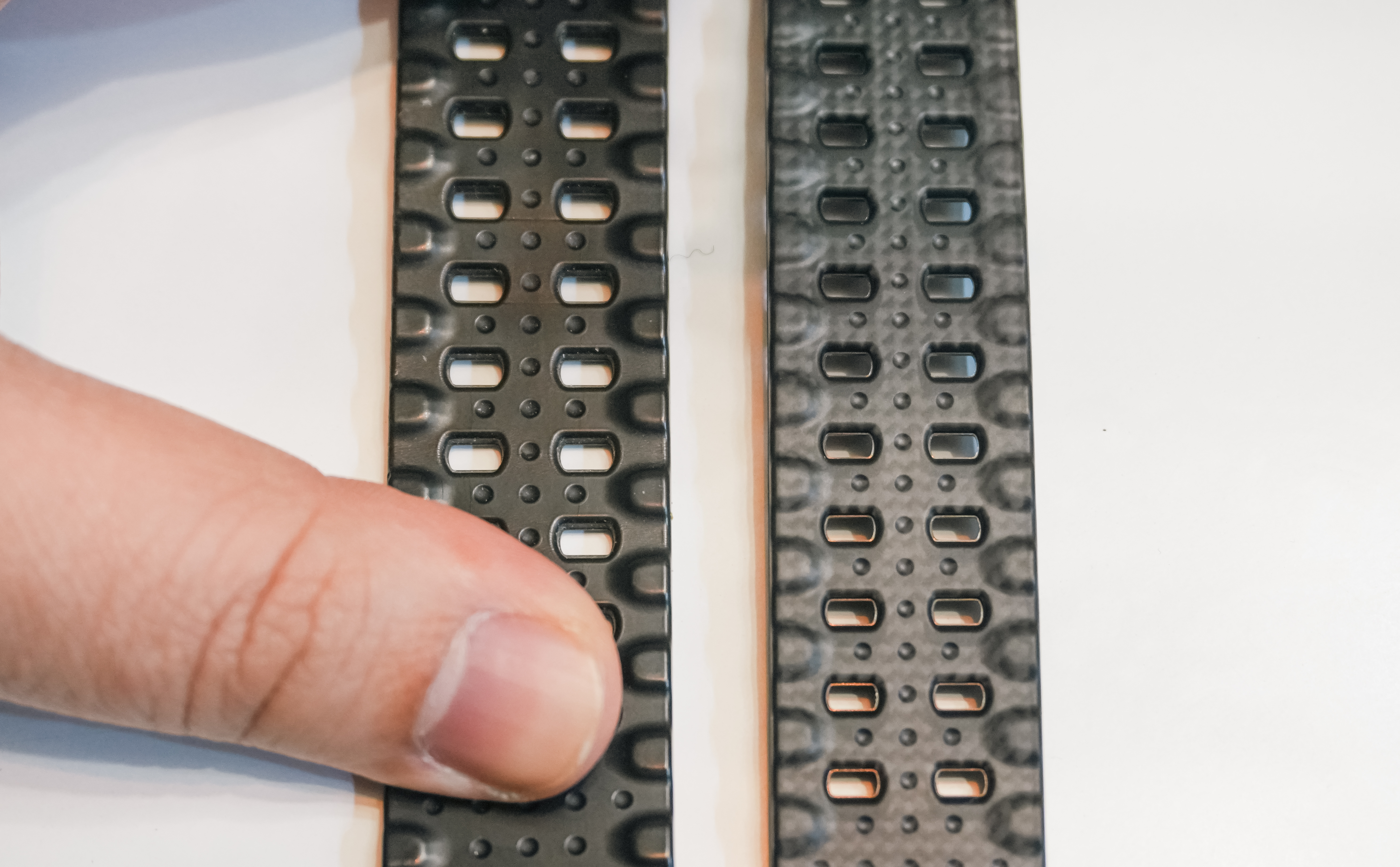 이번에 우레탄밴드를 카본밴드로 교체하면서 디테일컷을 찍어보았는데, 확실히 오래 사용하긴 해서 그런지 우레탄 밴드는 기름 등의 얼룩으로 많이 노후화된 것이 보이더라고요. 그에 반해 카본밴드는 아직 사용 전이라 그런지 매끈하고 부드러운 표면을 보여주었습니다.