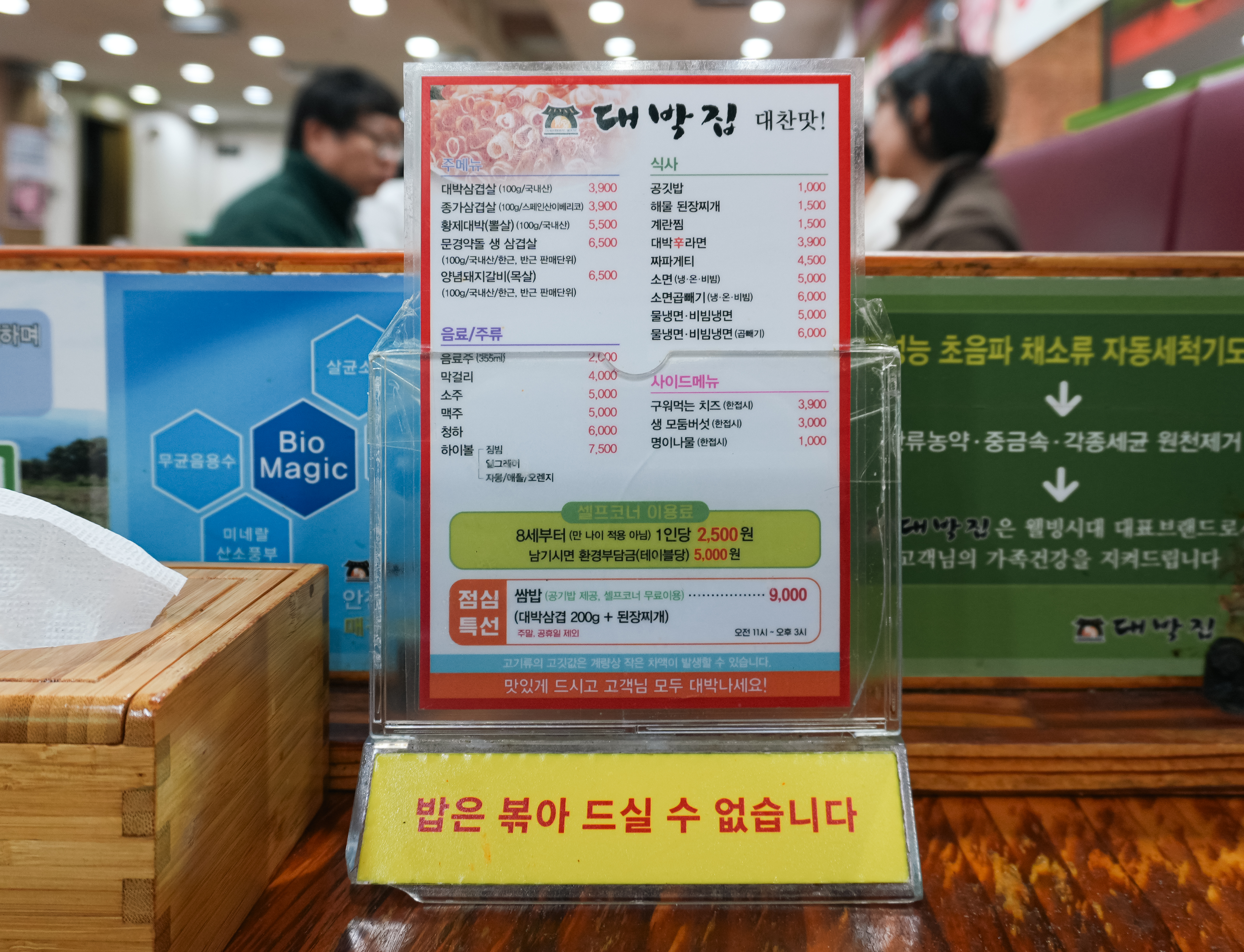 대박집 중동점은 국내산 삼겹살을 판매하고, 문경 약돌돼지 지정점으로 되어있더라고요. 이제 가게 안으로 들어가 대패 삼겹살 맛집인 '정가 대박집 중동점'의 메뉴들을 살펴보도록 하시죠.