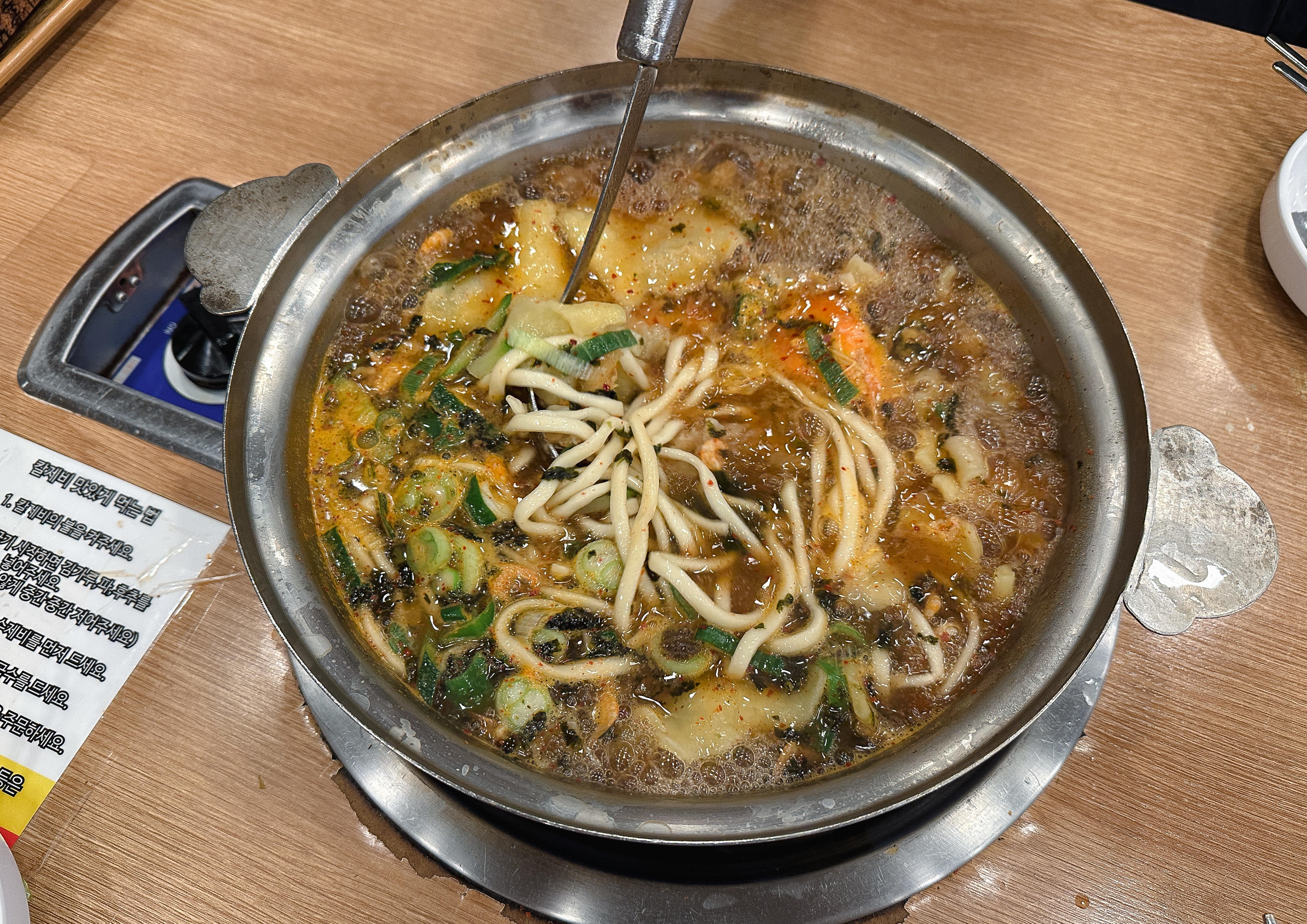 다시 칼제비로 돌아와서 4분여 시간이 지나고 칼국수까지 같이 건져서 먹었습니다. 특히 이 칼국수에는 국물에 건새우가 많이 들어가 있어서 그런지 맛도 좋았지만, 씹히는 게 있어서 국물이 먹기 좋았습니다.