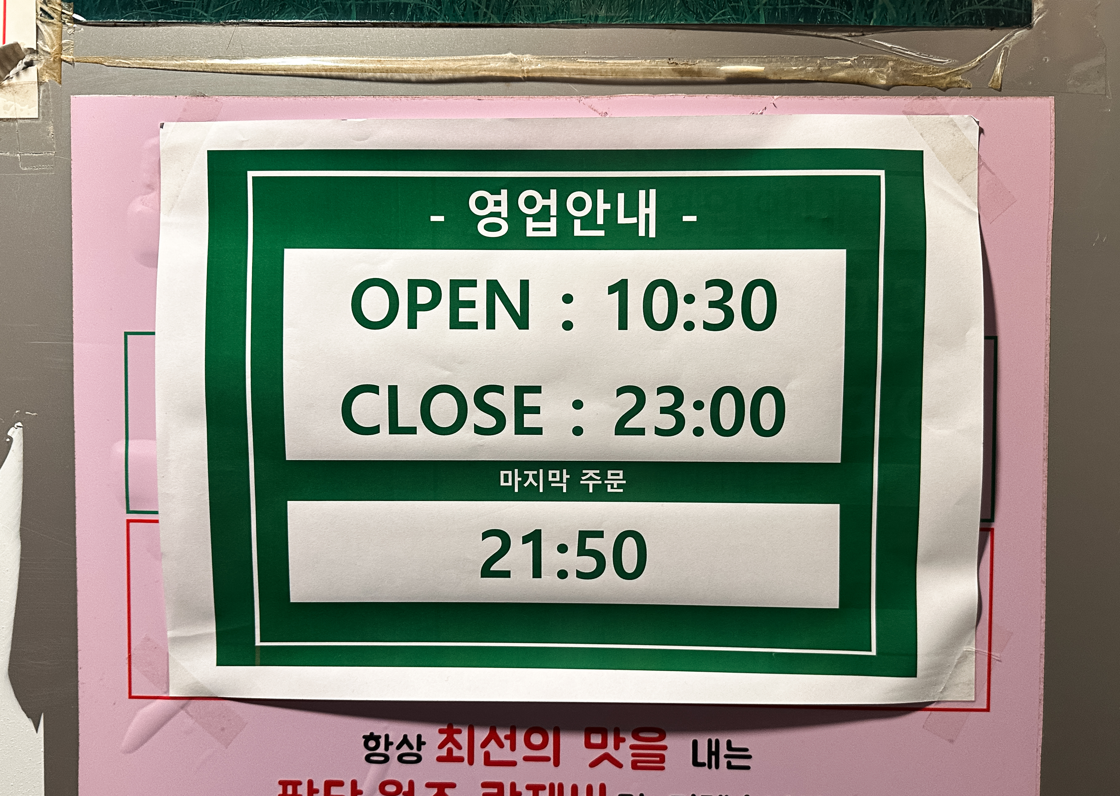※ 저희는 '얼큰오만둥이칼제비'와 '죽'을 먹었습니다.