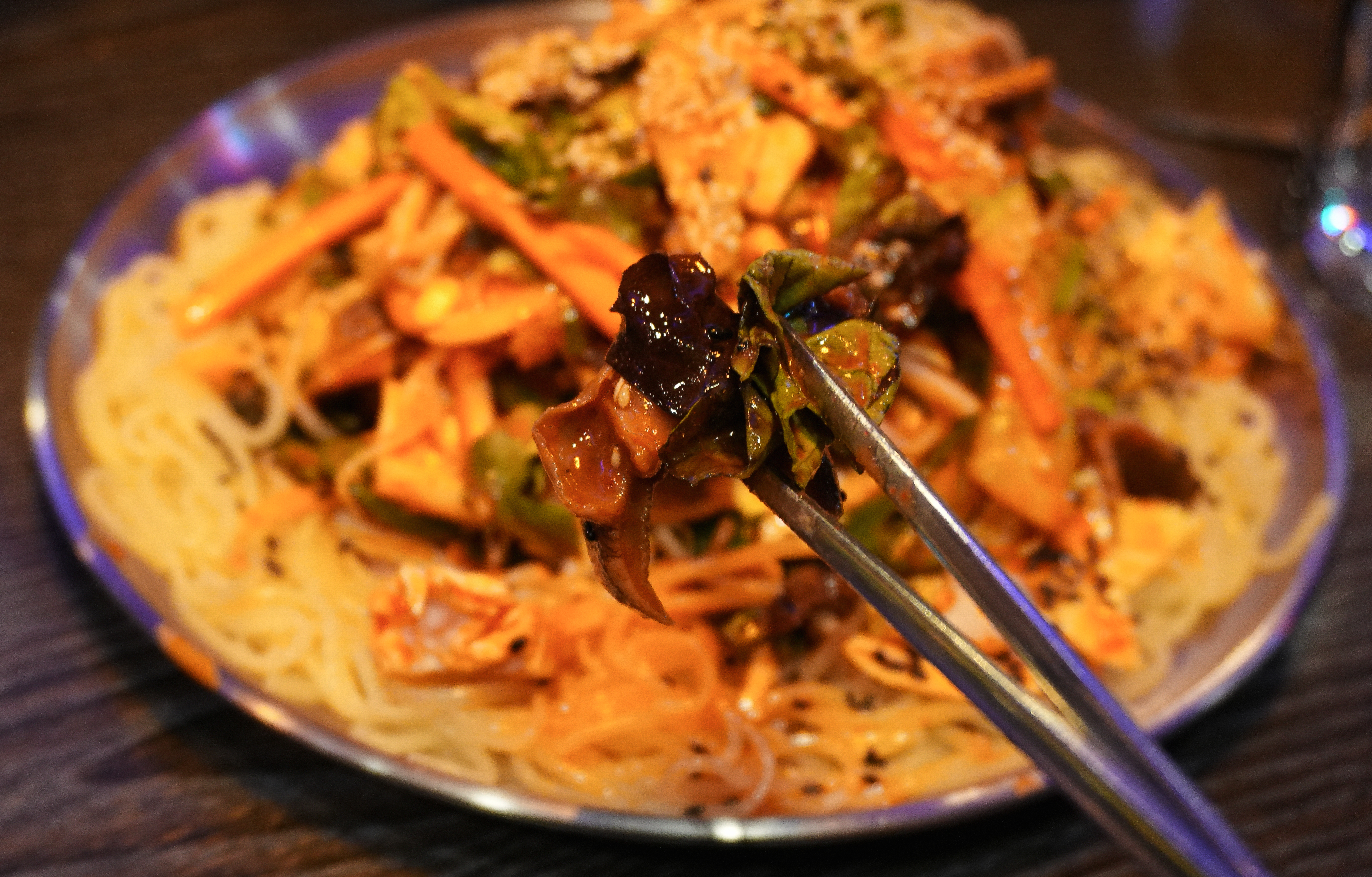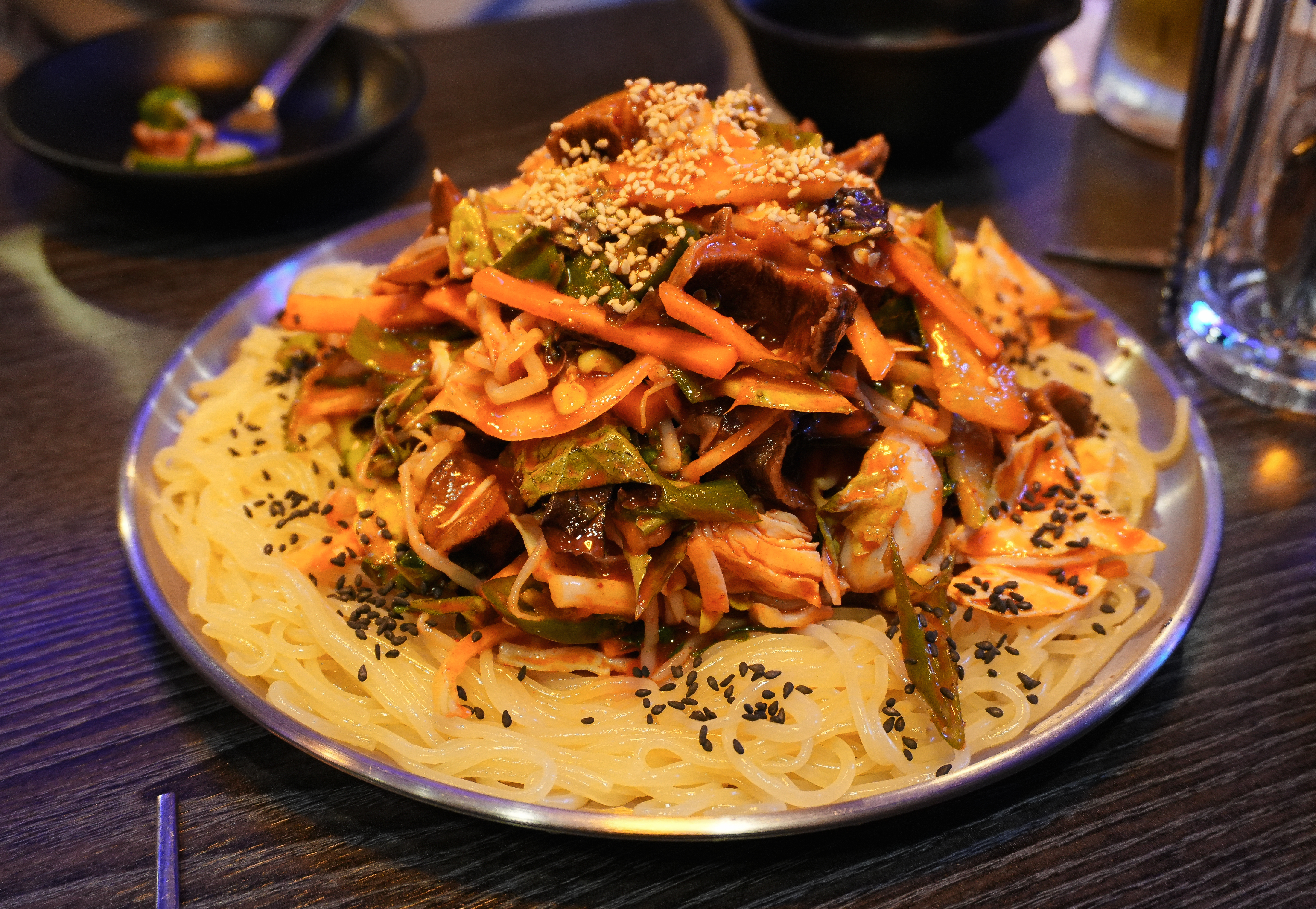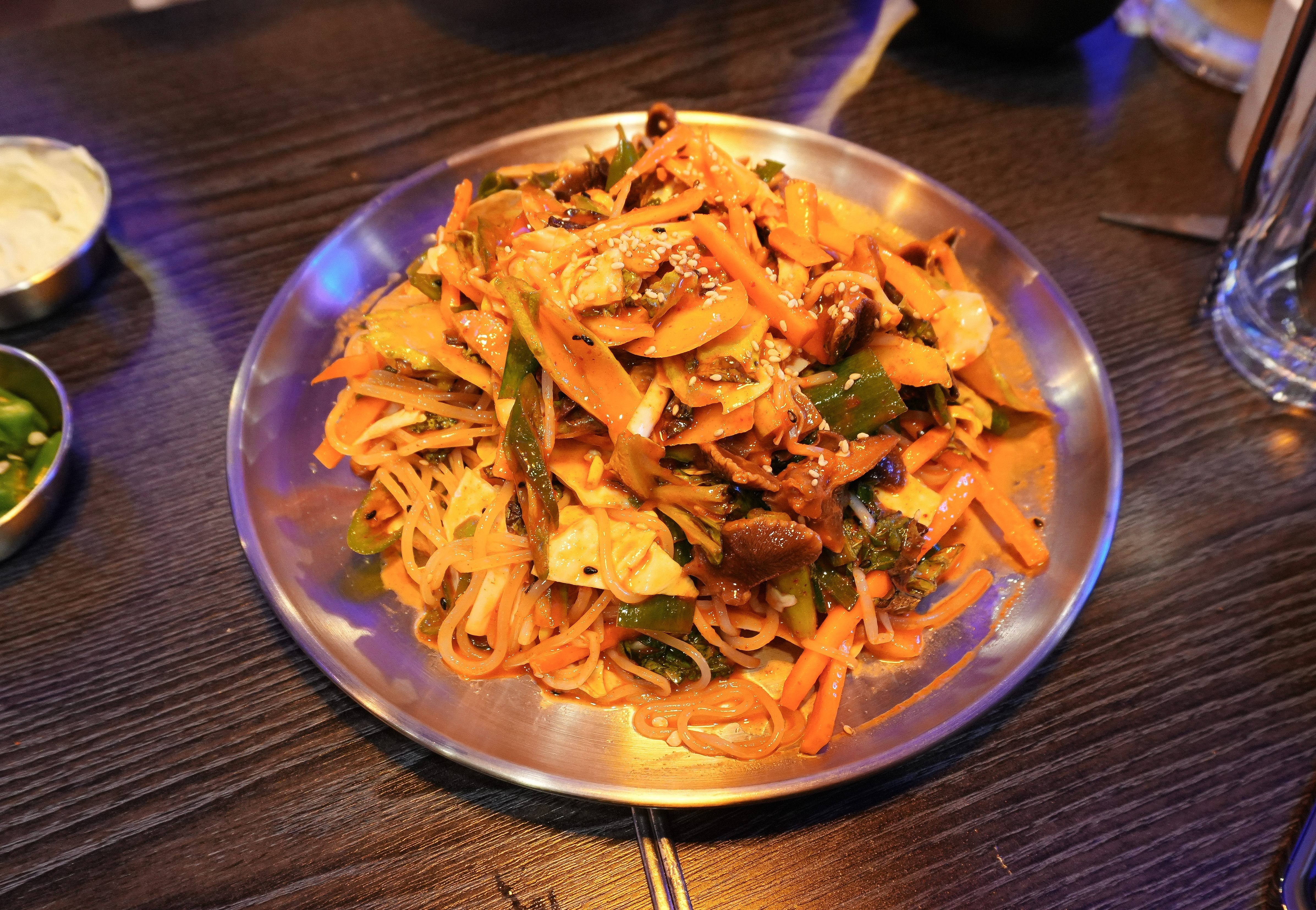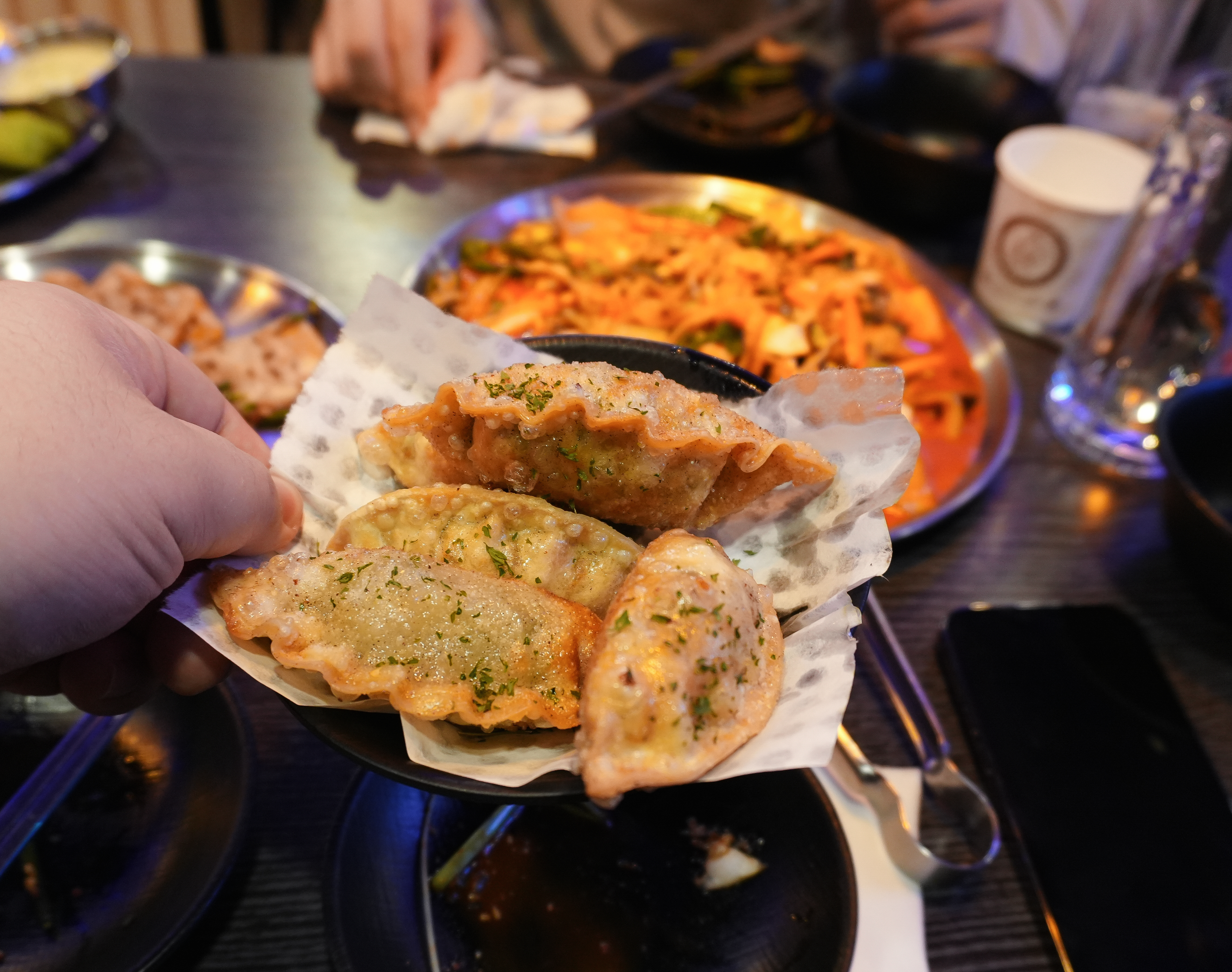 화정맥주의 쫄뱅이는 쫄면과 골뱅이무침이 합쳐진 메뉴였는데요, 매콤 새콤한 양념으로 무쳐진 채소들과 탱글한 골뱅이에 쫄면을 잘 버무려 섞어먹으면 되는 메뉴였죠. 기본적으로 채소들이 많이 나와서 채소랑 골뱅이만 먹어도 배가 찰 것 같더라고요. 일반적인 소면이 아니라 쫄면이 들어있어서 식감도 좋았습니다. 약간 부족하다 싶으면 만두추가를 해서 비벼 먹어도 괜찮았습니다.