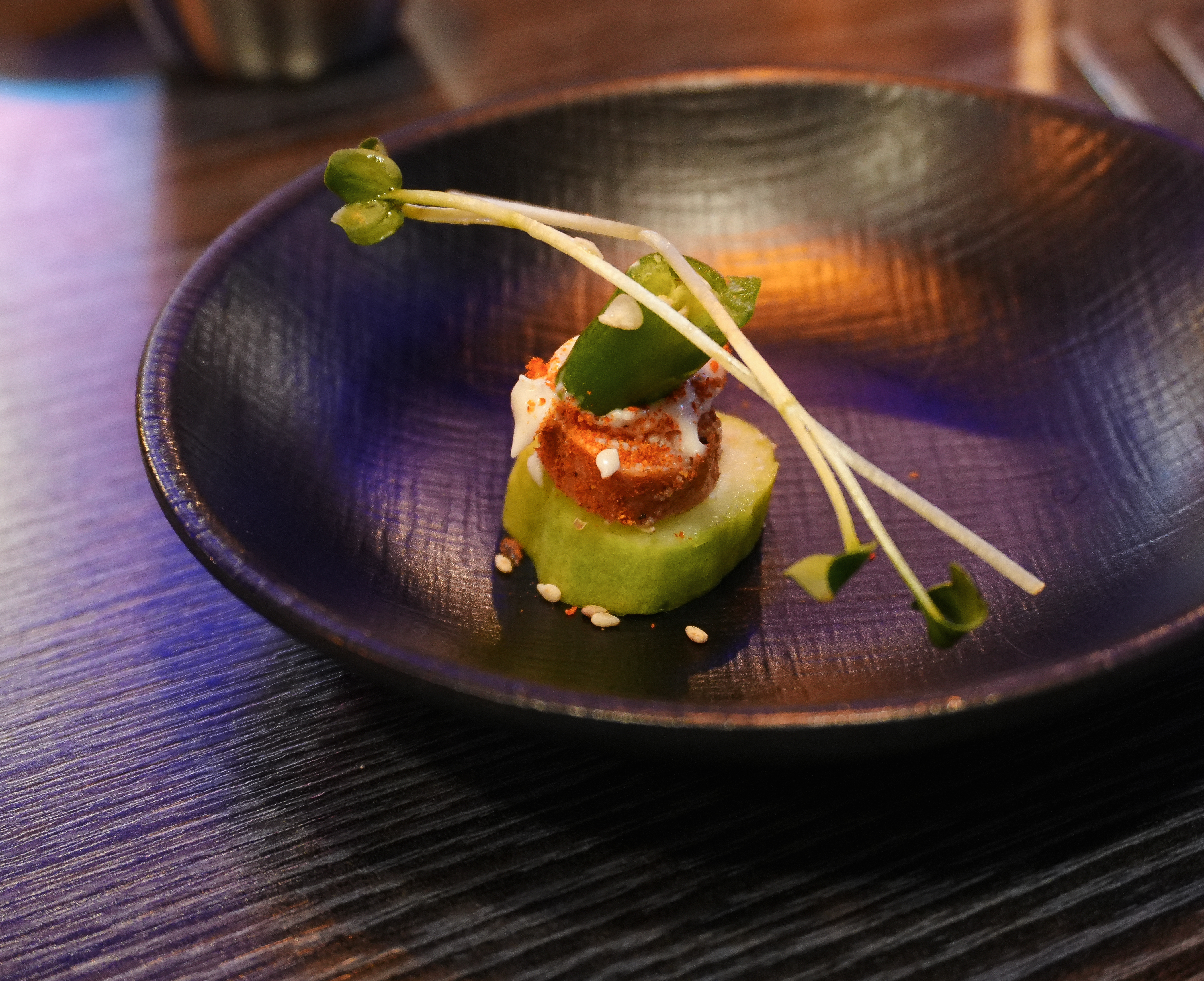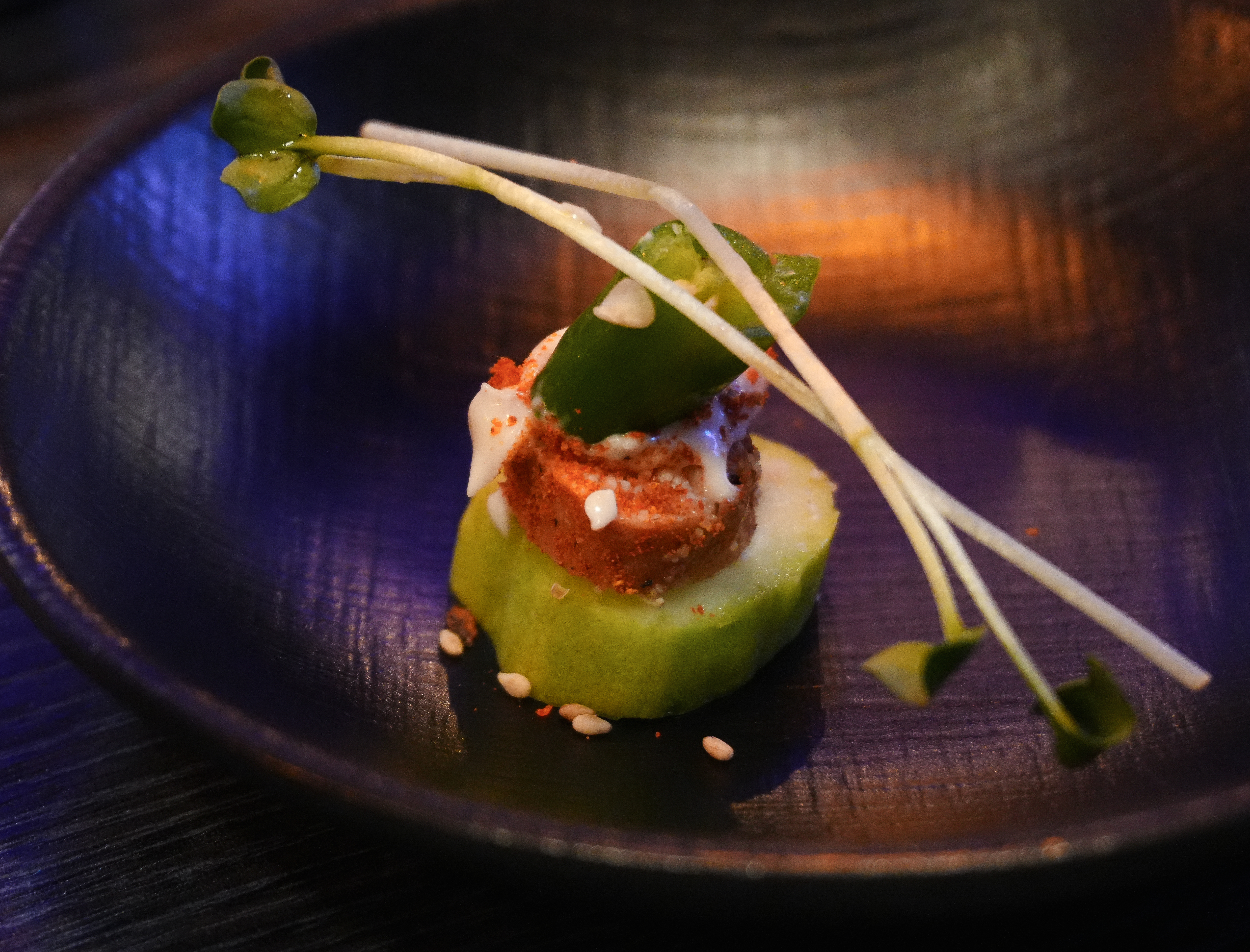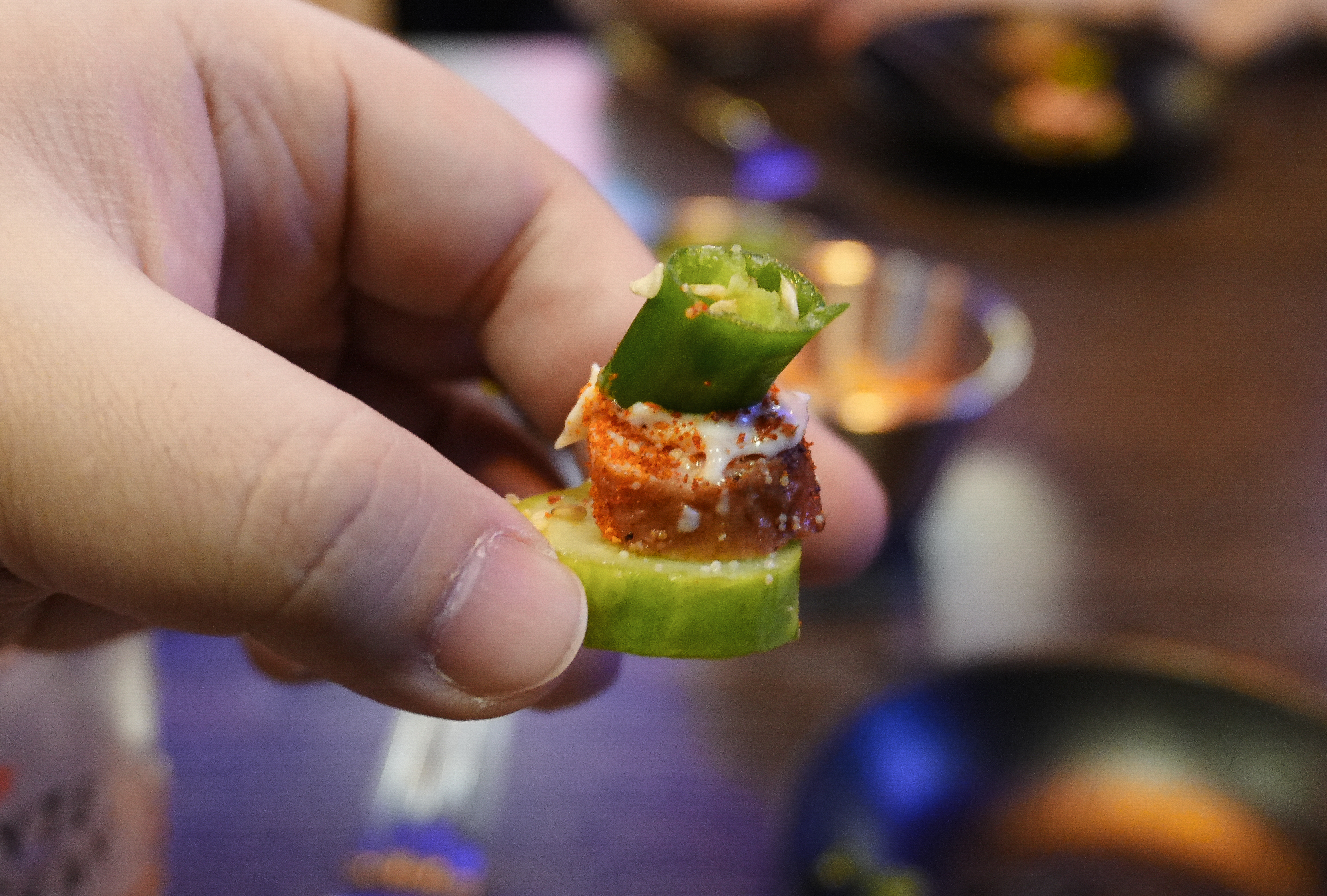 처음에 소개해드릴 메뉴는 화정맥주의 오이명란구이인데요, 오이라는 재료가 대부분 특이한 향이 나서 싫어하는 사람들이 많은데, 오이에 짭조름한 구운 명란을 더하니깐 그 향도 안 나고 생각보다 명란과의 조화가 잘 이루어지더라고요. 저는 개인적으로 깔끔하면서도 담백한 이 메뉴 정말 추천드립니다.