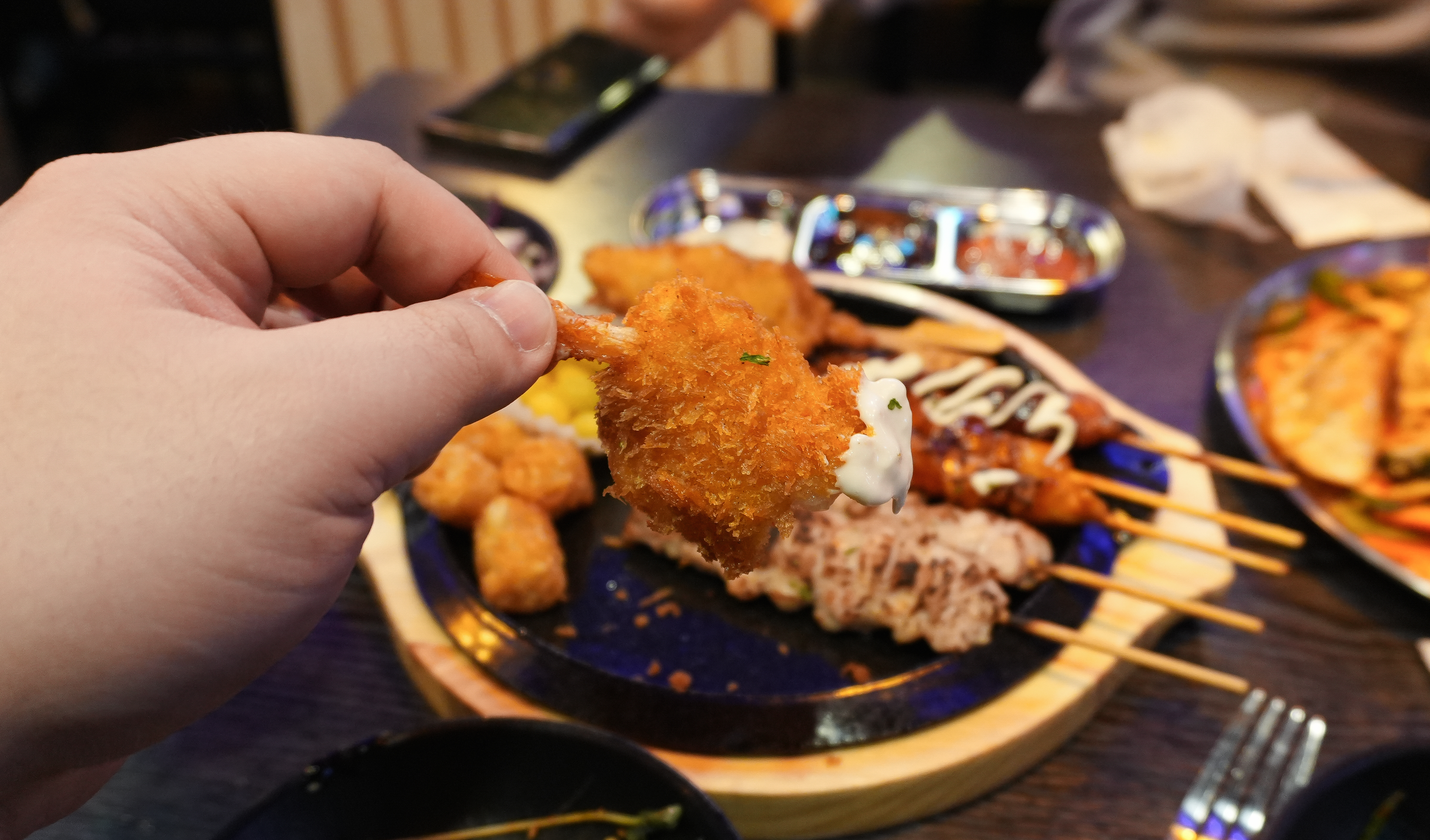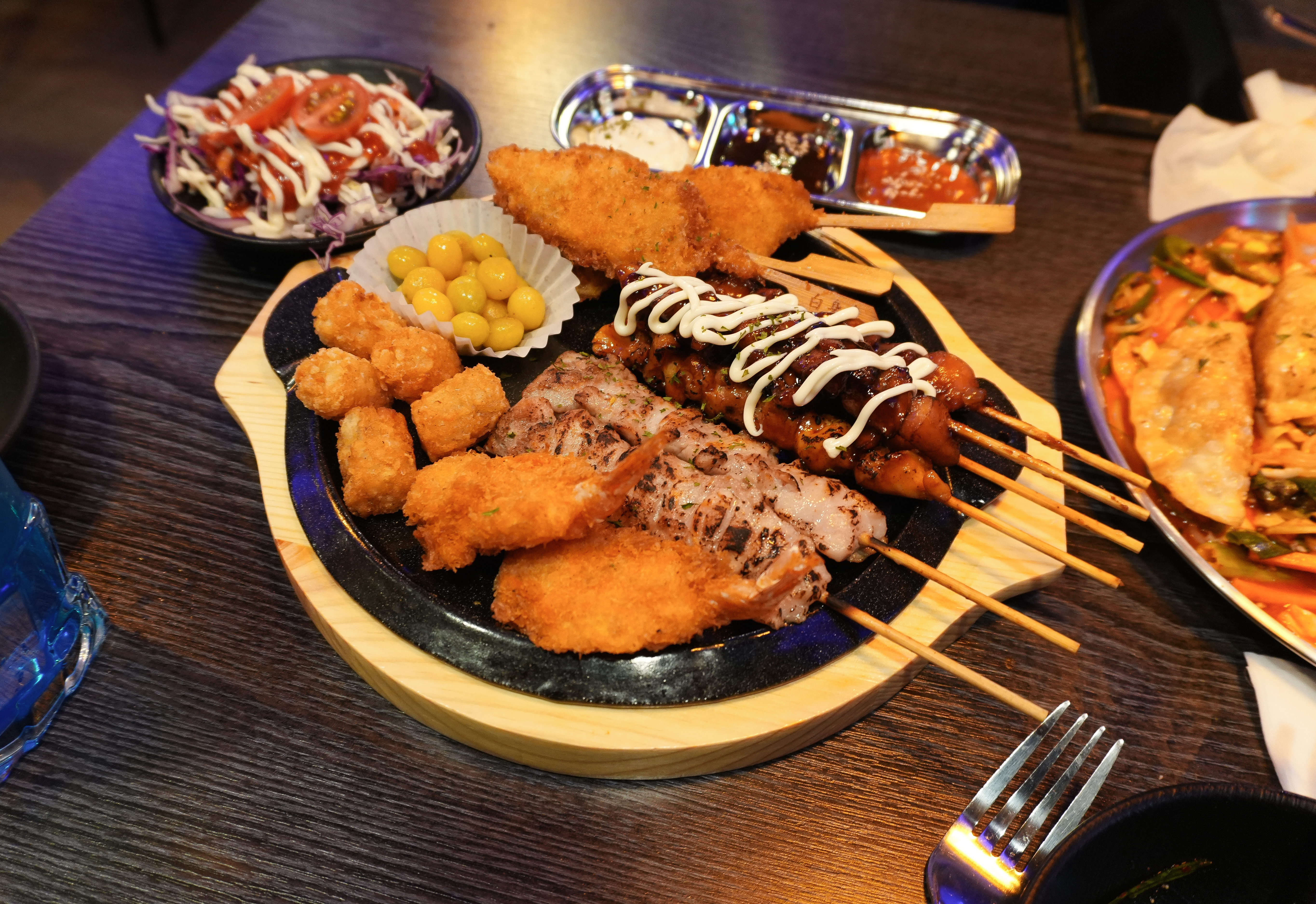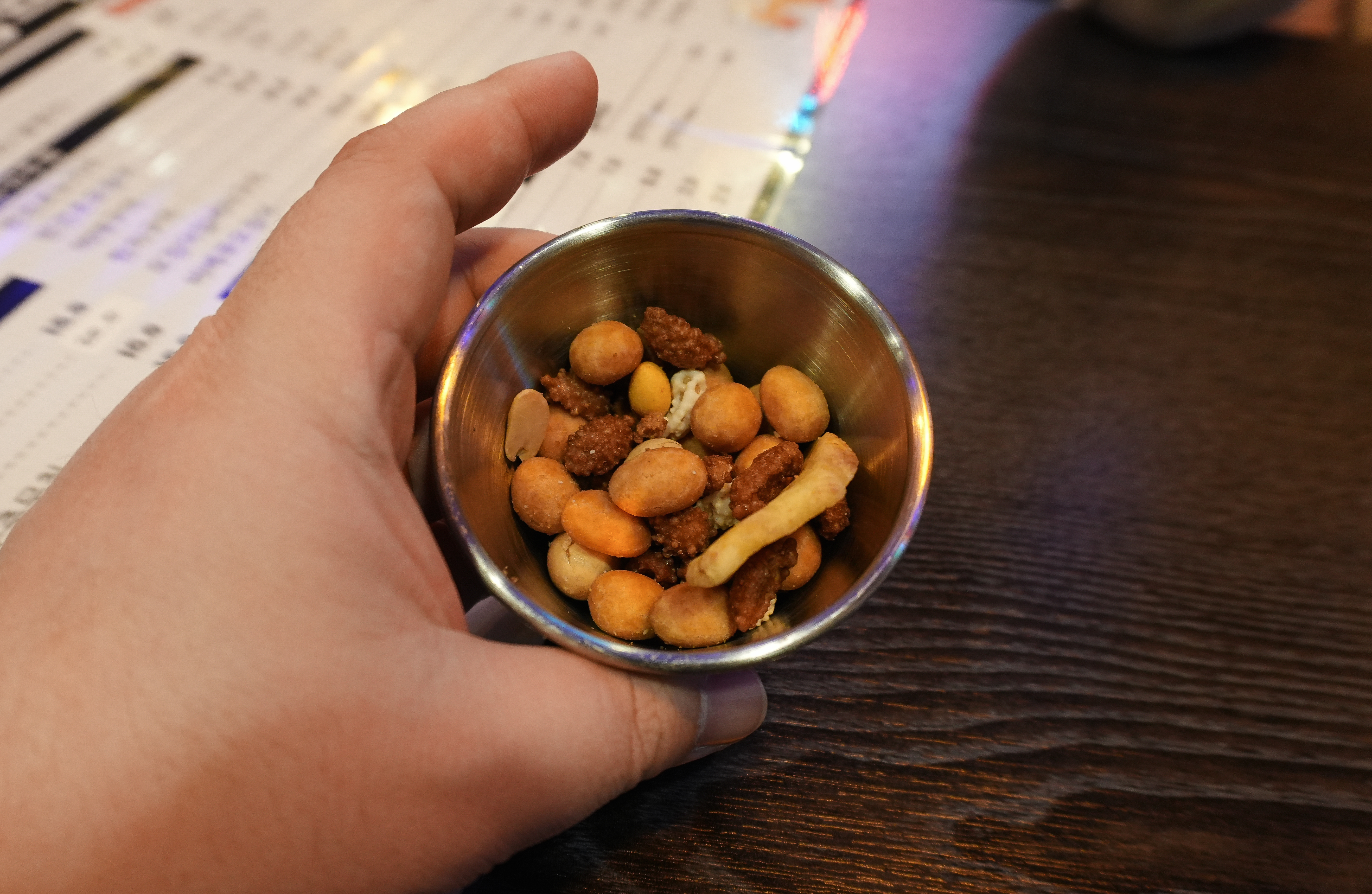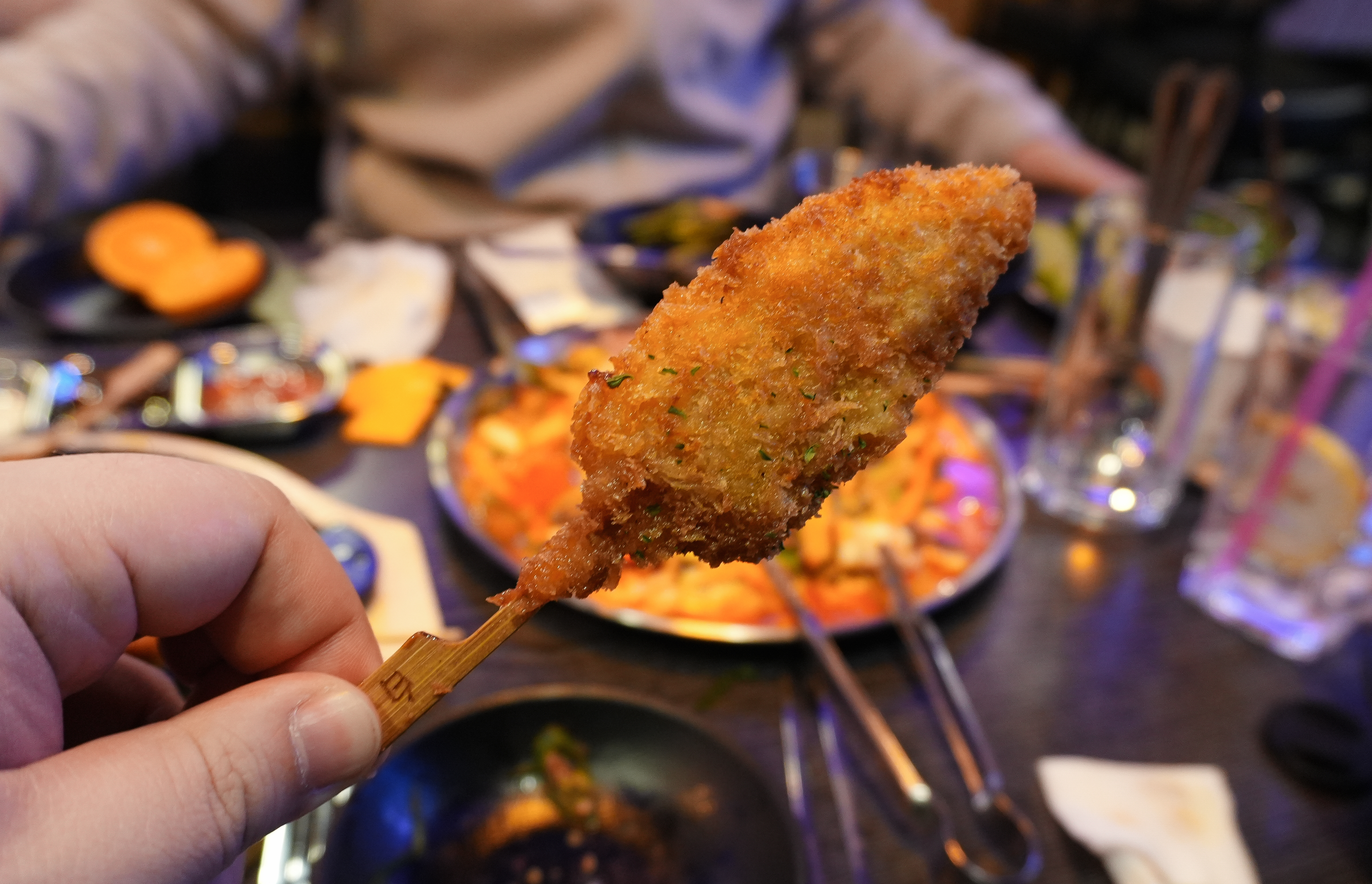 마지막으로 주문한 안주는 모둠꼬치입니다. 기성품 비중이 좀 높은 메뉴였지만, 아무래도 맥주안주에 튀김이 빠지면 서운하죠. 저는 먹다가 나중에 백합조개탕을 발견했는데, 요즘같이 쌀쌀한 날씨에는 시원한 국물이 있는 백합조개탕도 잘 어울릴 것 같더라고요.