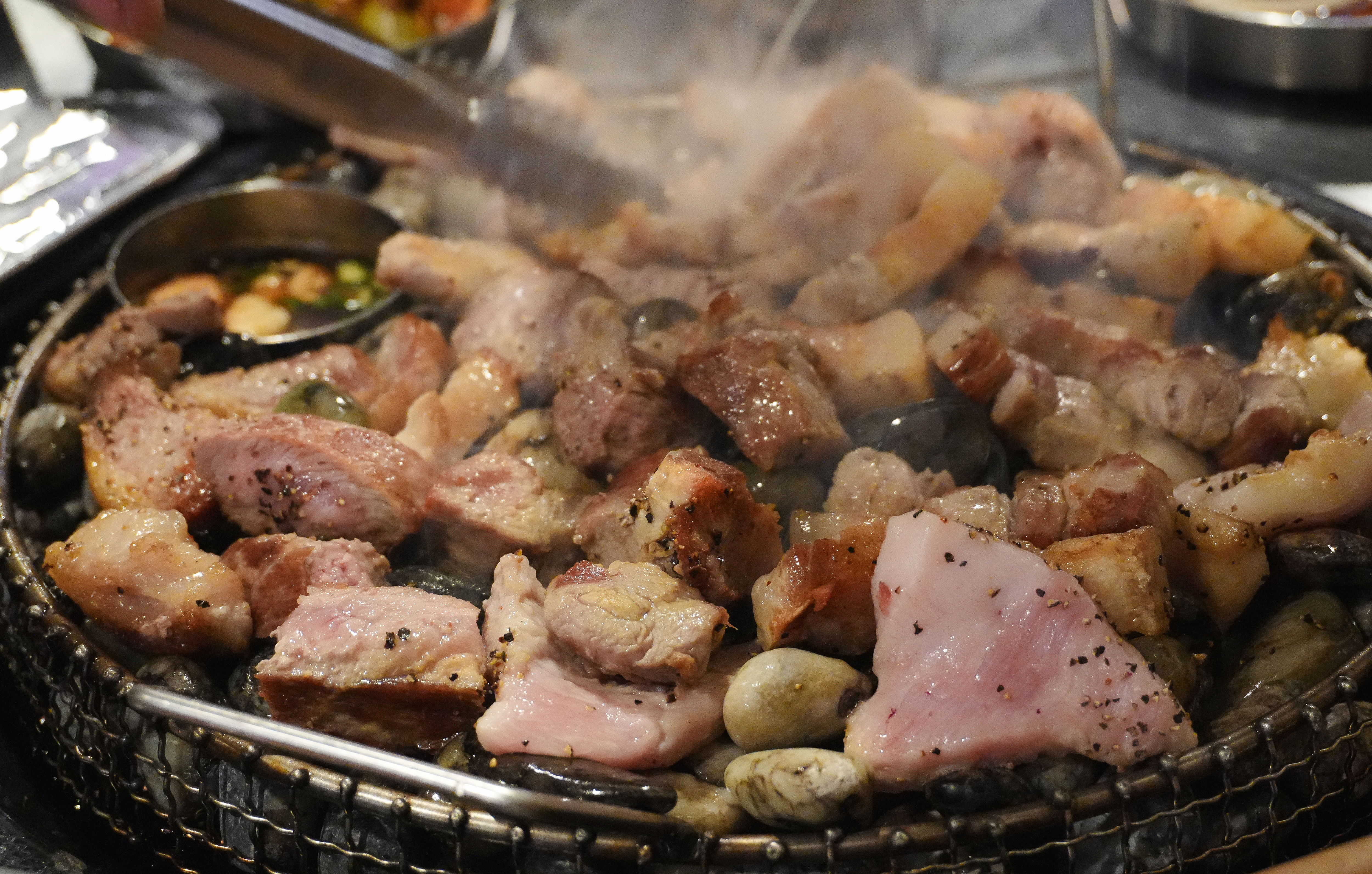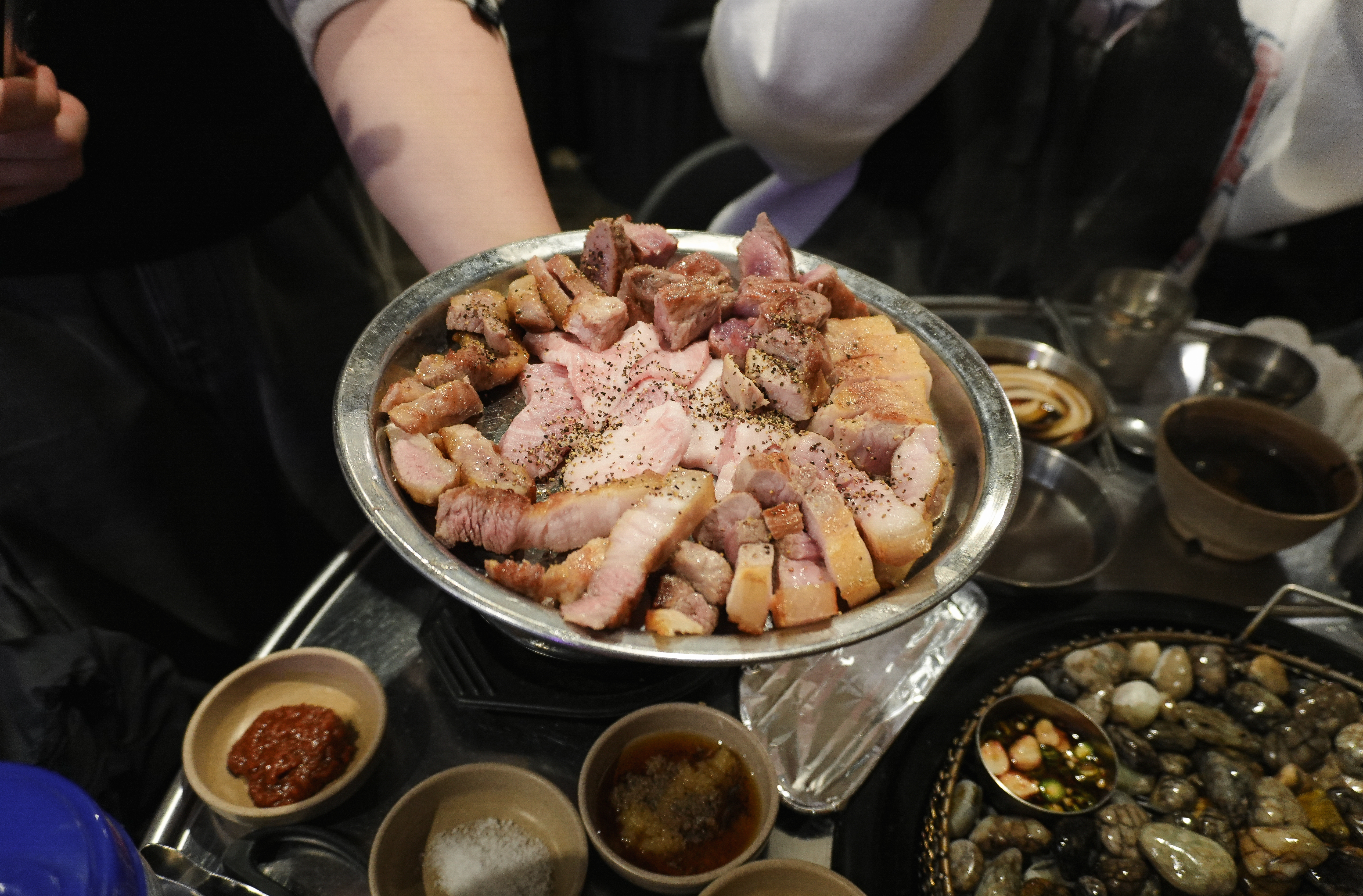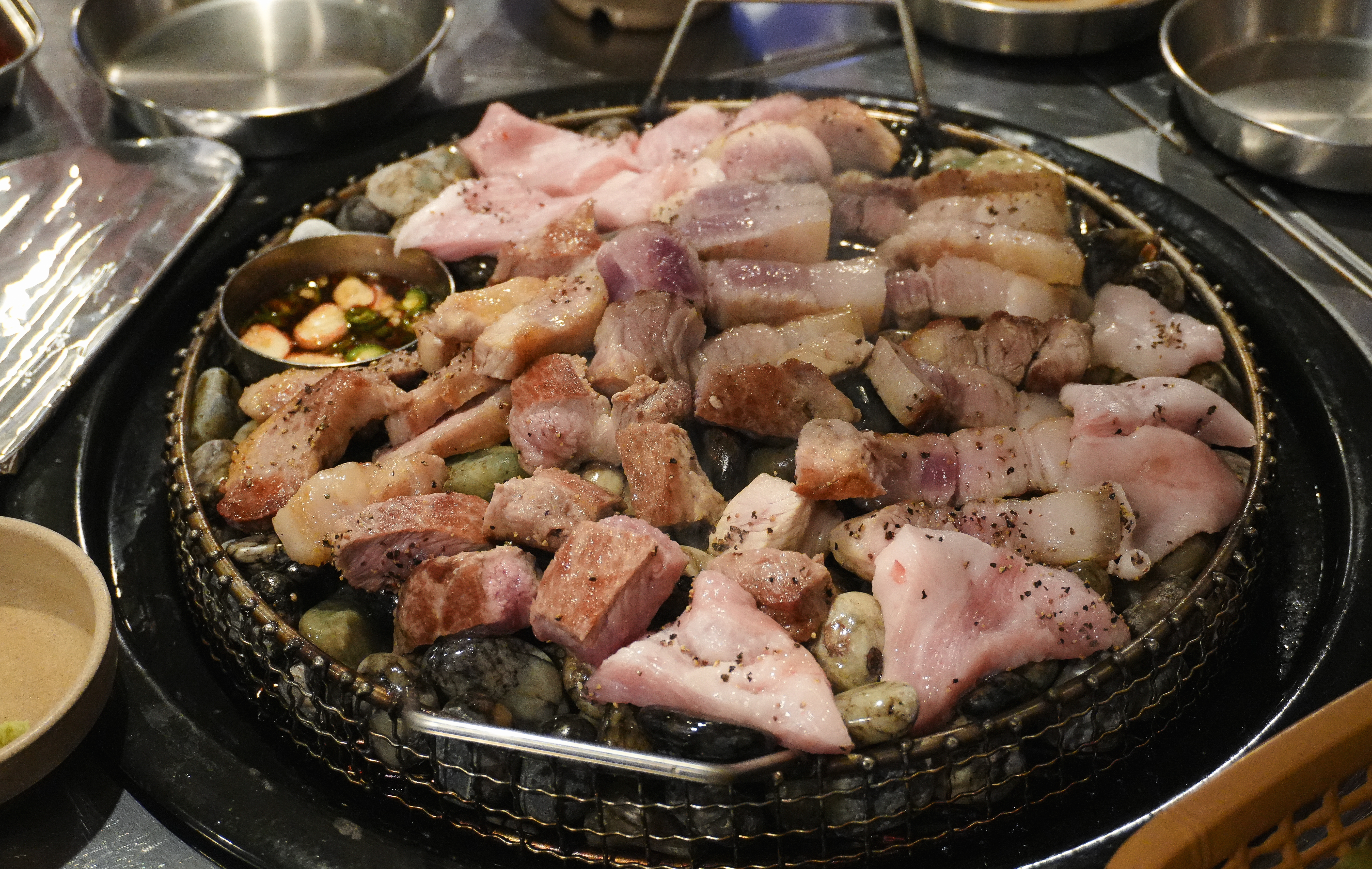 고기는 직원분이 직접 구워주고 계셨고, 거의 다 익혀주고 계셔서 따로 손을 댈 필요가 없었습니다. 특히 랑돼지의 고기는 도톰하게 구워서 씹는 식감도 좋았고, 육즙있게 먹을 수 있었습니다.