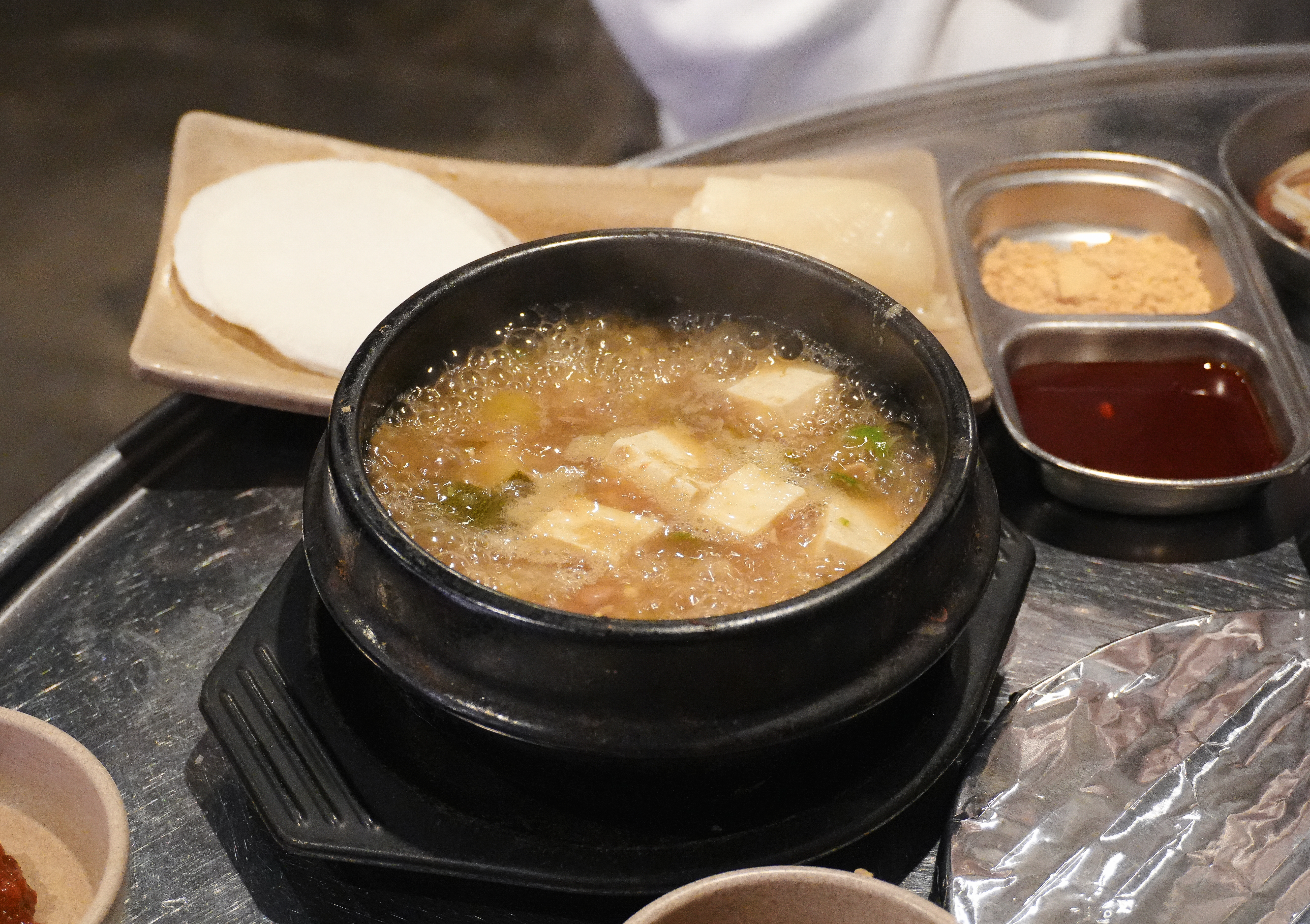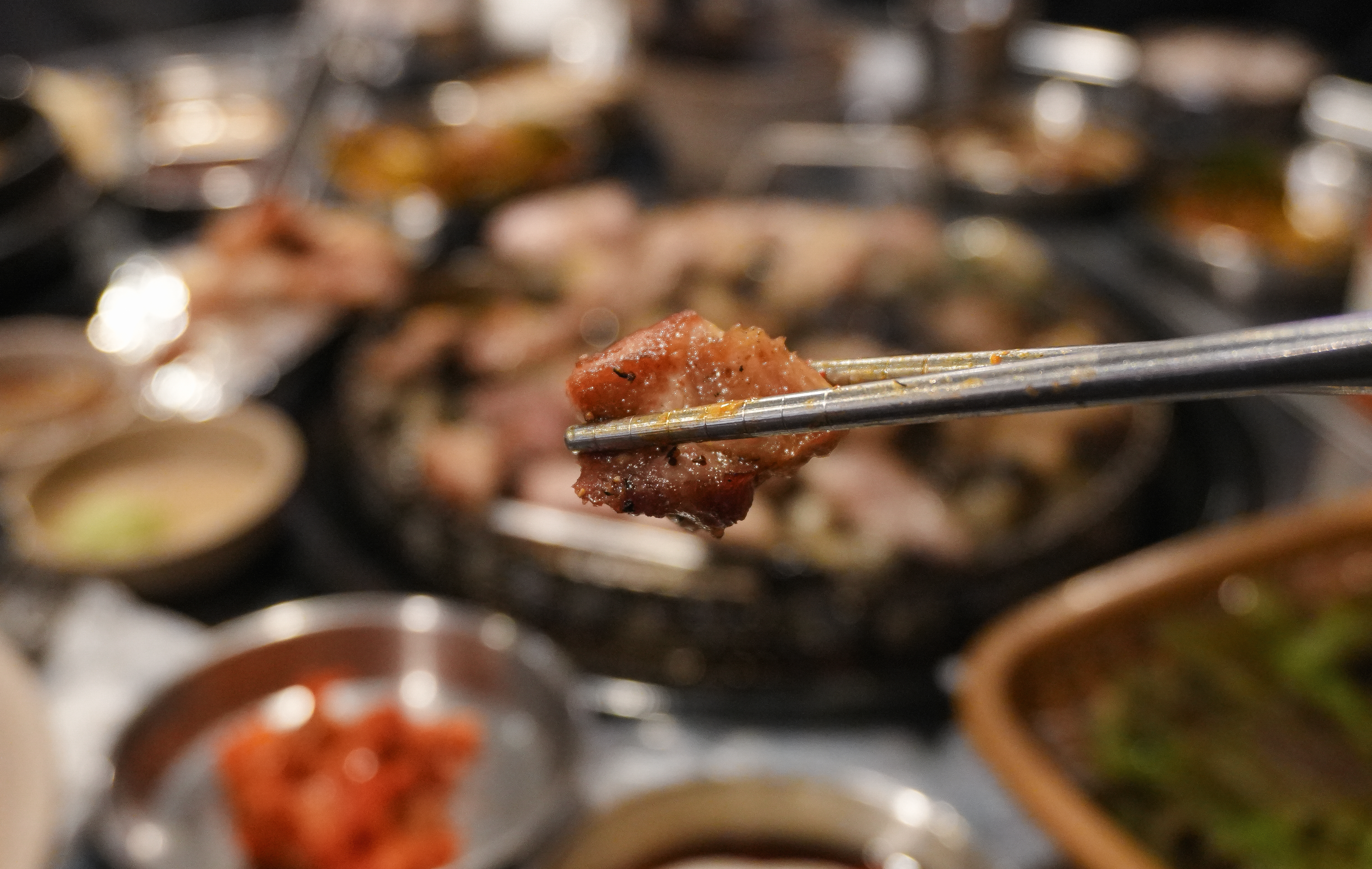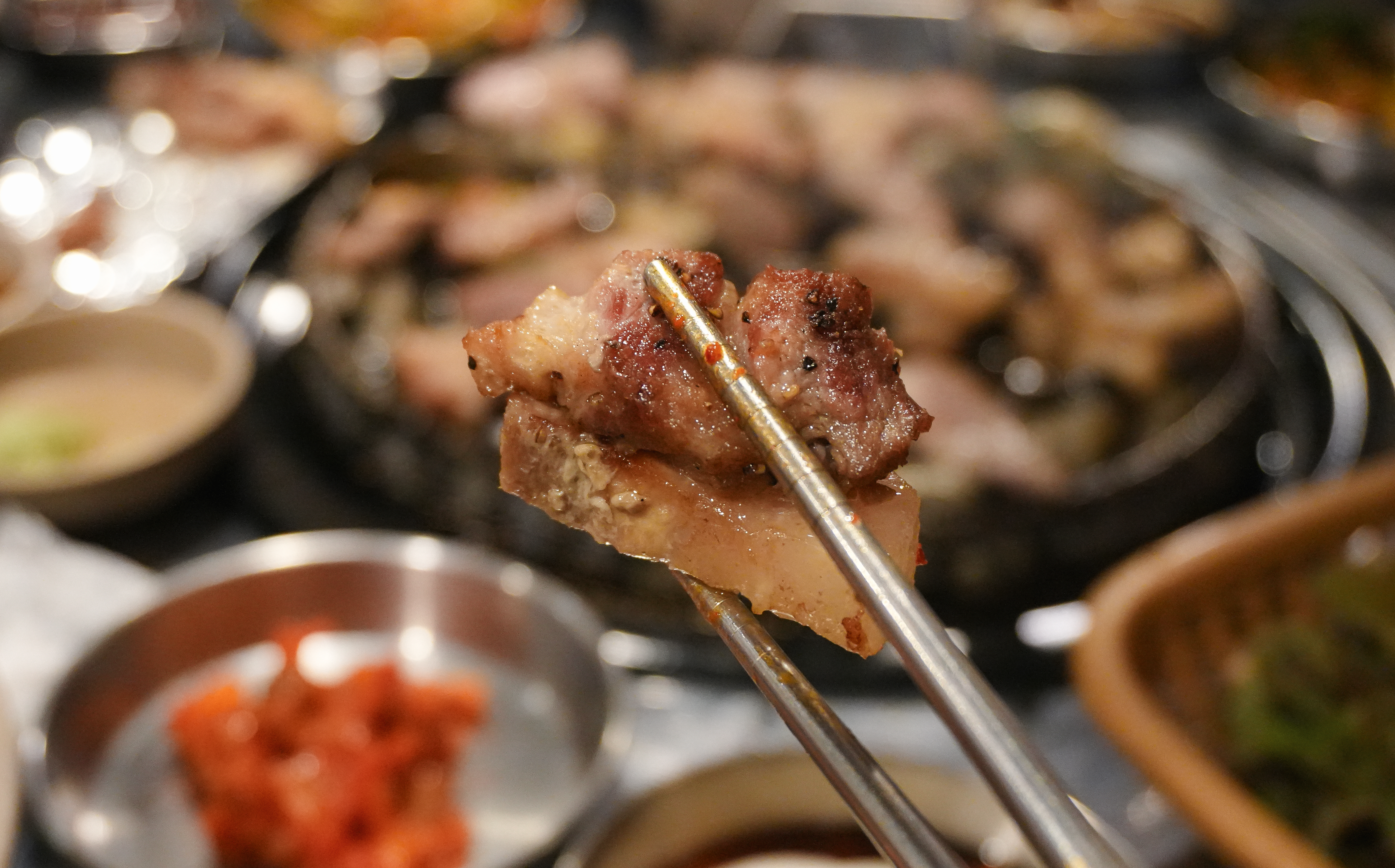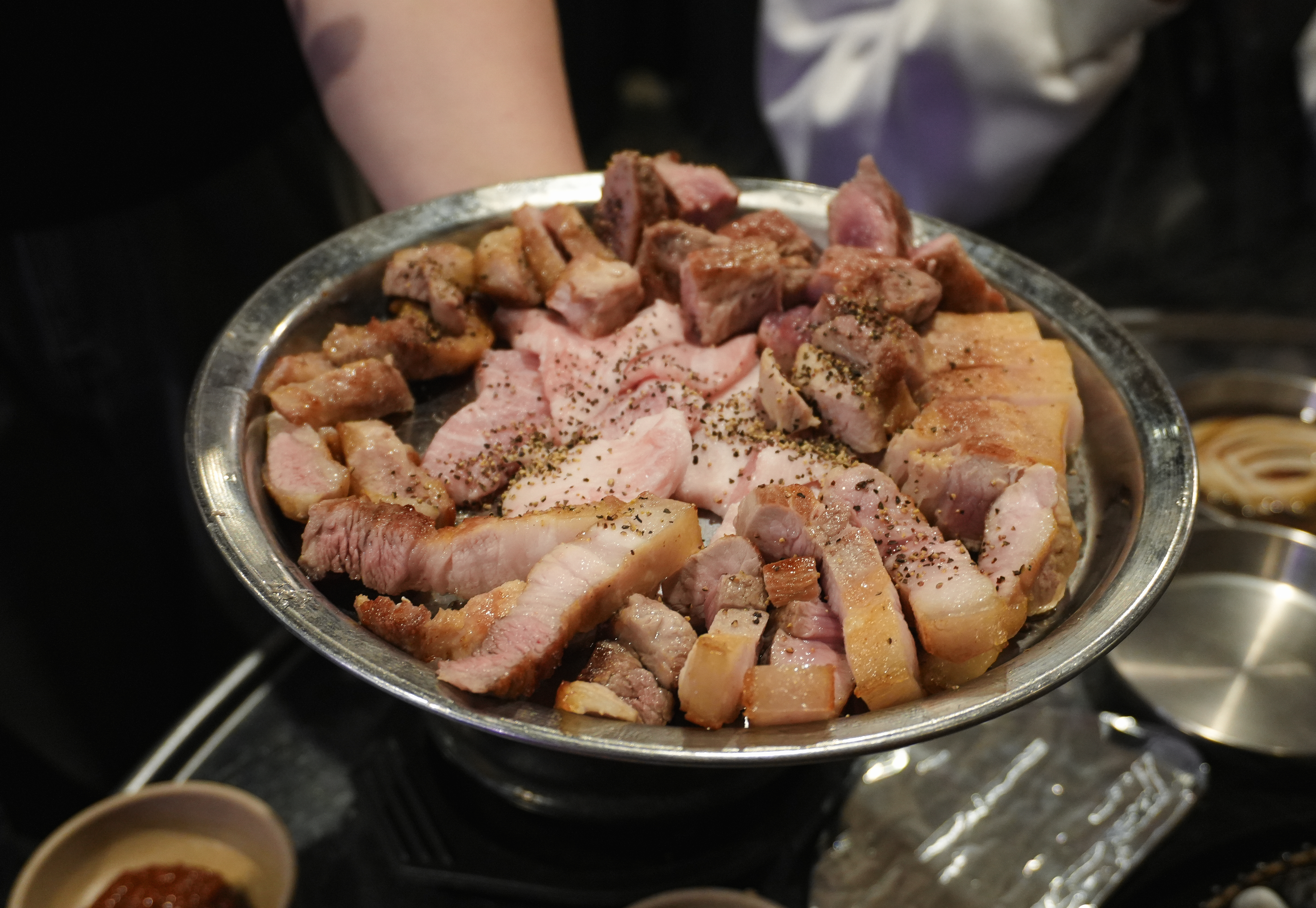 고기는 직원분이 직접 구워주고 계셨고, 거의 다 익혀주고 계셔서 따로 손을 댈 필요가 없었습니다. 특히 랑돼지의 고기는 도톰하게 구워서 씹는 식감도 좋았고, 육즙있게 먹을 수 있었습니다.