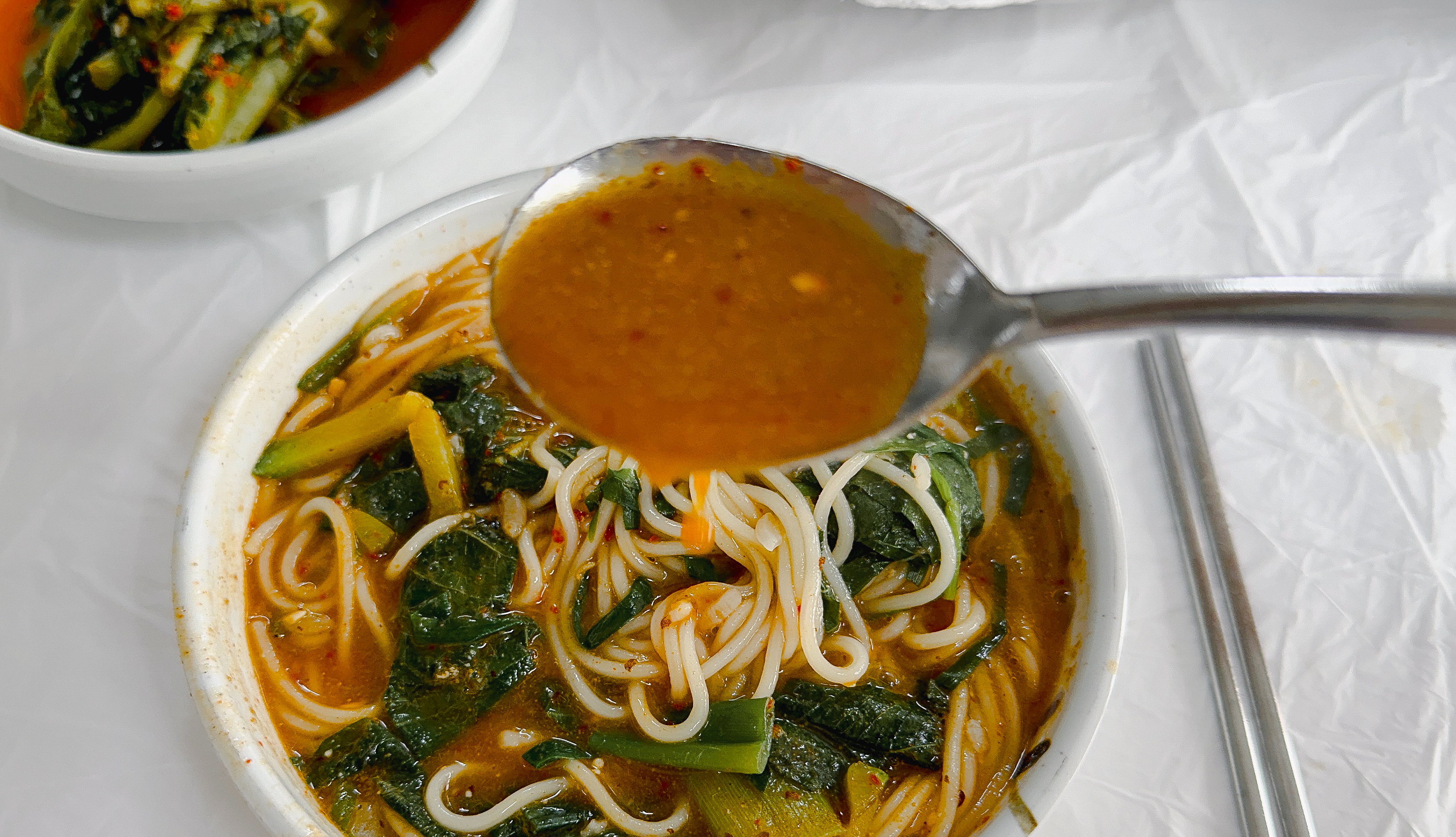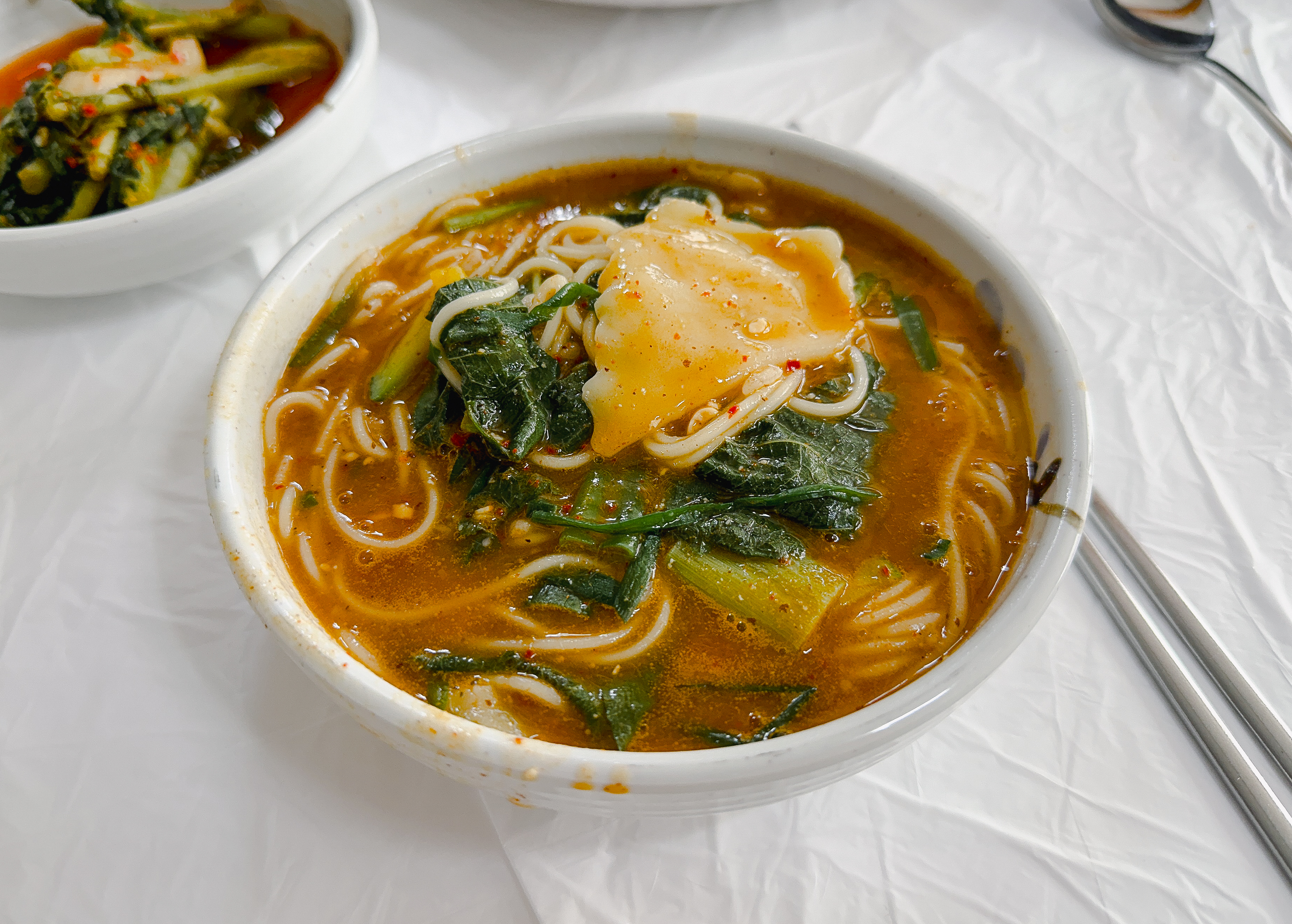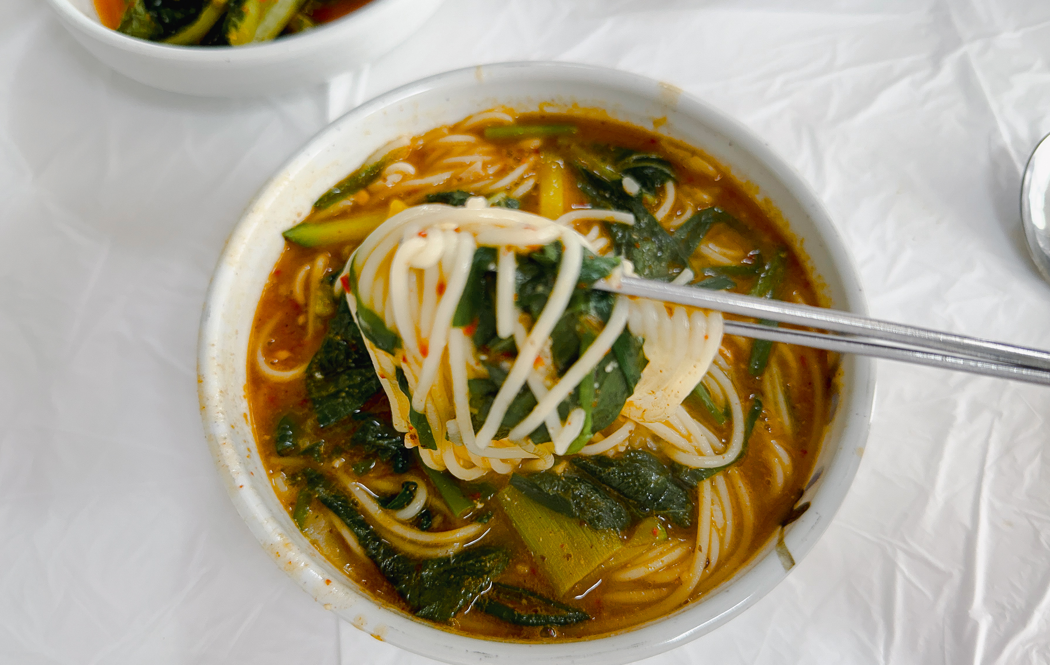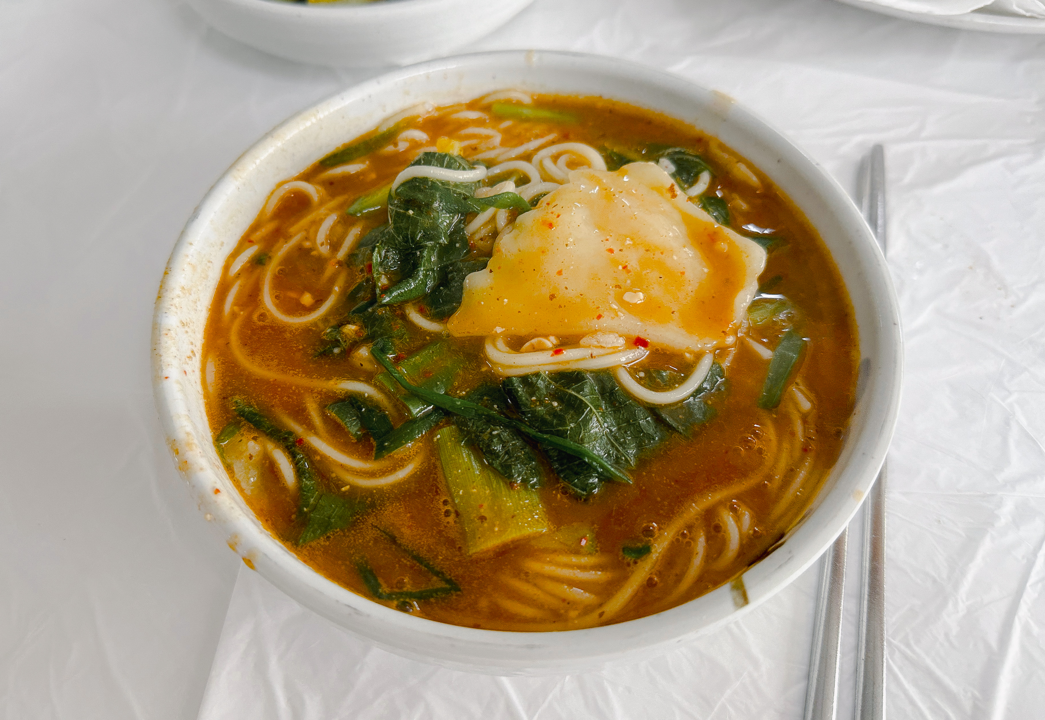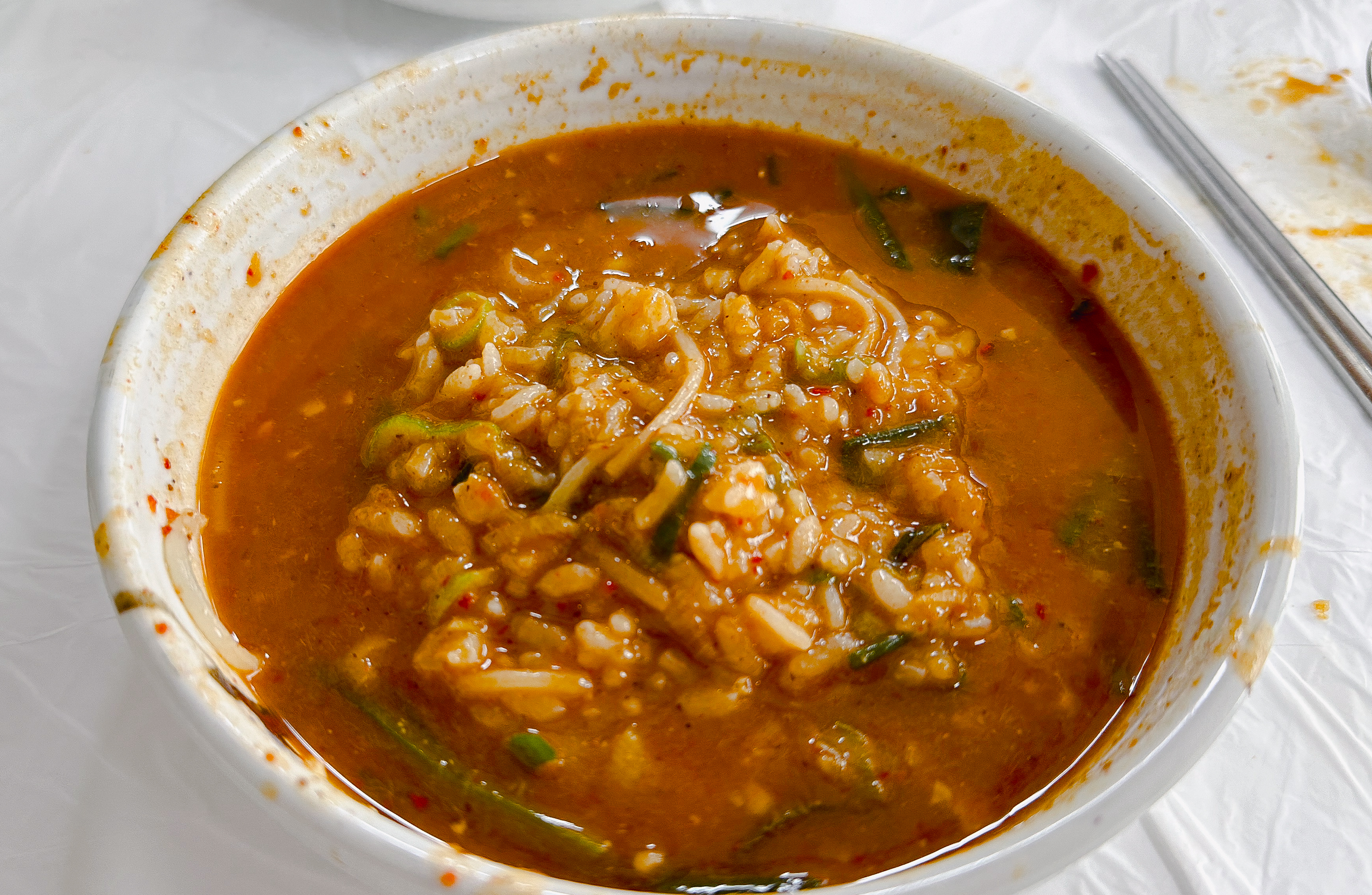 광천원조어죽의 추어튀김을 먹고 있는데, 주문한 어죽이 나왔습니다. 어죽에는 수제비와 소면이 들어있었고, 국물은 진하고 맛있었습니다. 어죽의 수제비와 소면을 어느 정도 먹은 다음에는 밥을 넣어 먹을 수도 있었습니다.