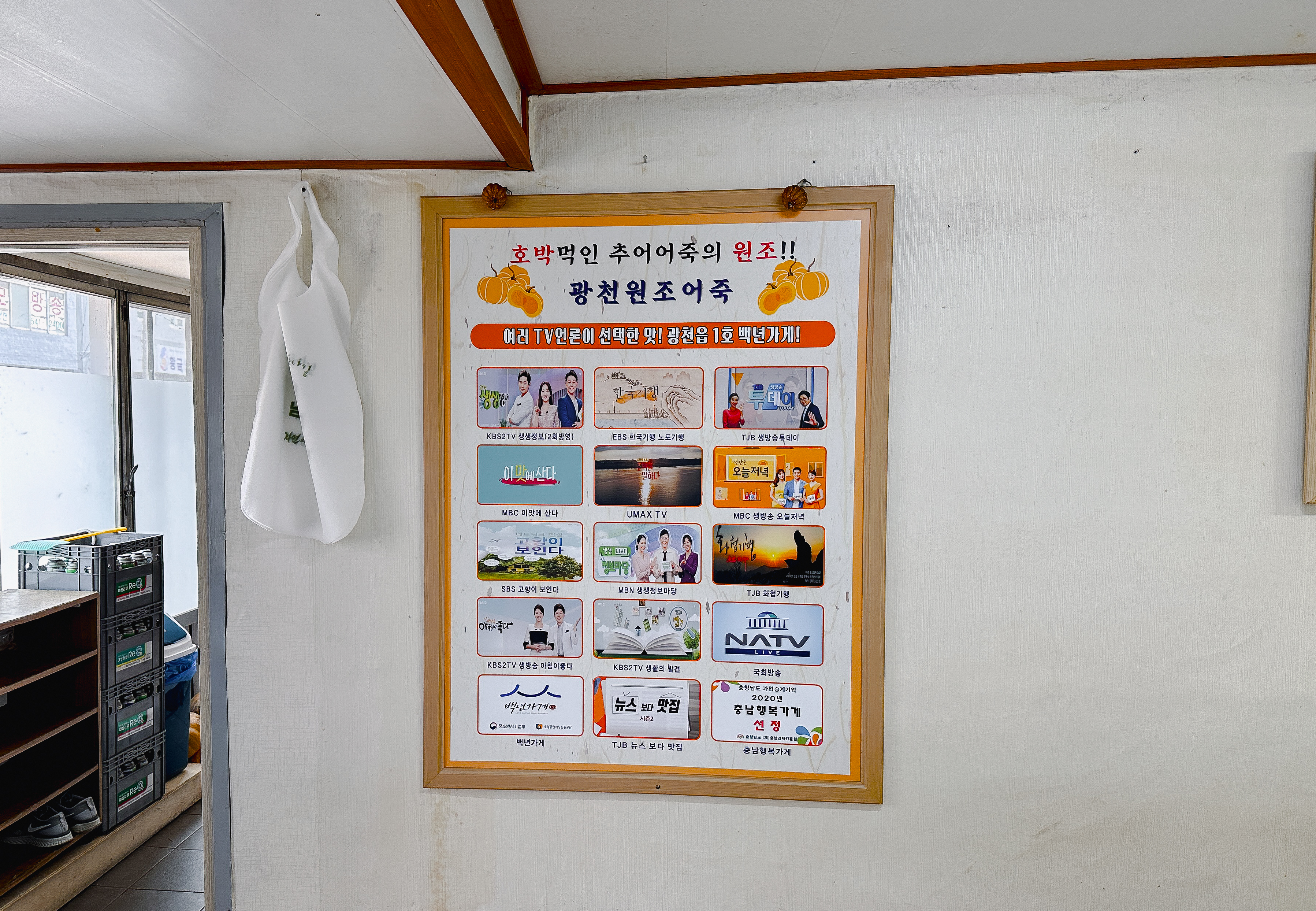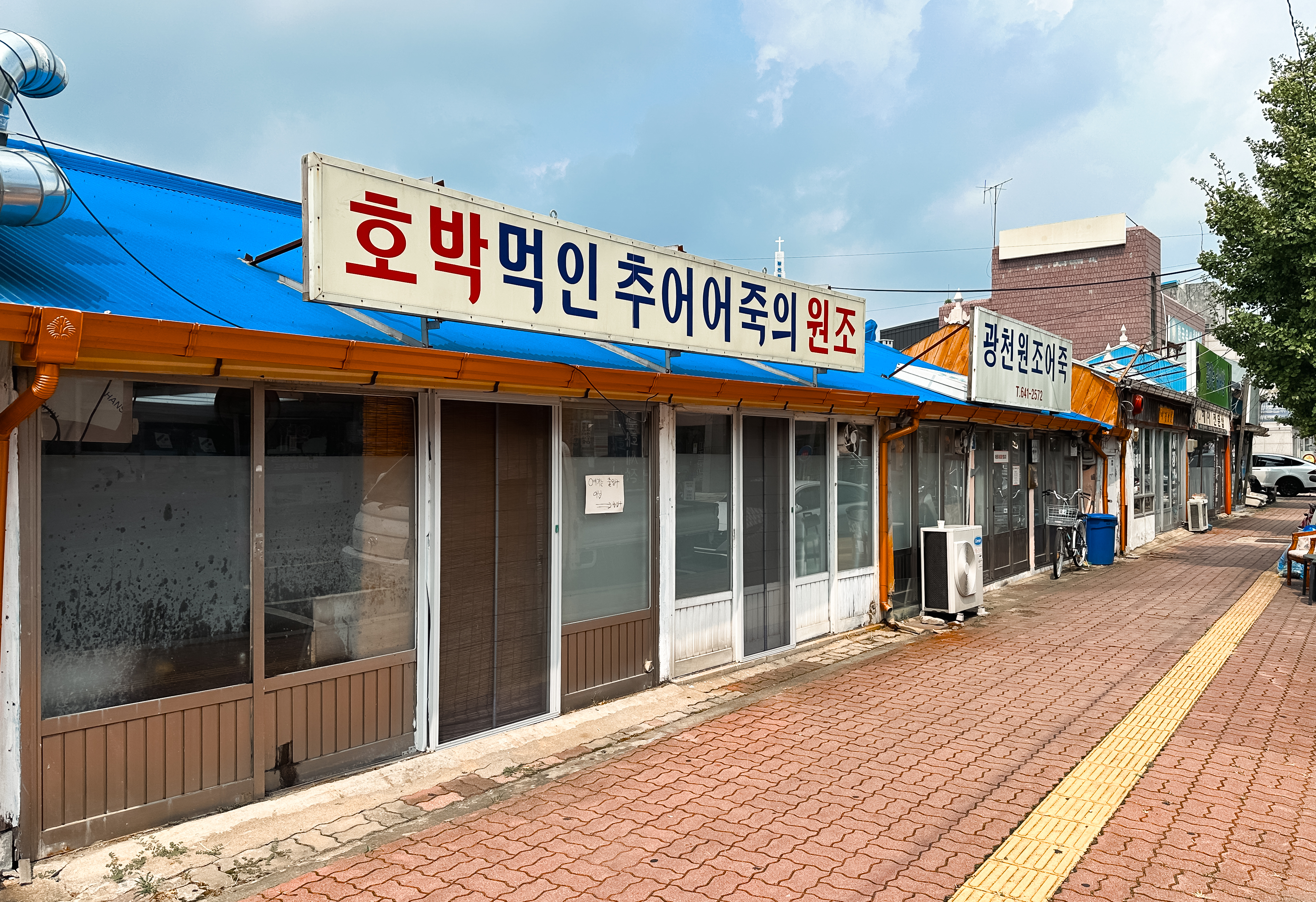 광천원조어죽은 충남 홍성군 광천읍 광천리 178-7 에 위치한 가게입니다. 주차장은 따로 있지는 않았고, 가게 앞이나 인근에 주차해야 했습니다. 가게에는 ⎡호박먹인 추어어죽의 원조⎦라는 문구가 큼지막하게 적혀있었습니다.