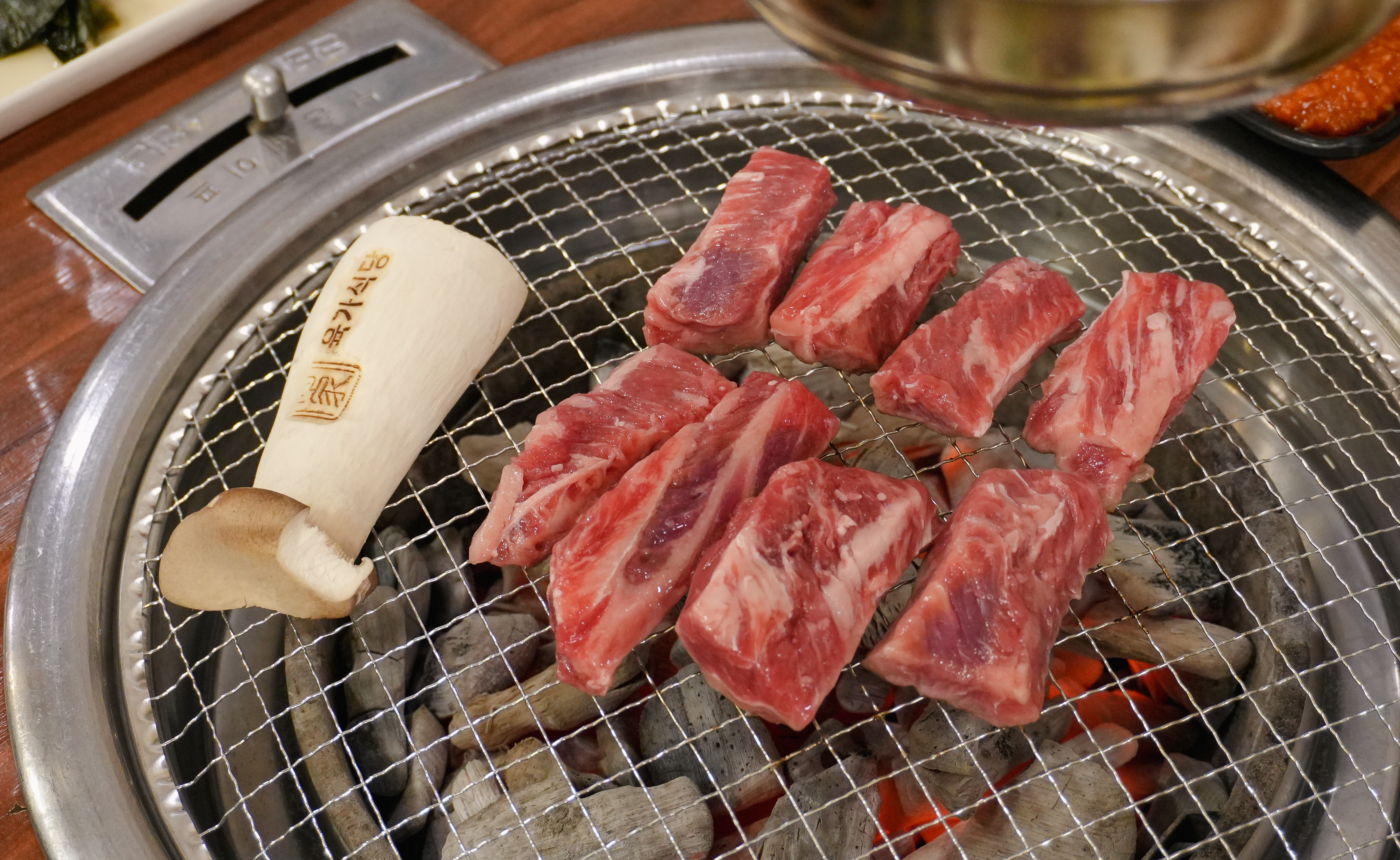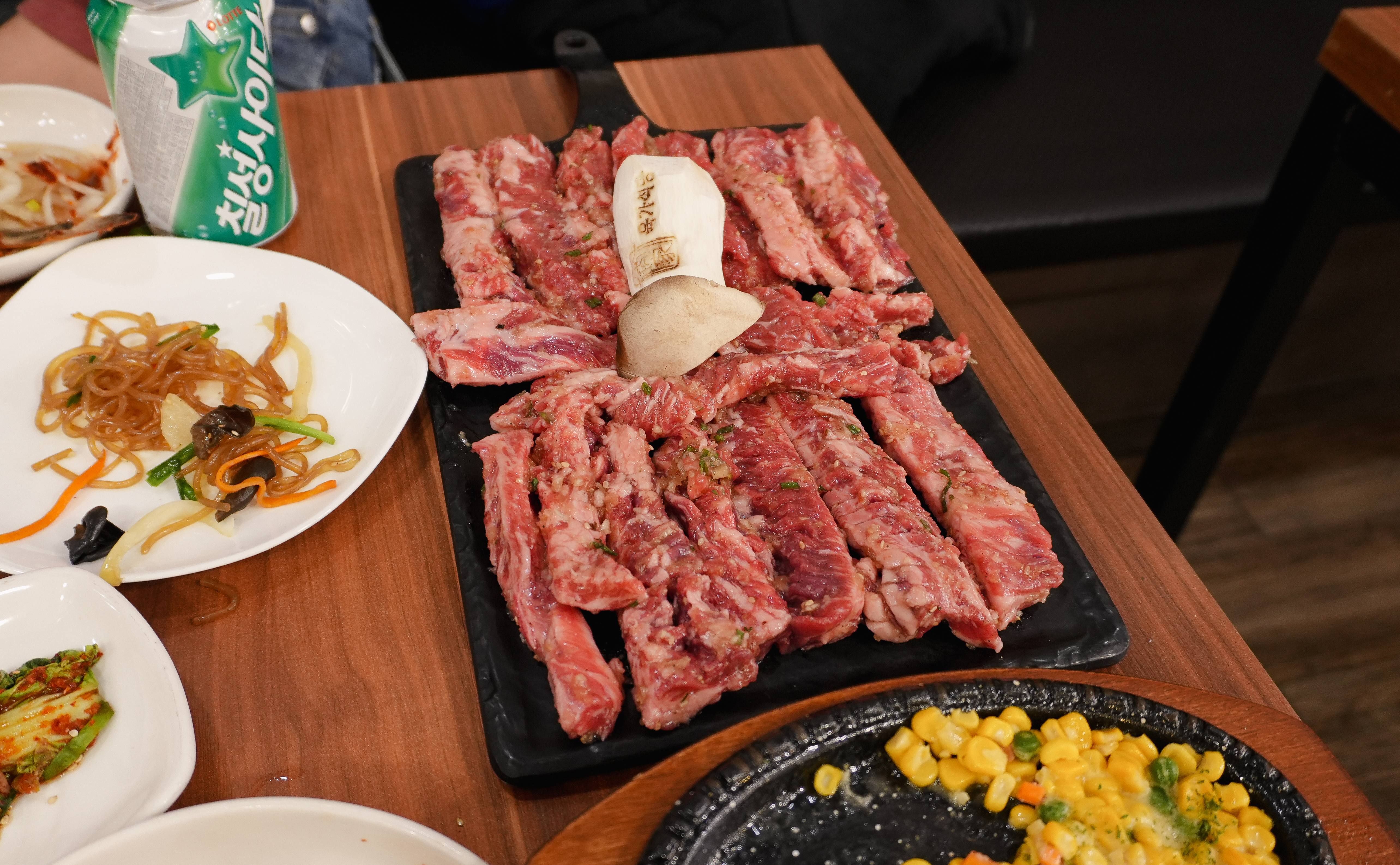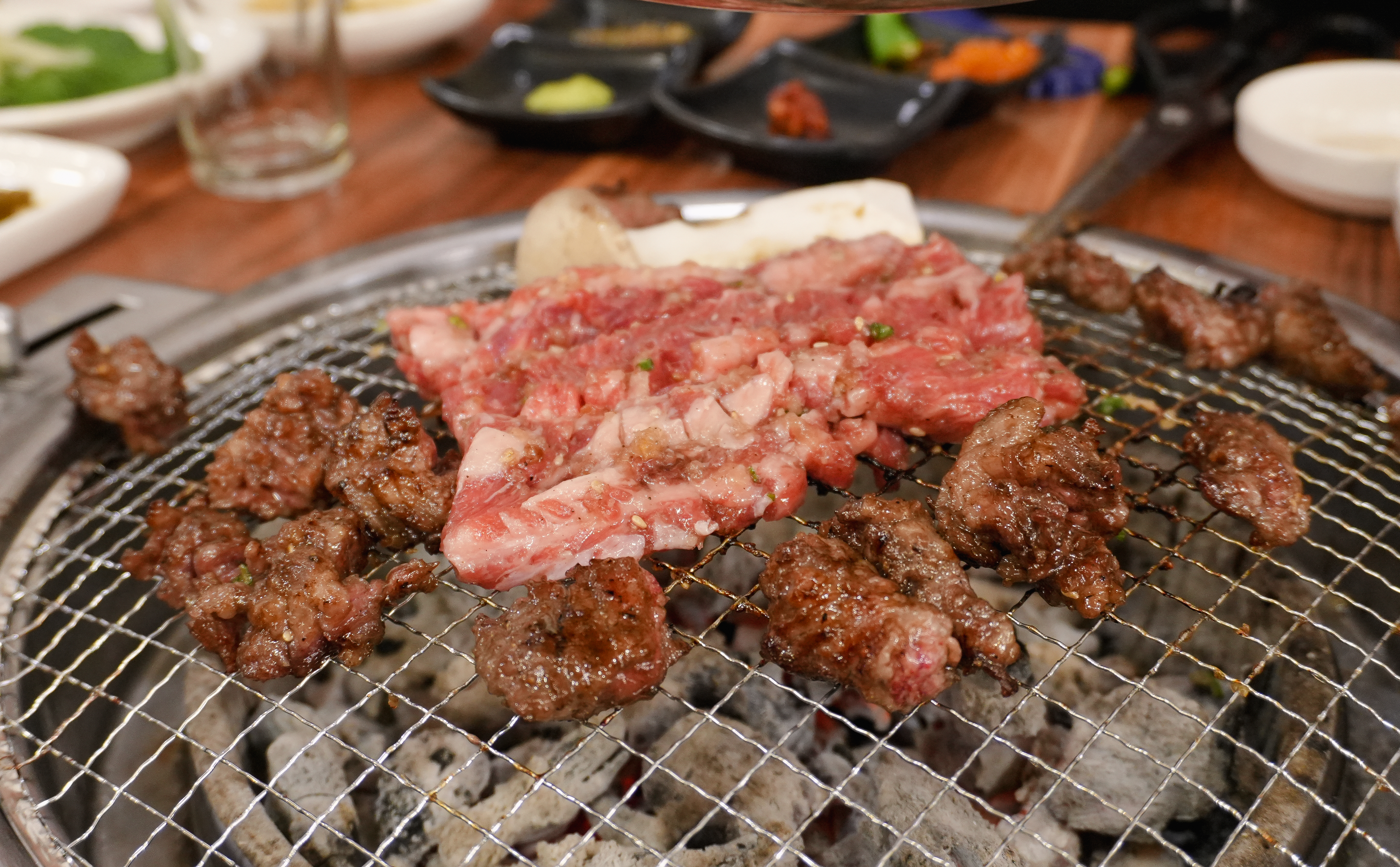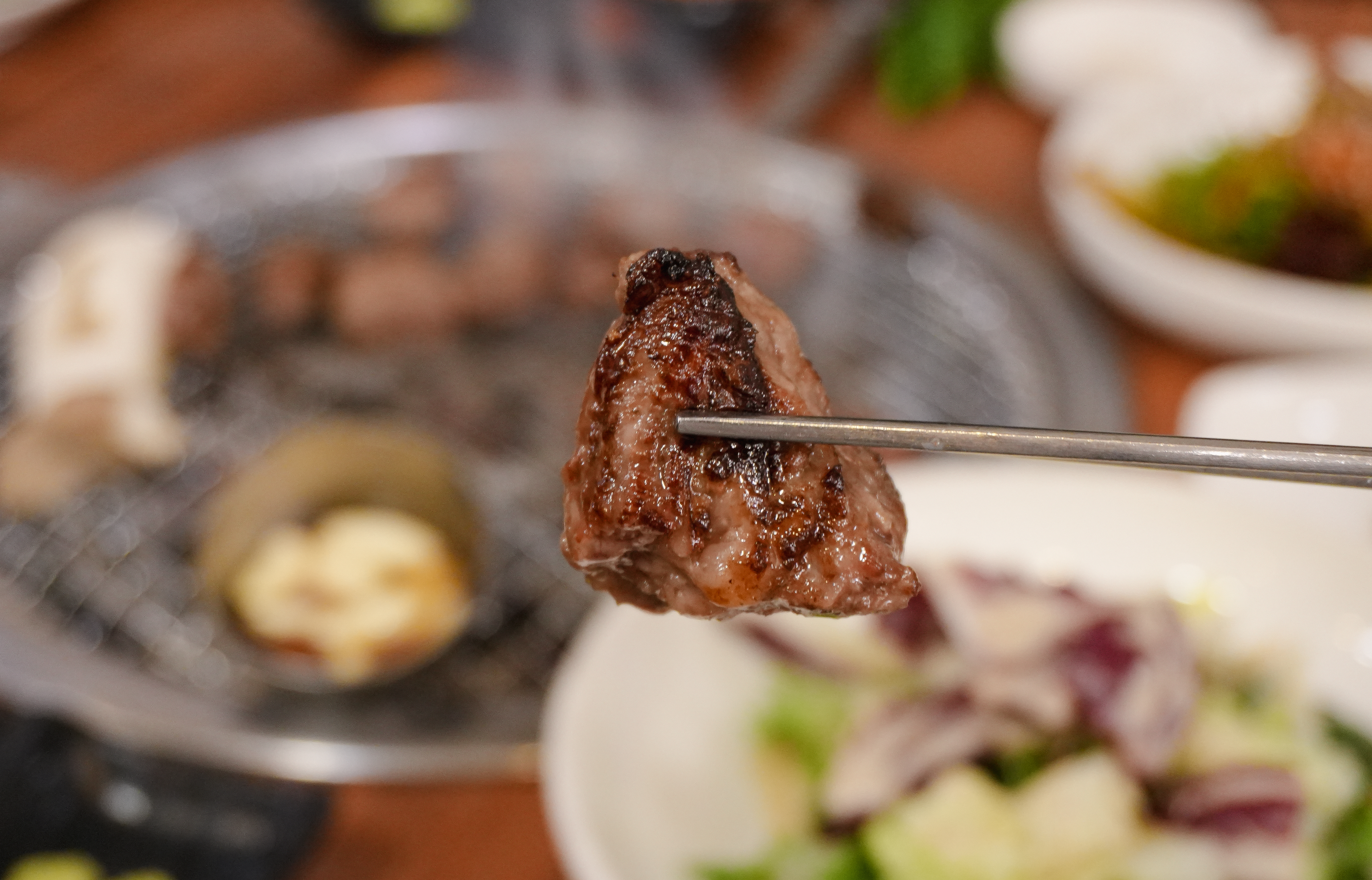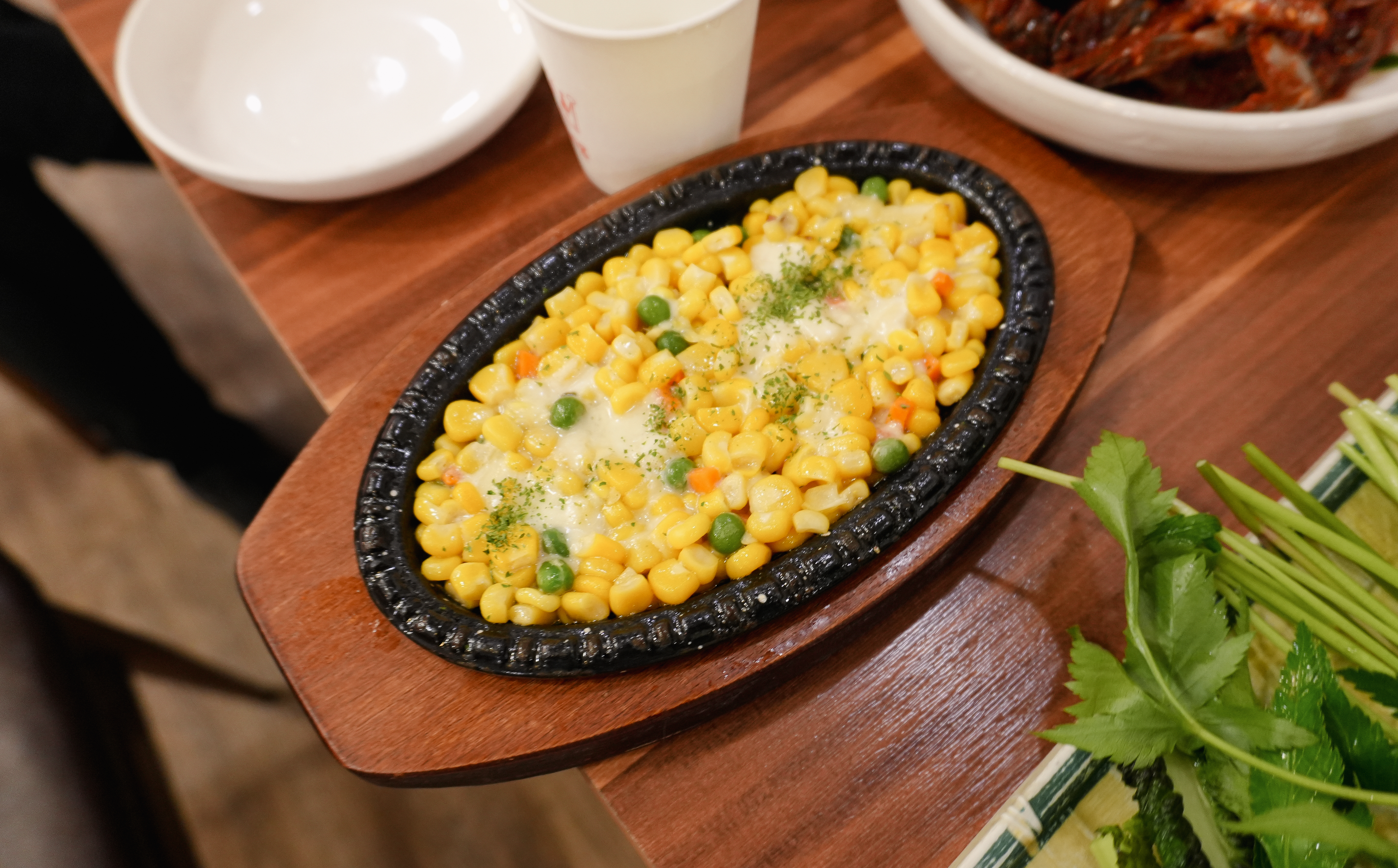 제가 카메라를 들고 열심히 촬영하는 모습을 보시고는 사장님이(?) 서비스로 콘치즈도 주셨습니다. 소고기라 그런지 불판 위에서 금세 익어가더라고요.