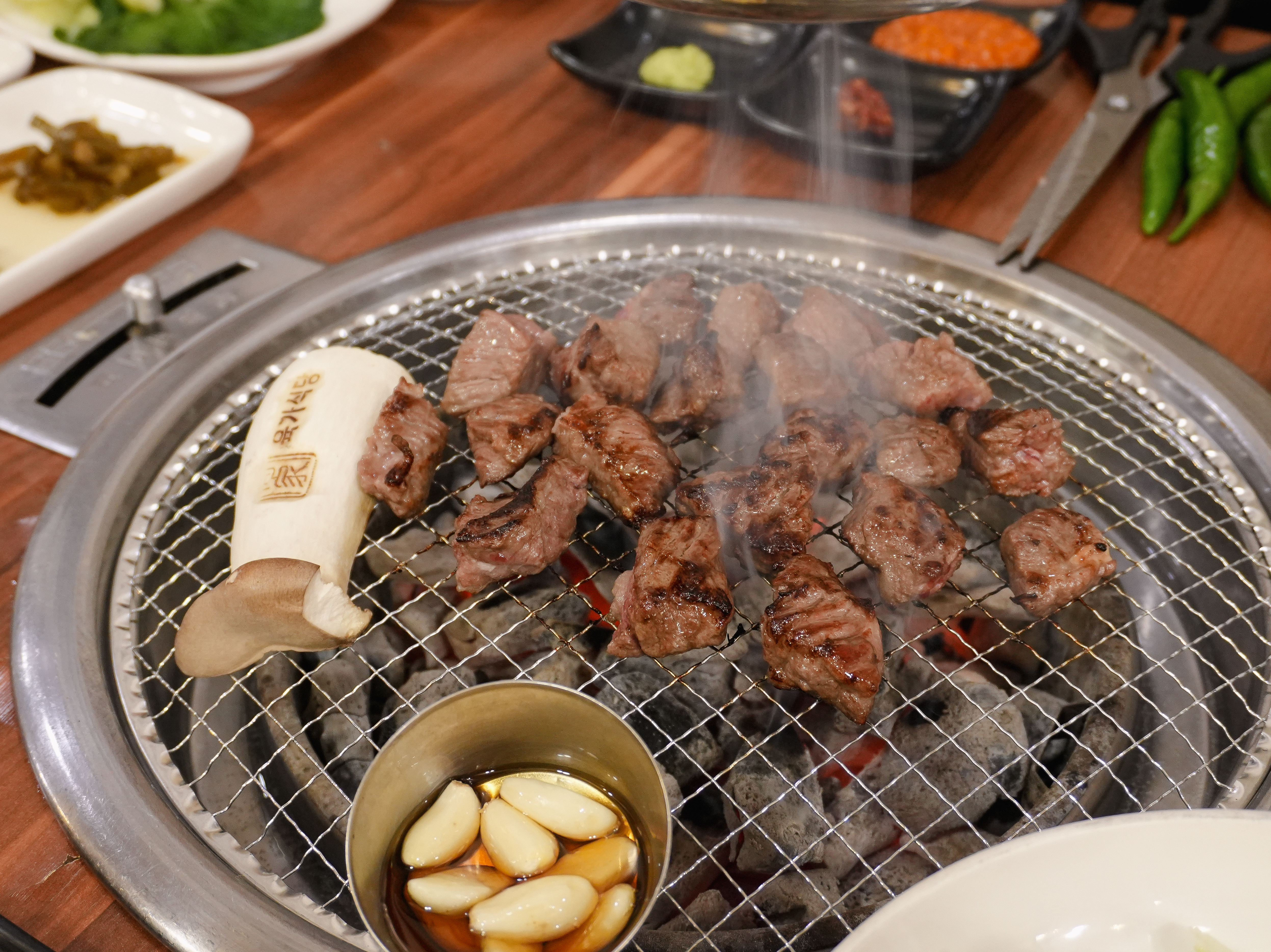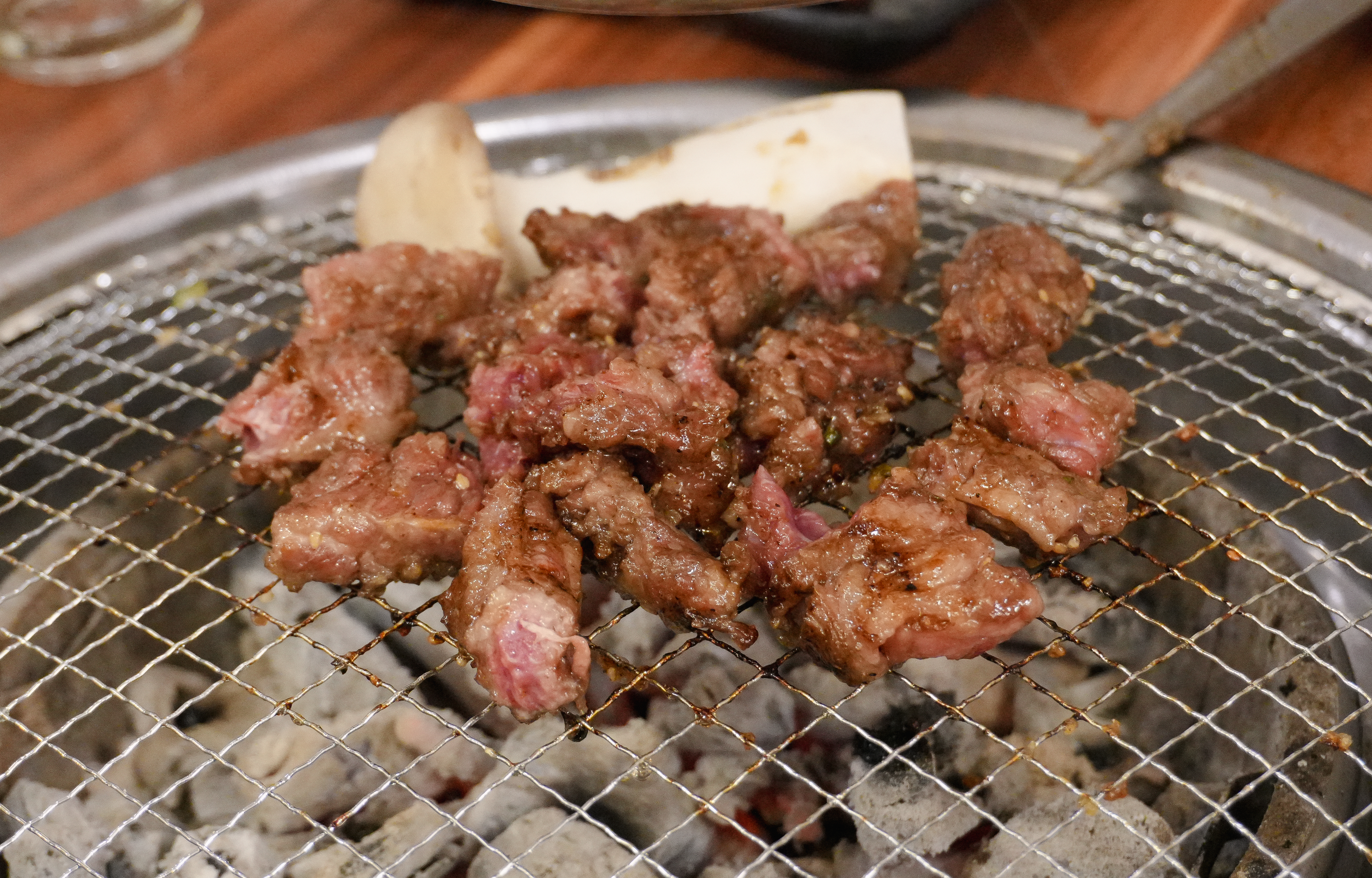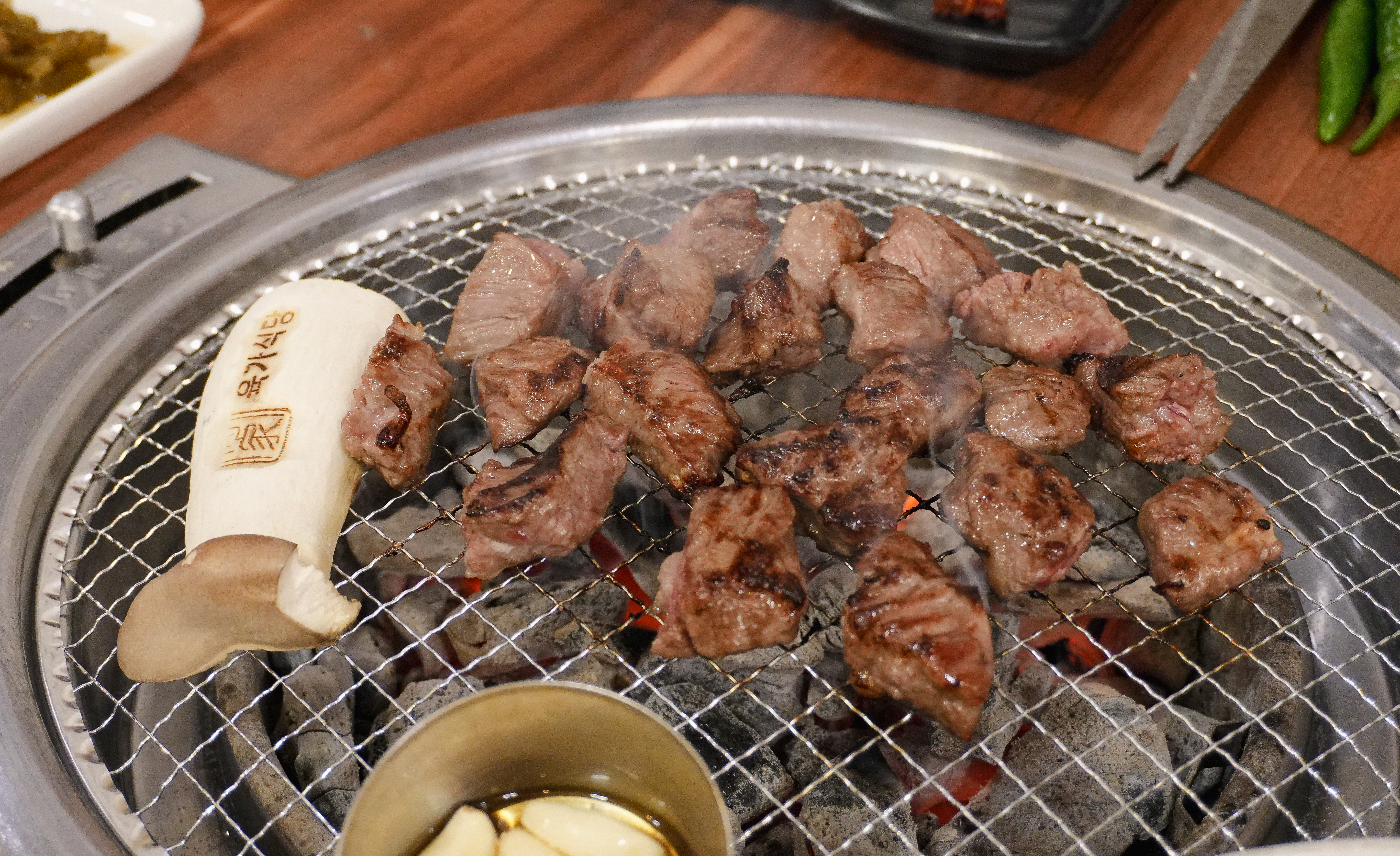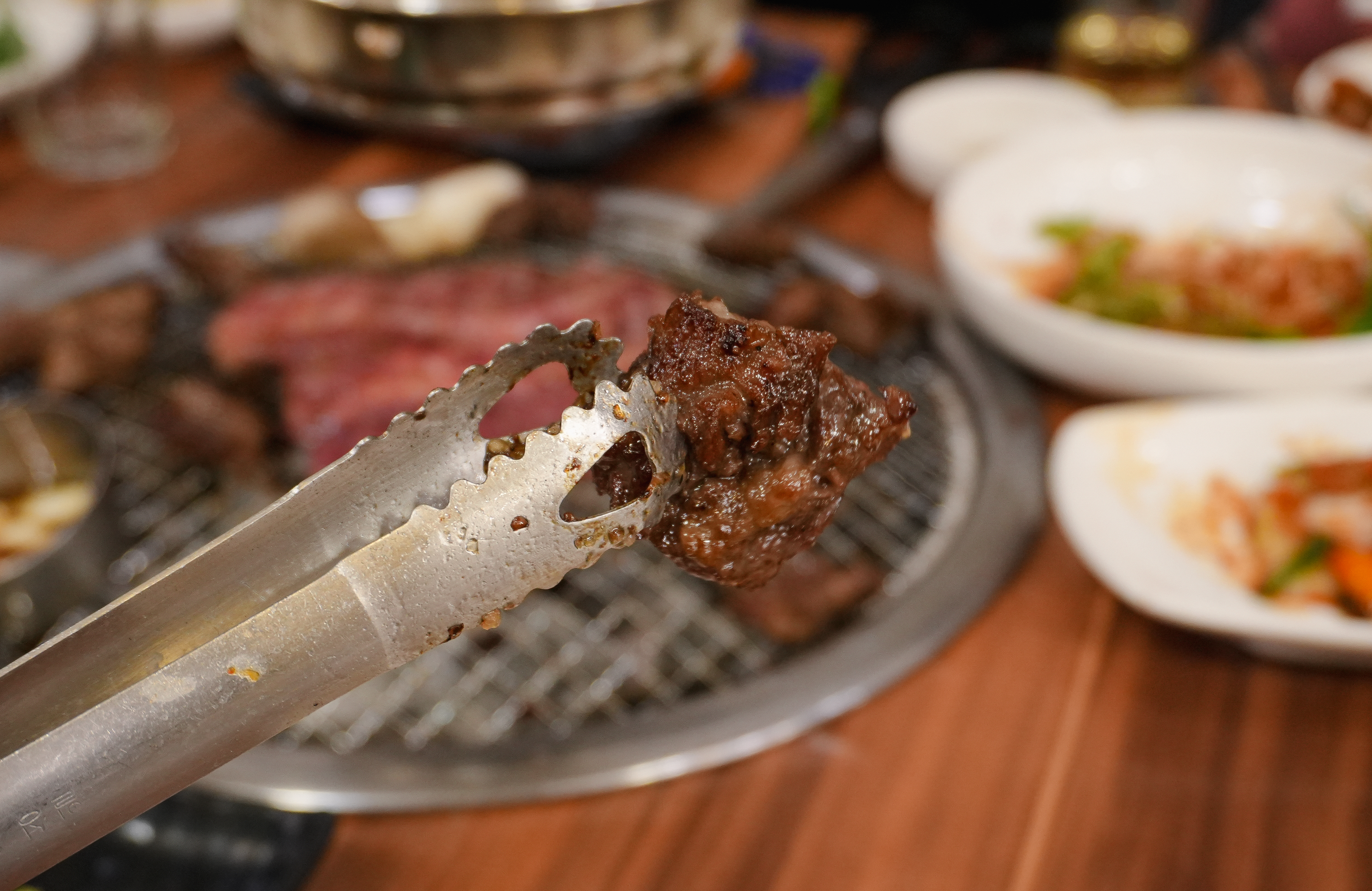 제가 카메라를 들고 열심히 촬영하는 모습을 보시고는 사장님이(?) 서비스로 콘치즈도 주셨습니다. 소고기라 그런지 불판 위에서 금세 익어가더라고요.