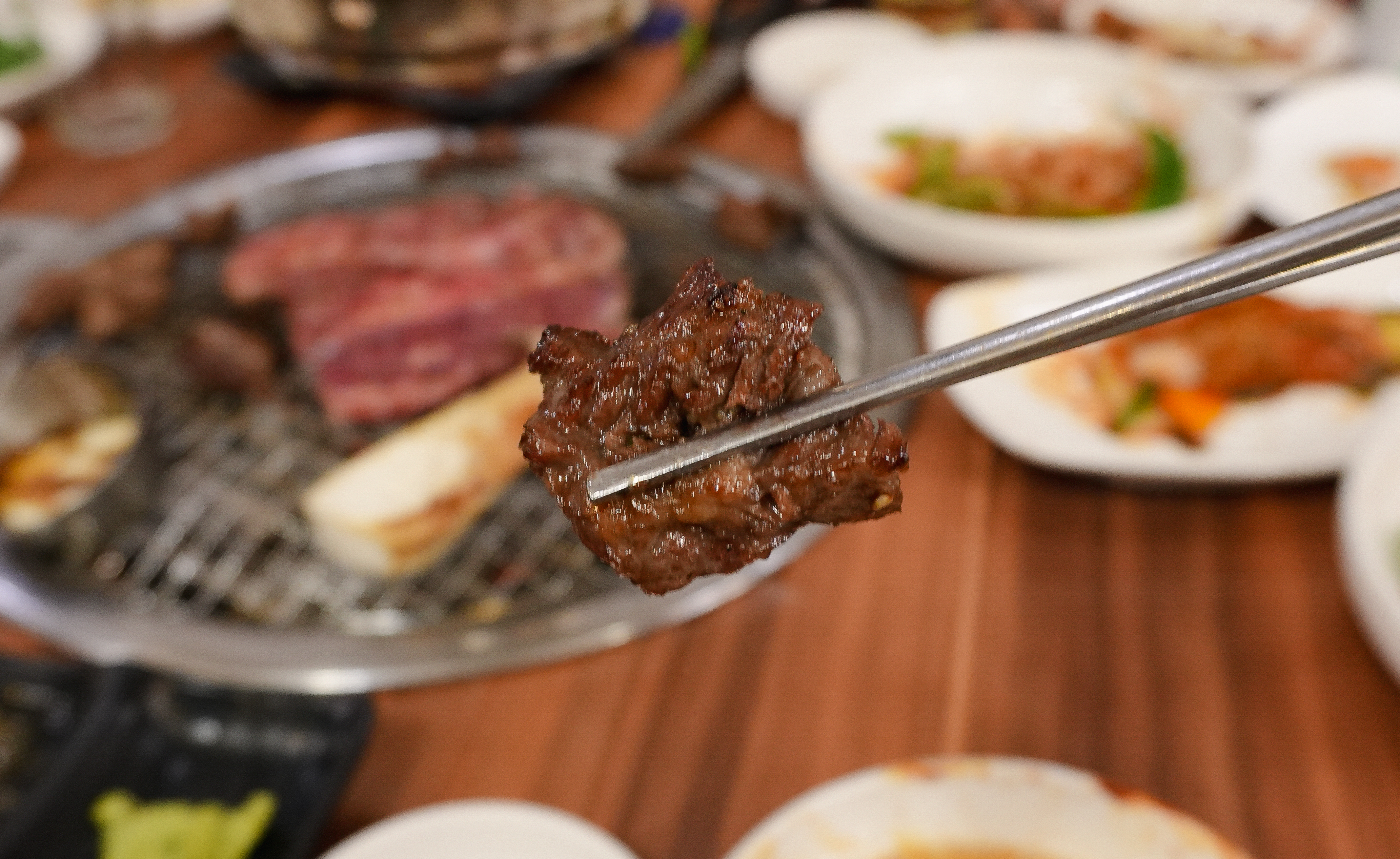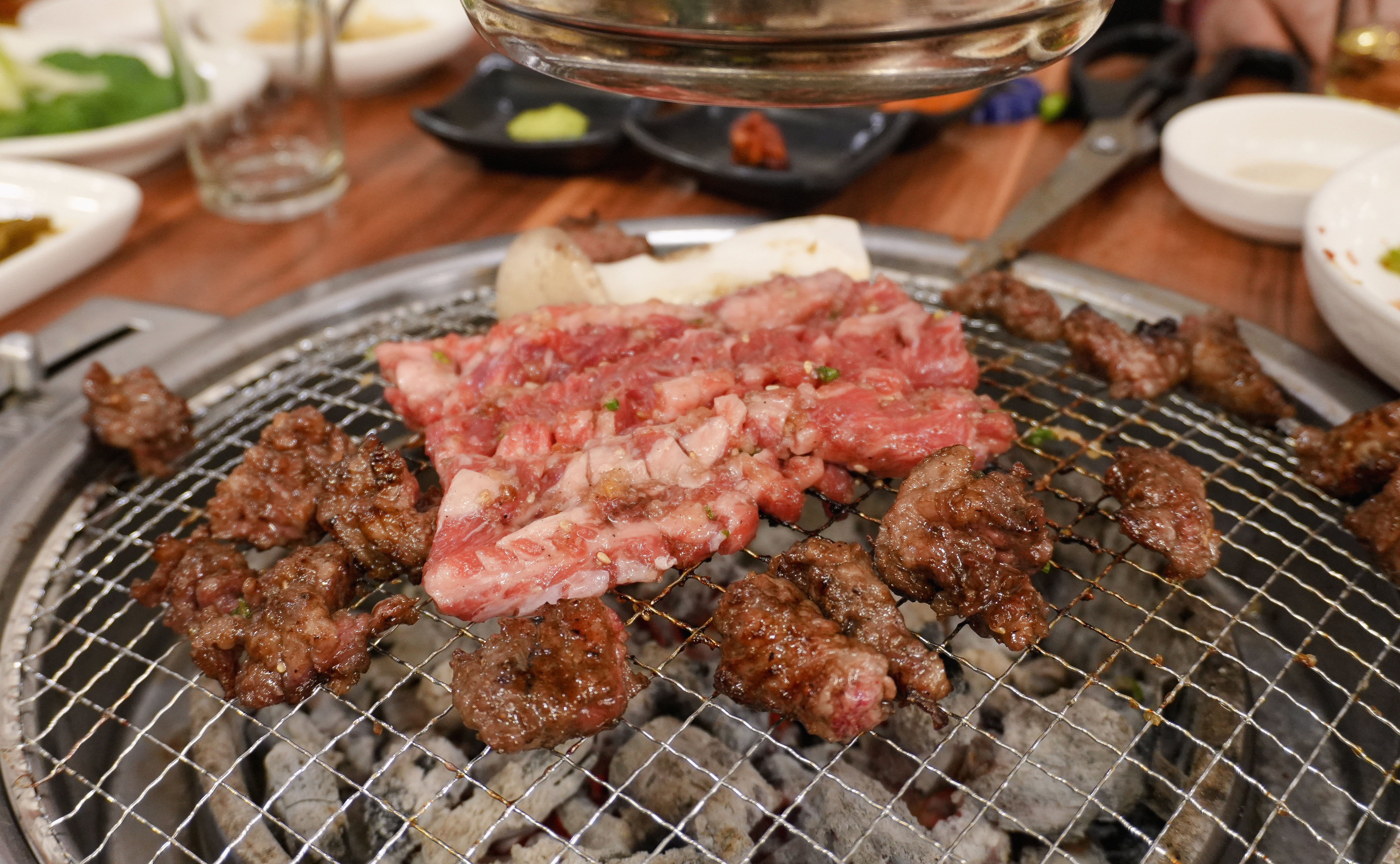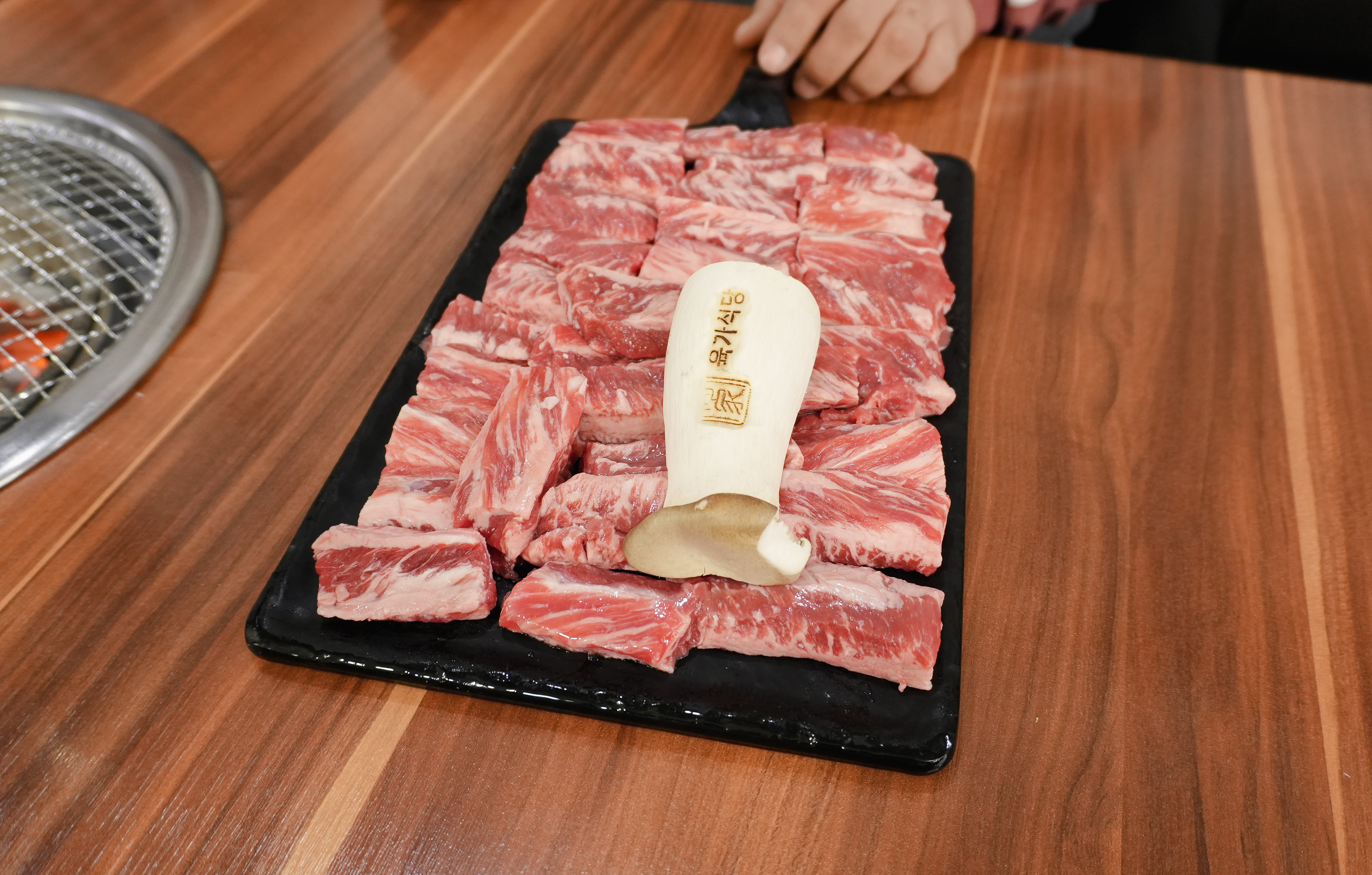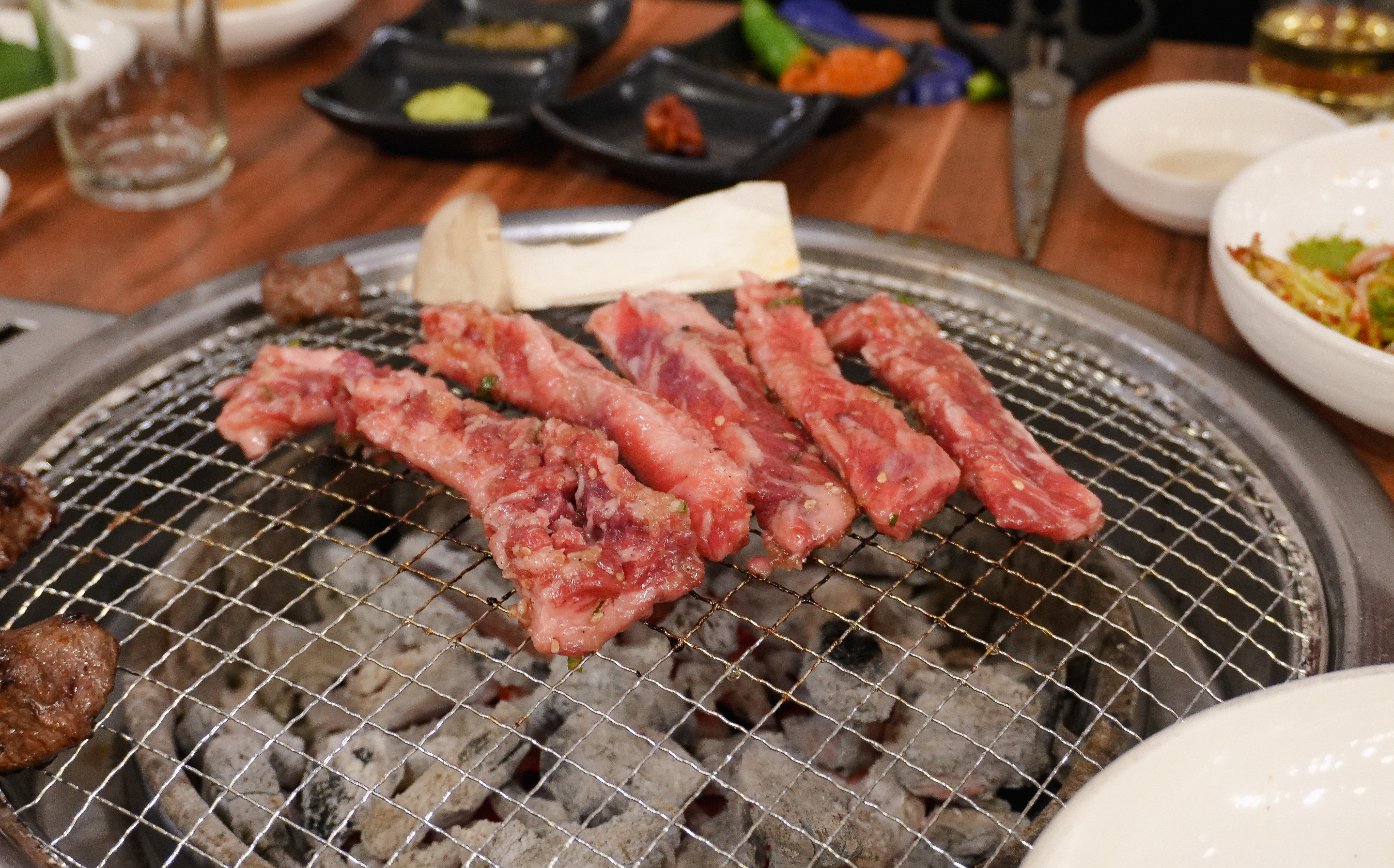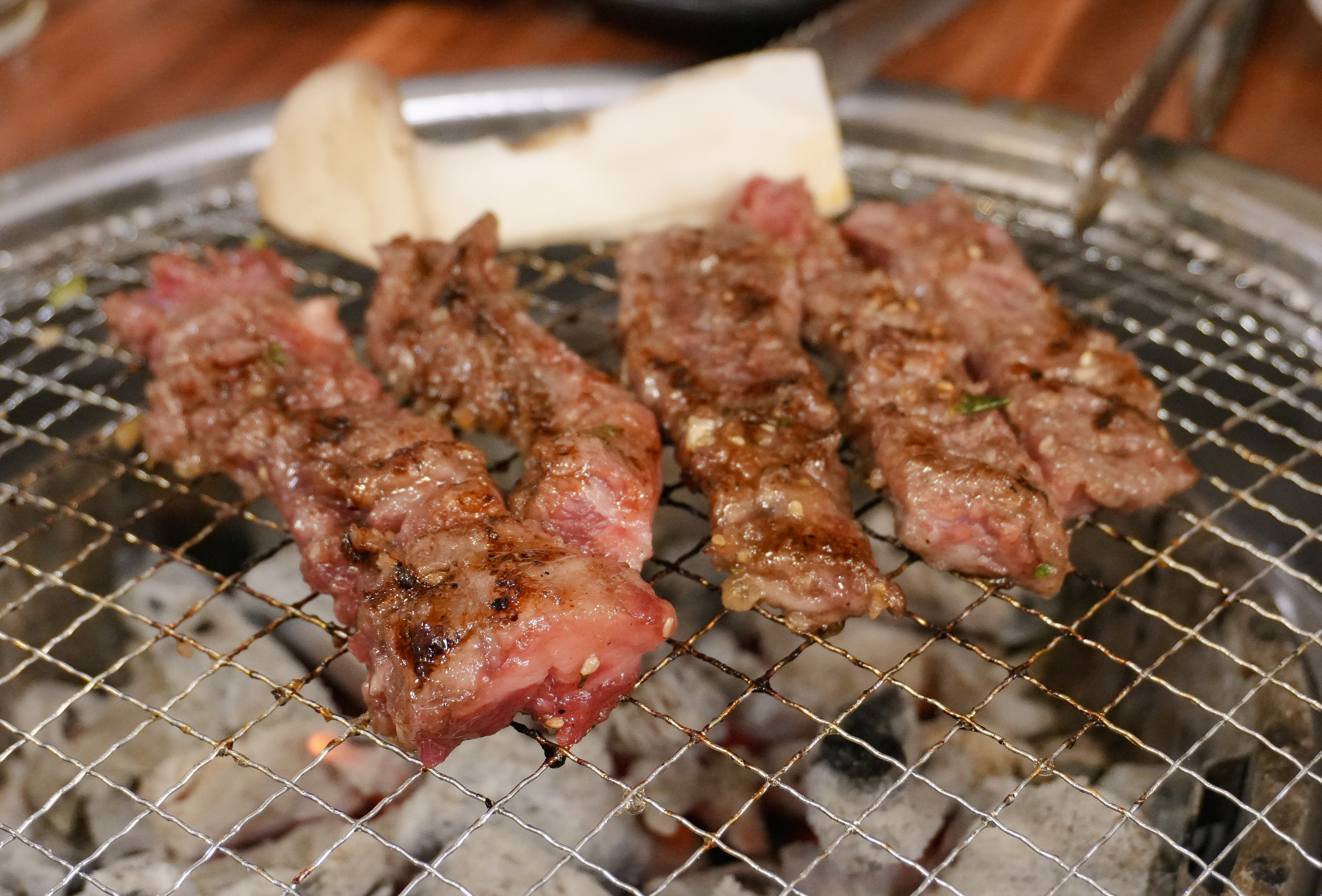 제가 카메라를 들고 열심히 촬영하는 모습을 보시고는 사장님이(?) 서비스로 콘치즈도 주셨습니다. 소고기라 그런지 불판 위에서 금세 익어가더라고요.