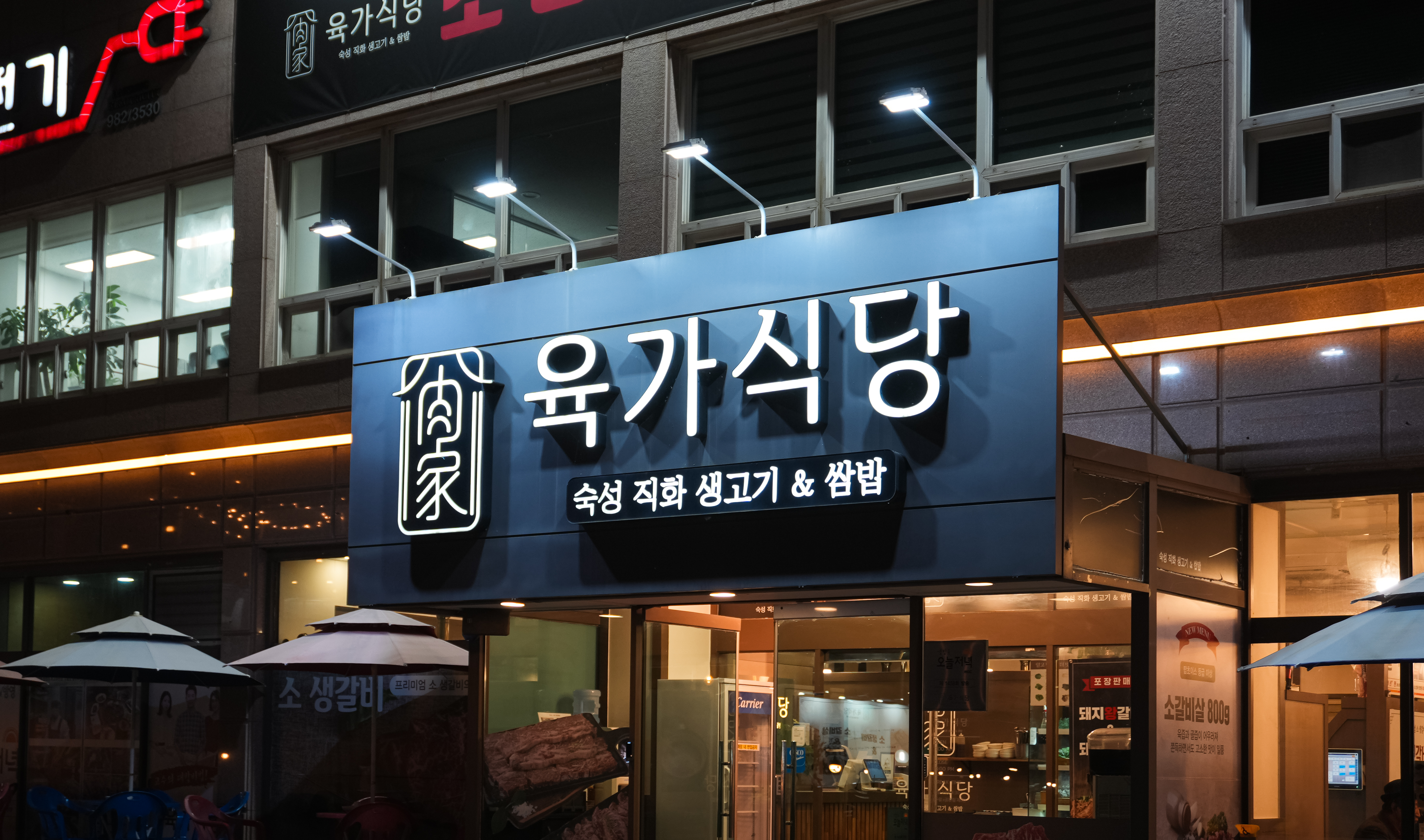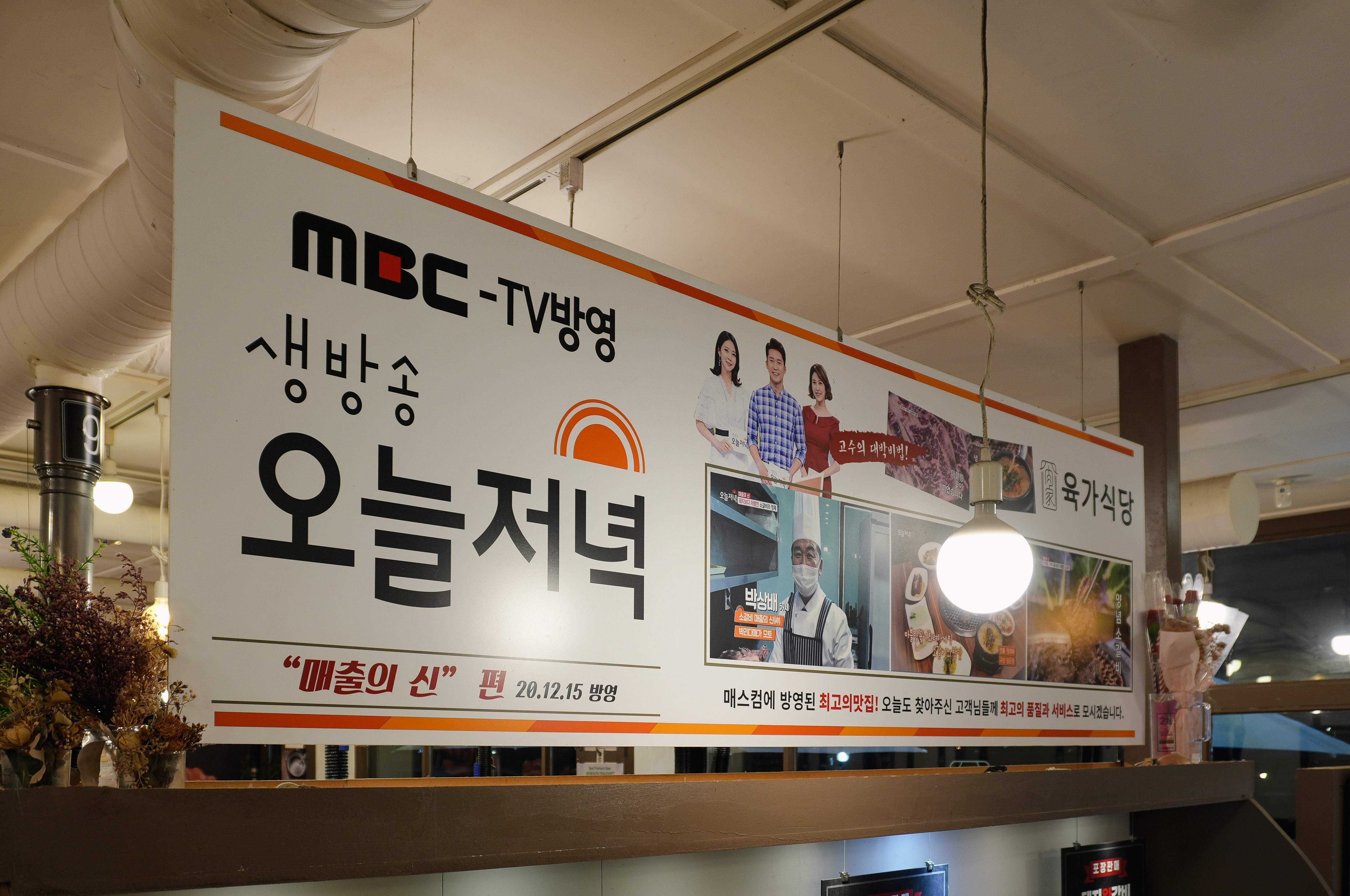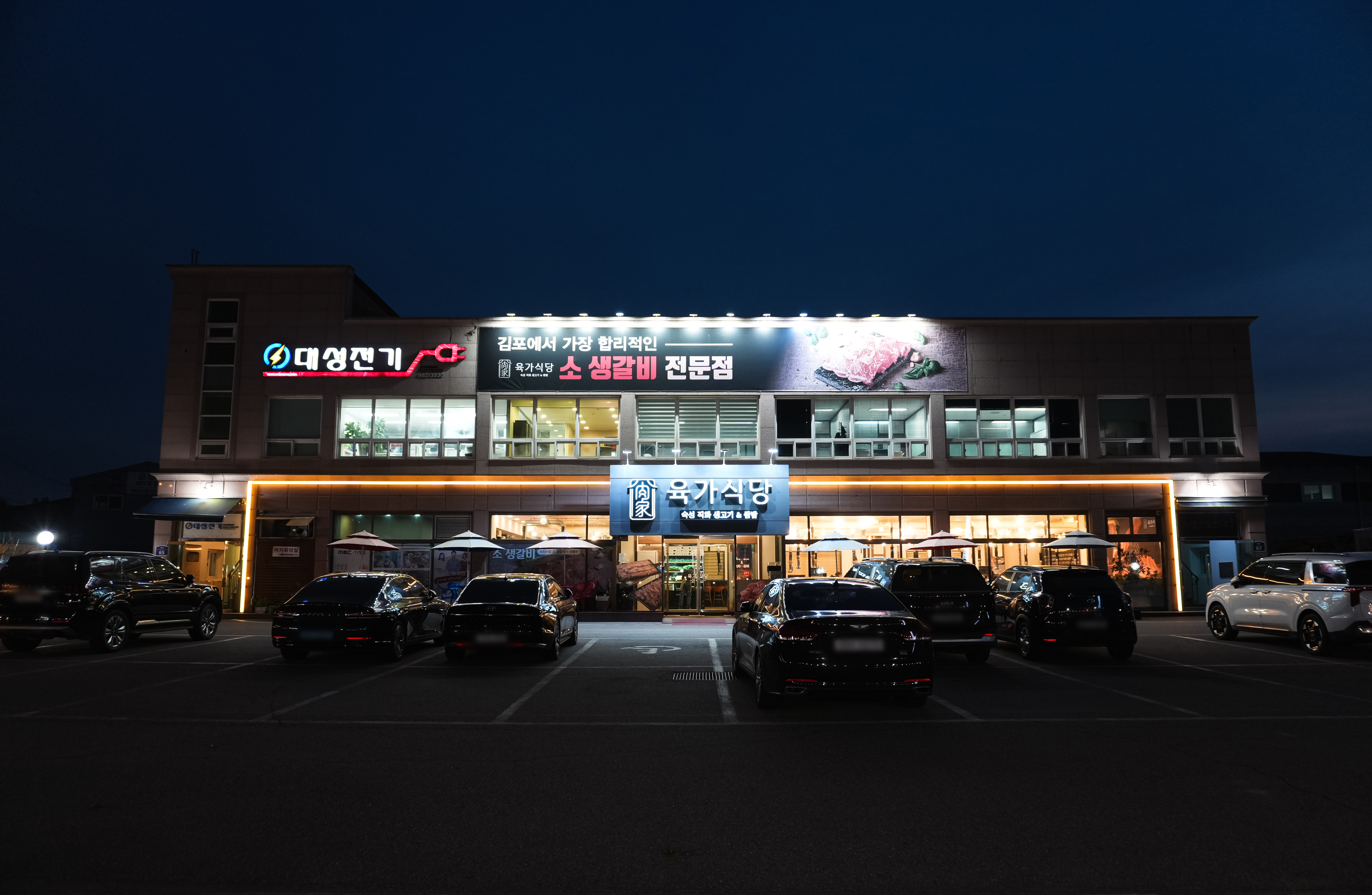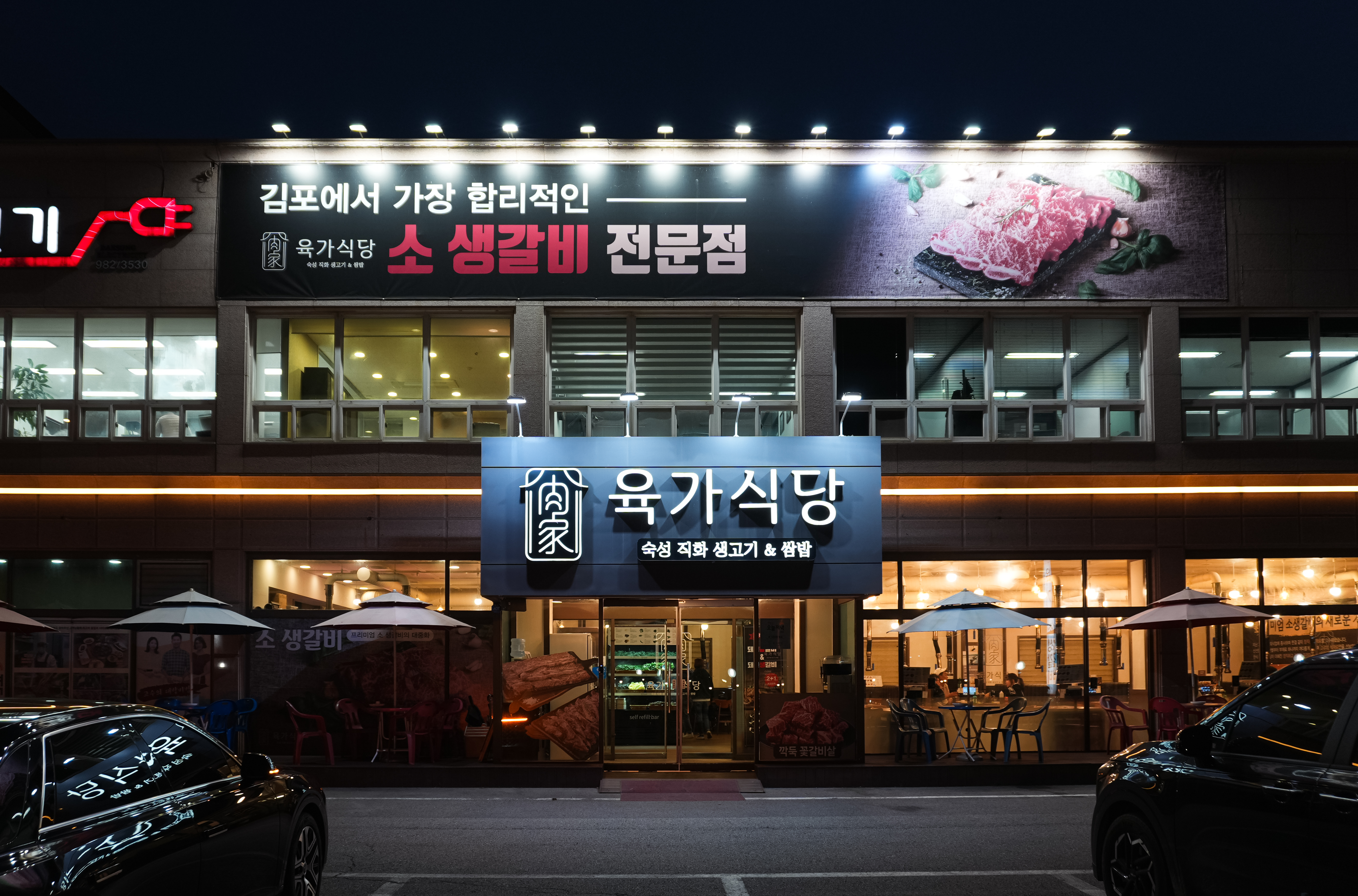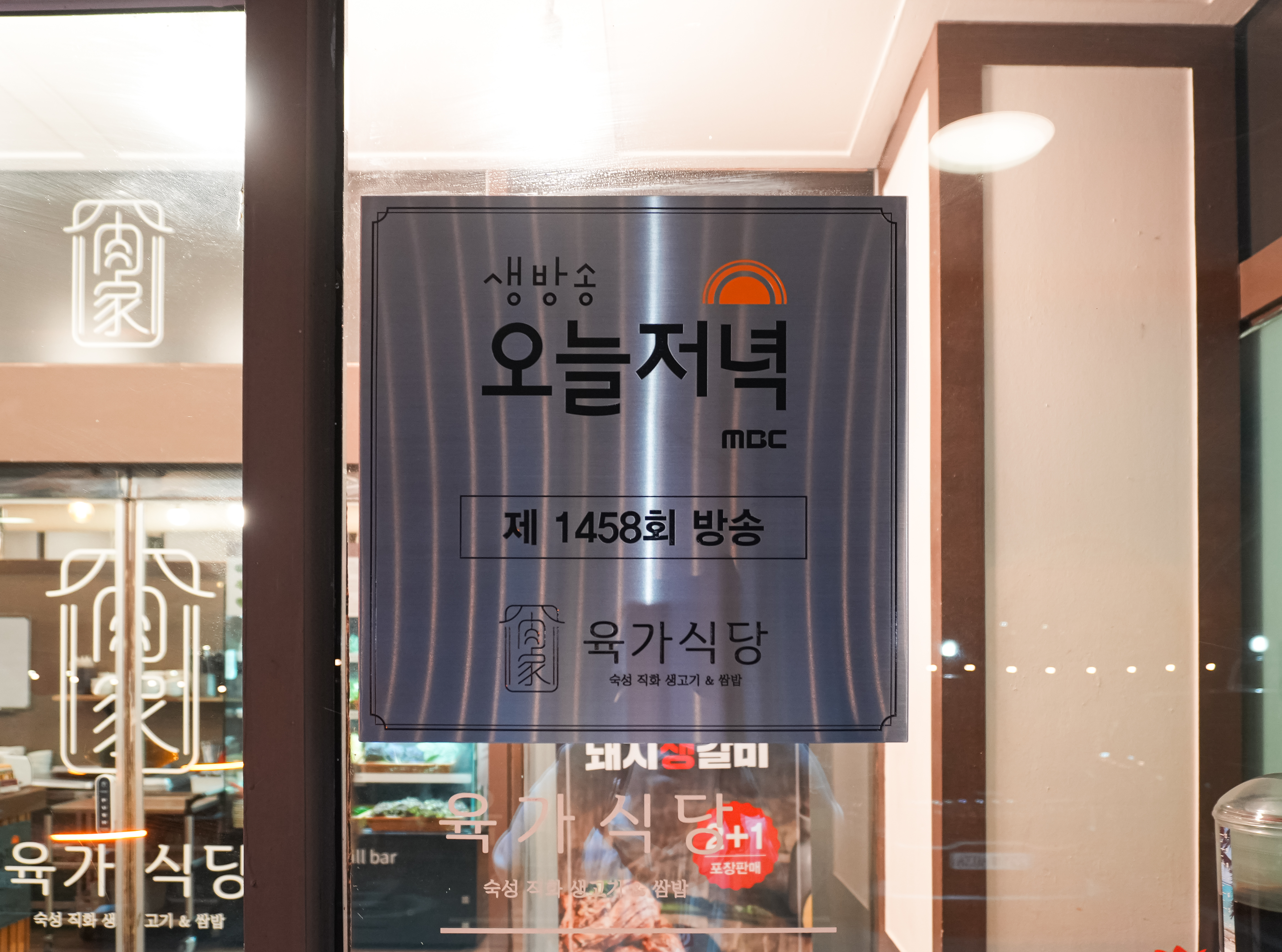 육가식당은 경기 김포시 양촌읍 석모리 1154에 위치한 가게입니다. 육가식당은 가게 전면에서부터 '김포에서 가장 합리적인 소 생갈비 전문점'이라는 슬로건이 붙어있었습니다. 특히 간판에는 숙성 직화 생고기와 쌈밥이 쓰여있는 것을 보니 쌈에도 꽤 힘을 준 모양이더라고요. 이곳은 MBC⎡생방송 오늘저녁⎦이라는 프로그램에 방송된 적이 있는 것 같았습니다.