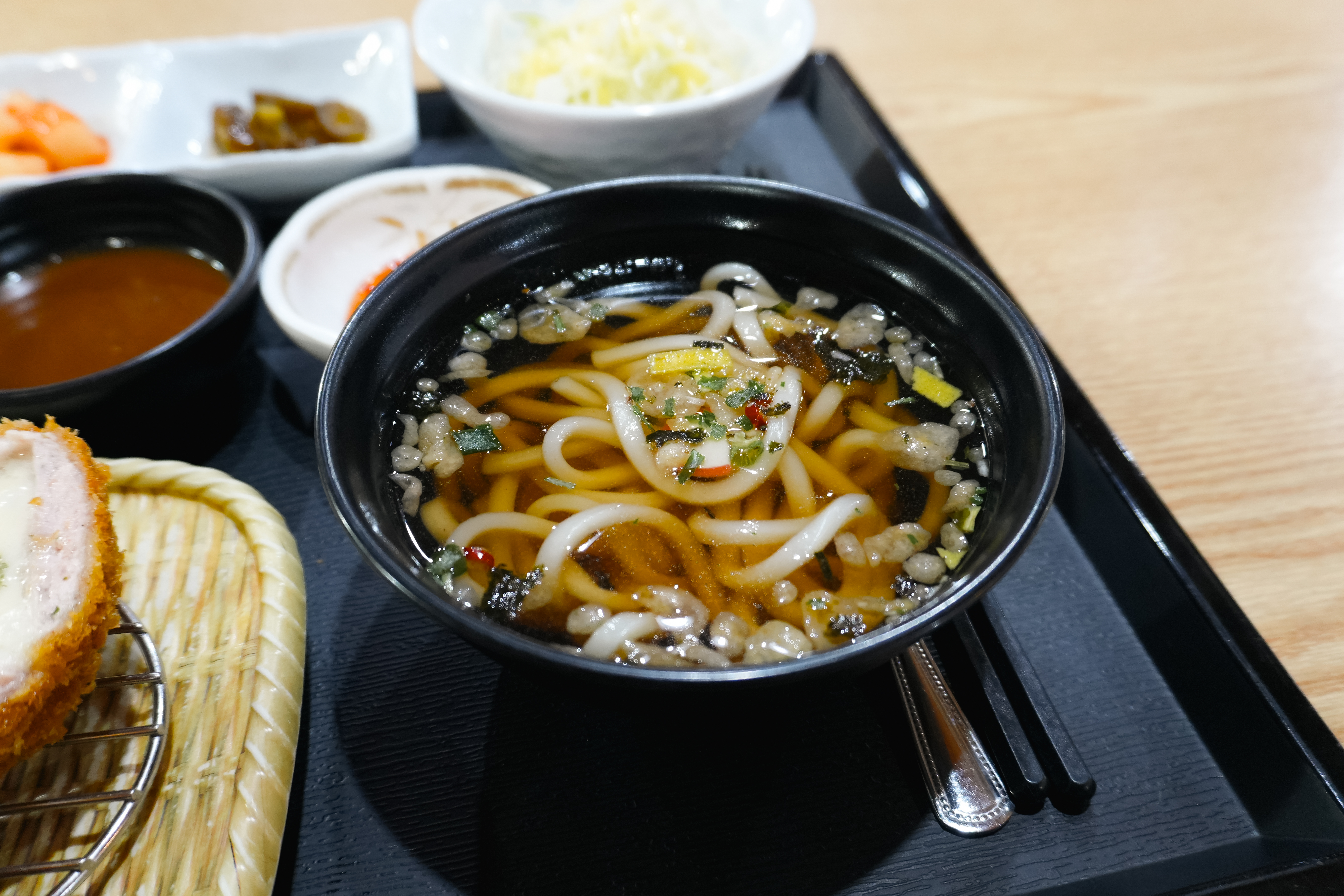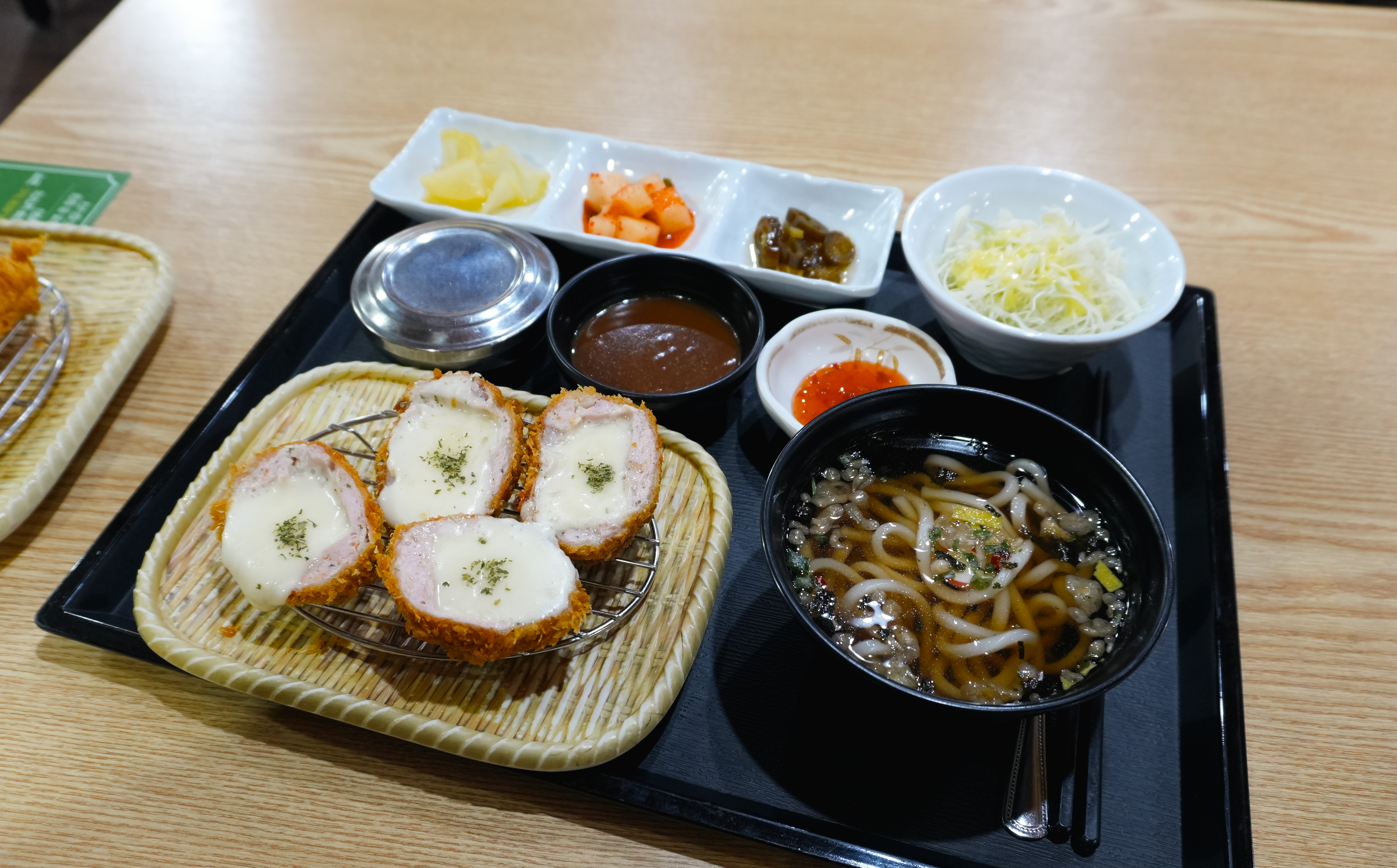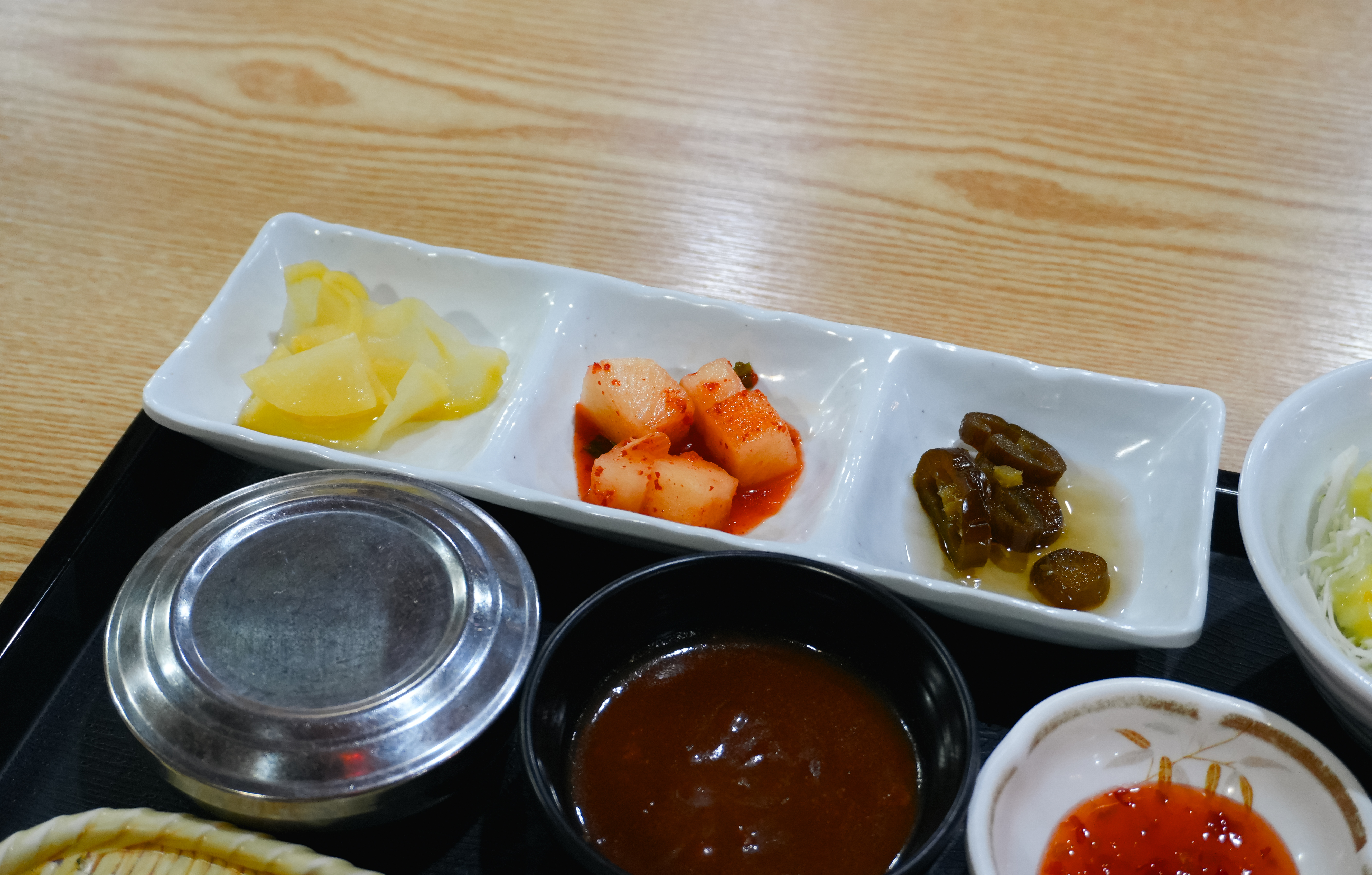 곧이어 주문한 마니온의 치즈볼카츠가 나왔습니다. 치즈볼카츠는 우동이 같이 나오는 정식 형태로 제공되었는데, 여전히 반찬들도 깔끔하고 먹음직스러웠고, 특히 유자로 맛을 낸 단무지도 정말 맛있었습니다.
