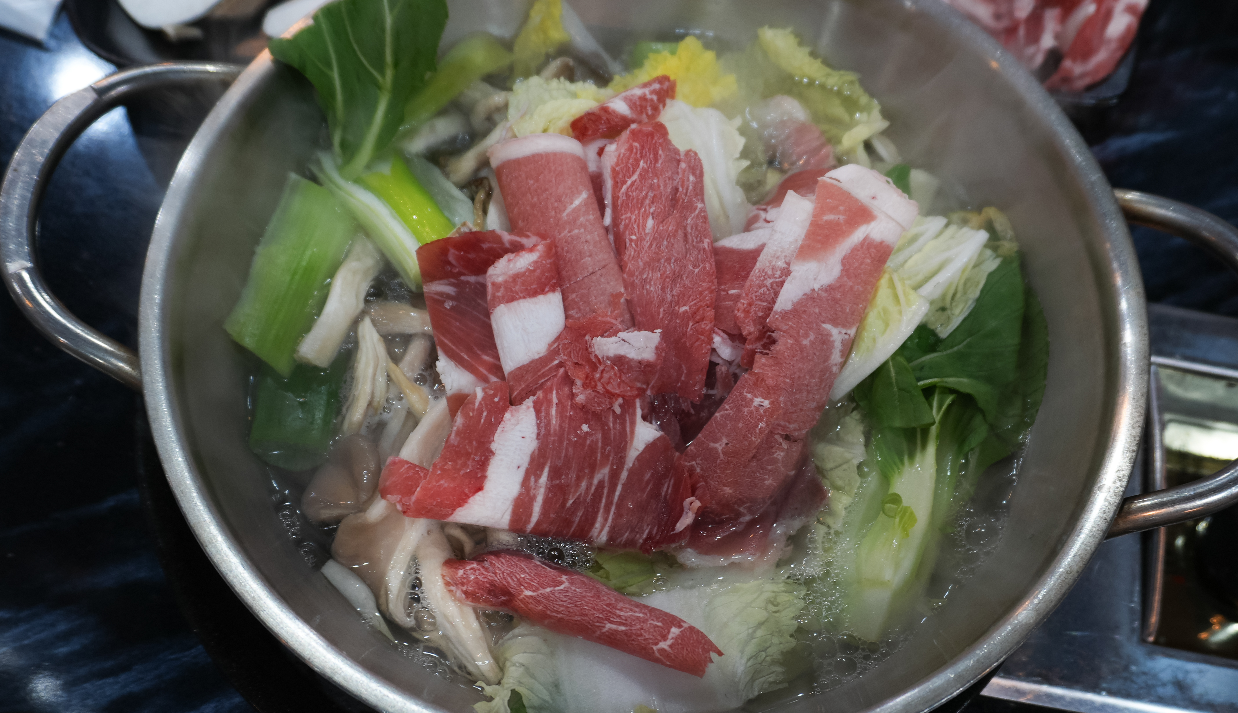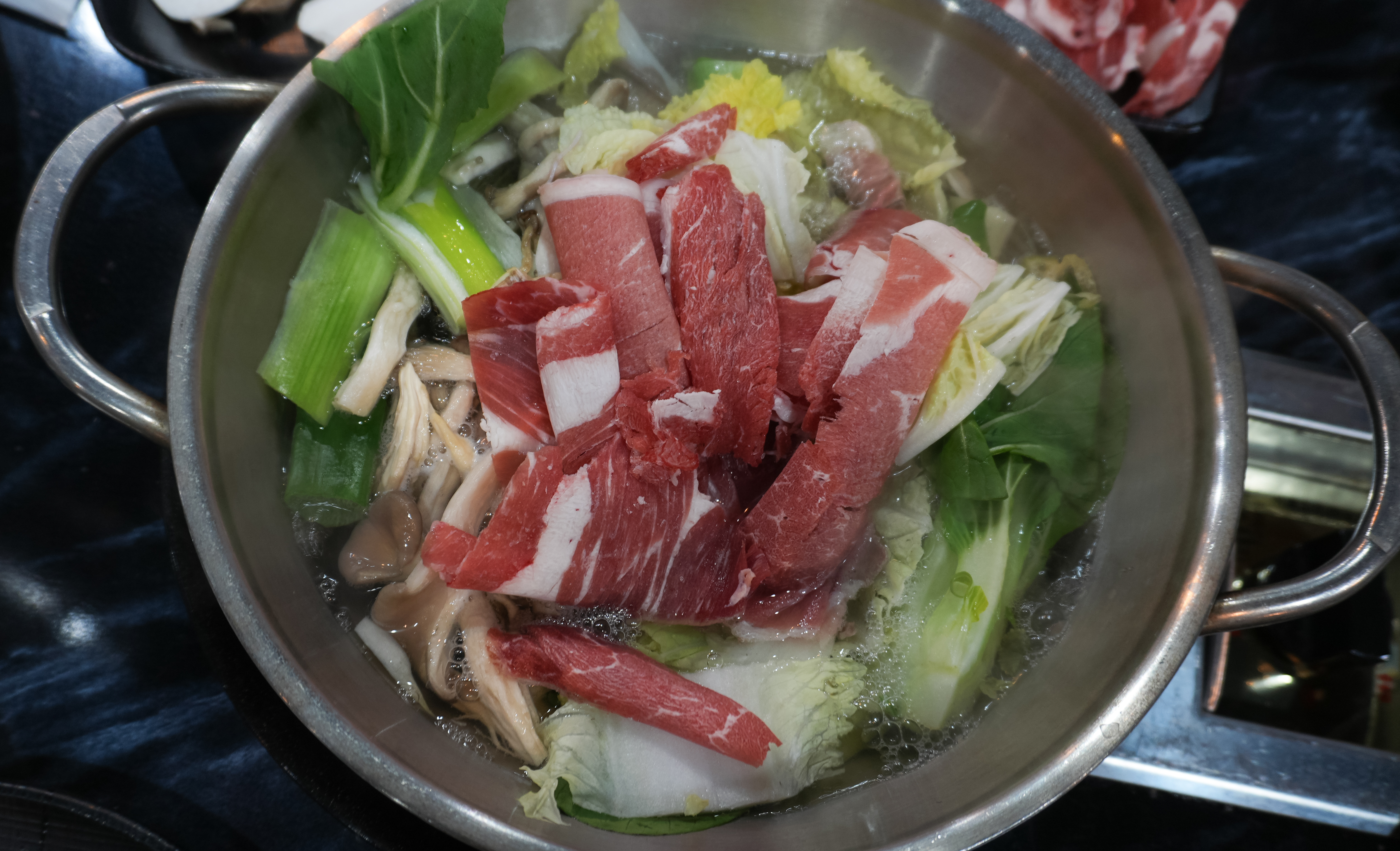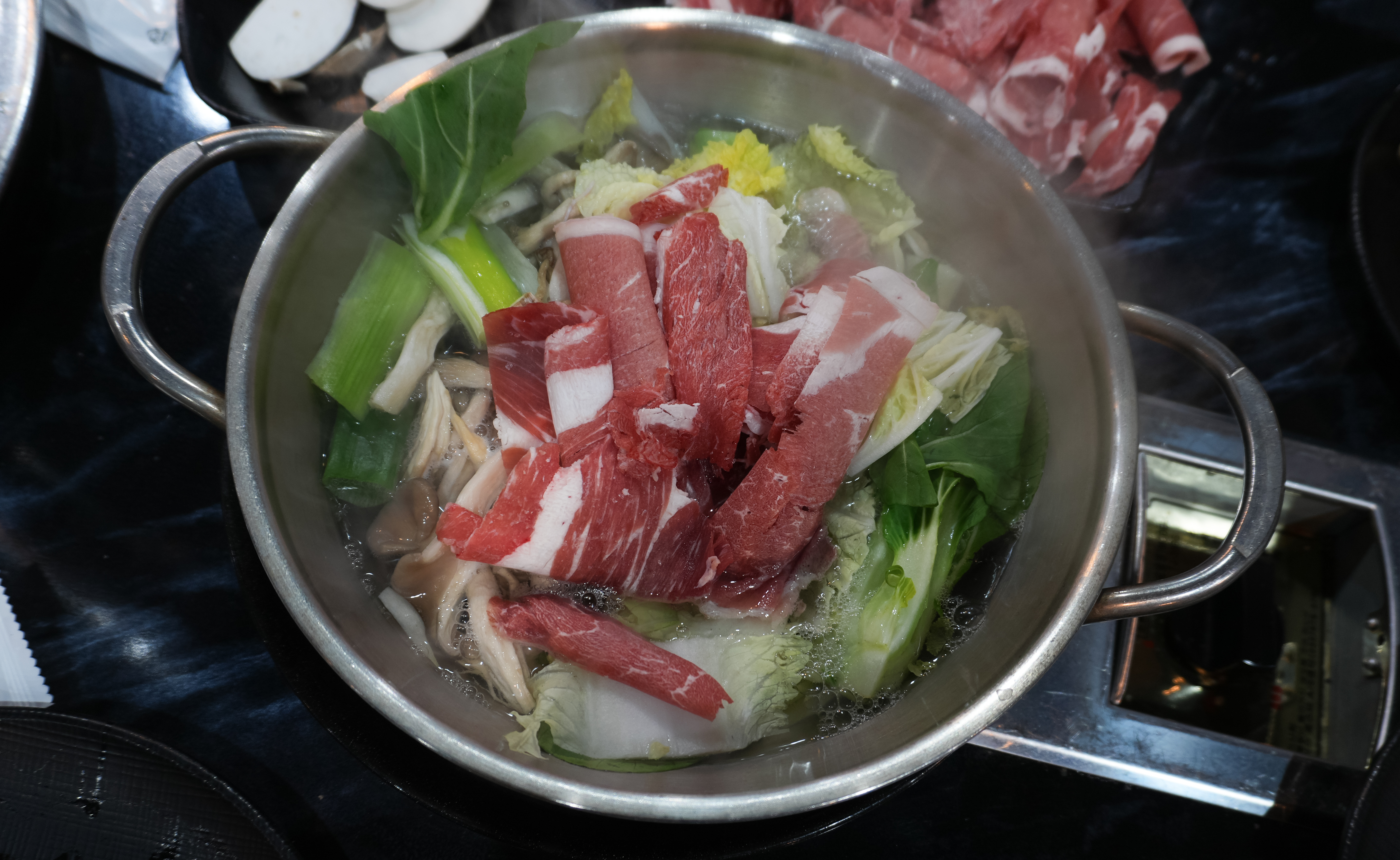 이번에 샤브샤브도 먹어보았는데, 기존의 고기 무한리필에 1,000원만 추가하면 먹을 수 있으니까 크게 부담스럽지는 않았습니다. 고기는 추가비용이 발생하지만 처음 제공되는 고기만 해도 양이 넉넉한 듯했고, 샤브샤브에 넣는 채소와 부재료들로 이미 배불리 먹을 수 있었습니다.