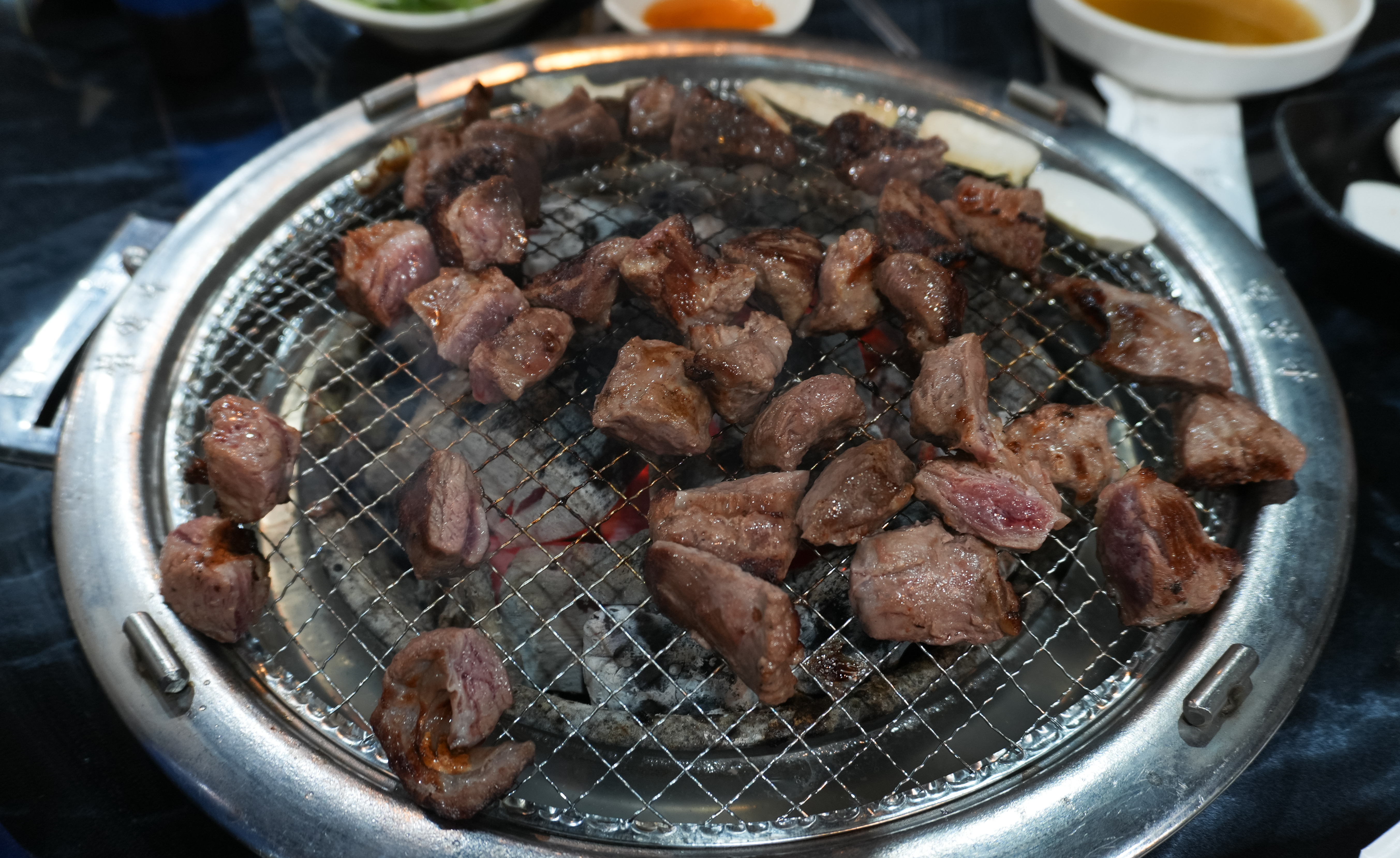 저는 이곳의 갈매기살을 좋아하기 때문에 갈매기살 위주로 구워서 먹었습니다. 사실 같이 간 형이 어떤 메뉴를 좋아하실지 몰라서 고민했는데, 생각보다 만족해하시더라고요. 갈매기살은 쫄깃한 식감과 고소한 맛이 참 매력적인 부위인 것 같습니다. 어지간해서 삼겹살보다도 물리지 않는 것 같더라고요.