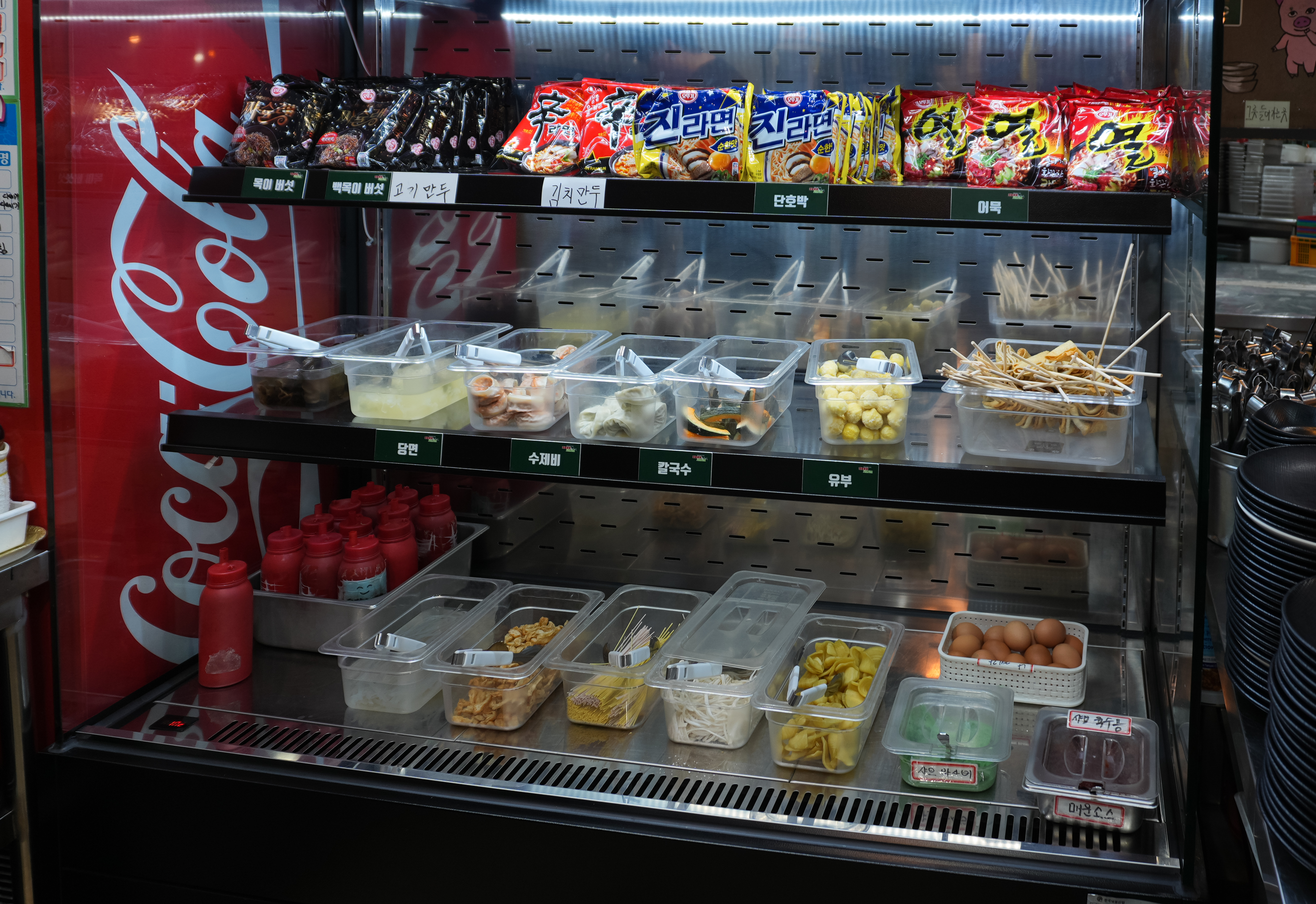 그 밖에도 샤브샤브용 라면, 당면, 만두, 단호박, 어묵, 유부, 수제비, 달걀, 채 썬 양파와 적치커리 등이 있었습니다. 광주 태능갈비샤브샤브는 고기뷔페인데도 셀프바가 꽤 잘 되어있는 편이었고, 고기질도 나쁘지 않았습니다.