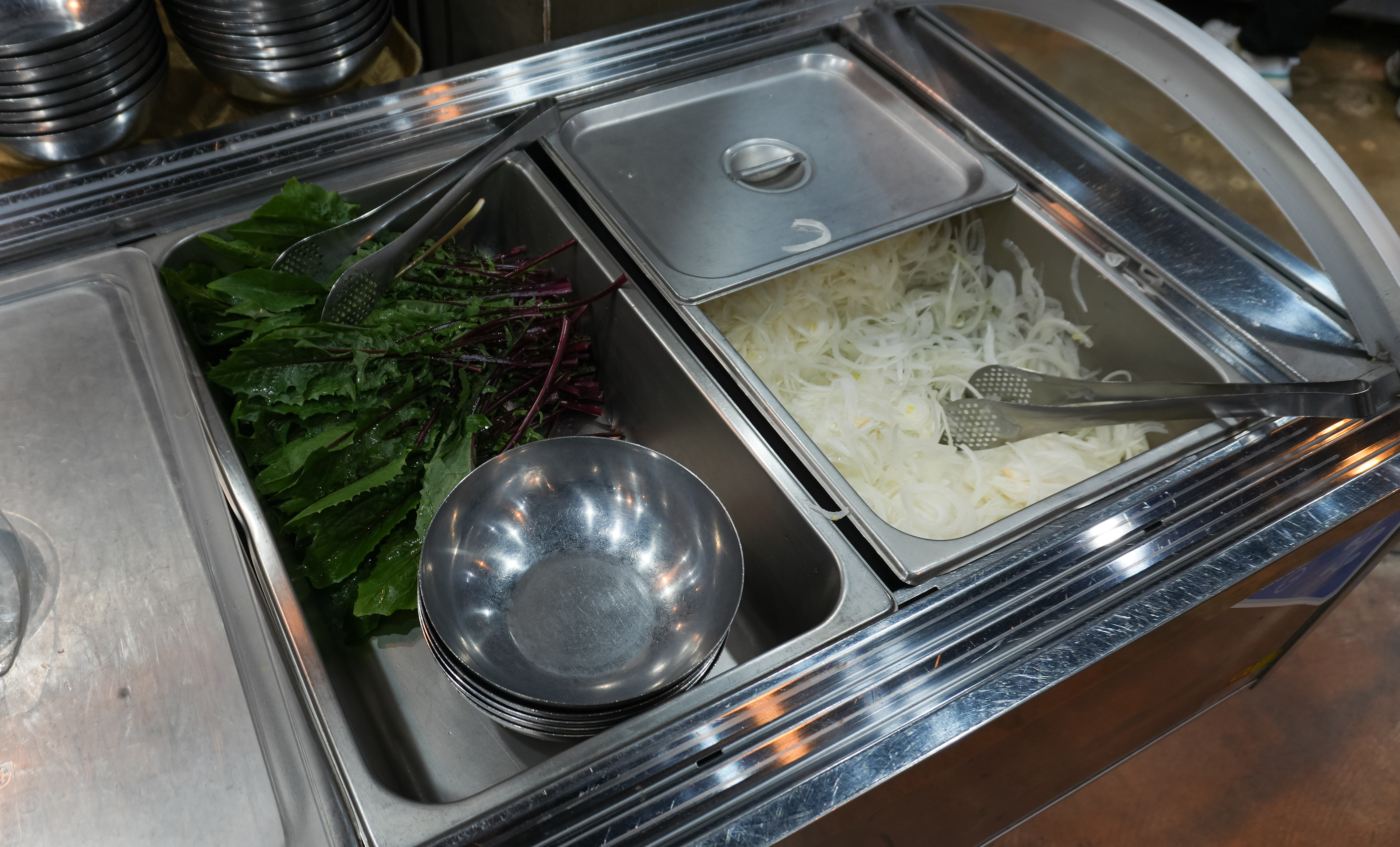 그 밖에도 샤브샤브용 라면, 당면, 만두, 단호박, 어묵, 유부, 수제비, 달걀, 채 썬 양파와 적치커리 등이 있었습니다. 광주 태능갈비샤브샤브는 고기뷔페인데도 셀프바가 꽤 잘 되어있는 편이었고, 고기질도 나쁘지 않았습니다.