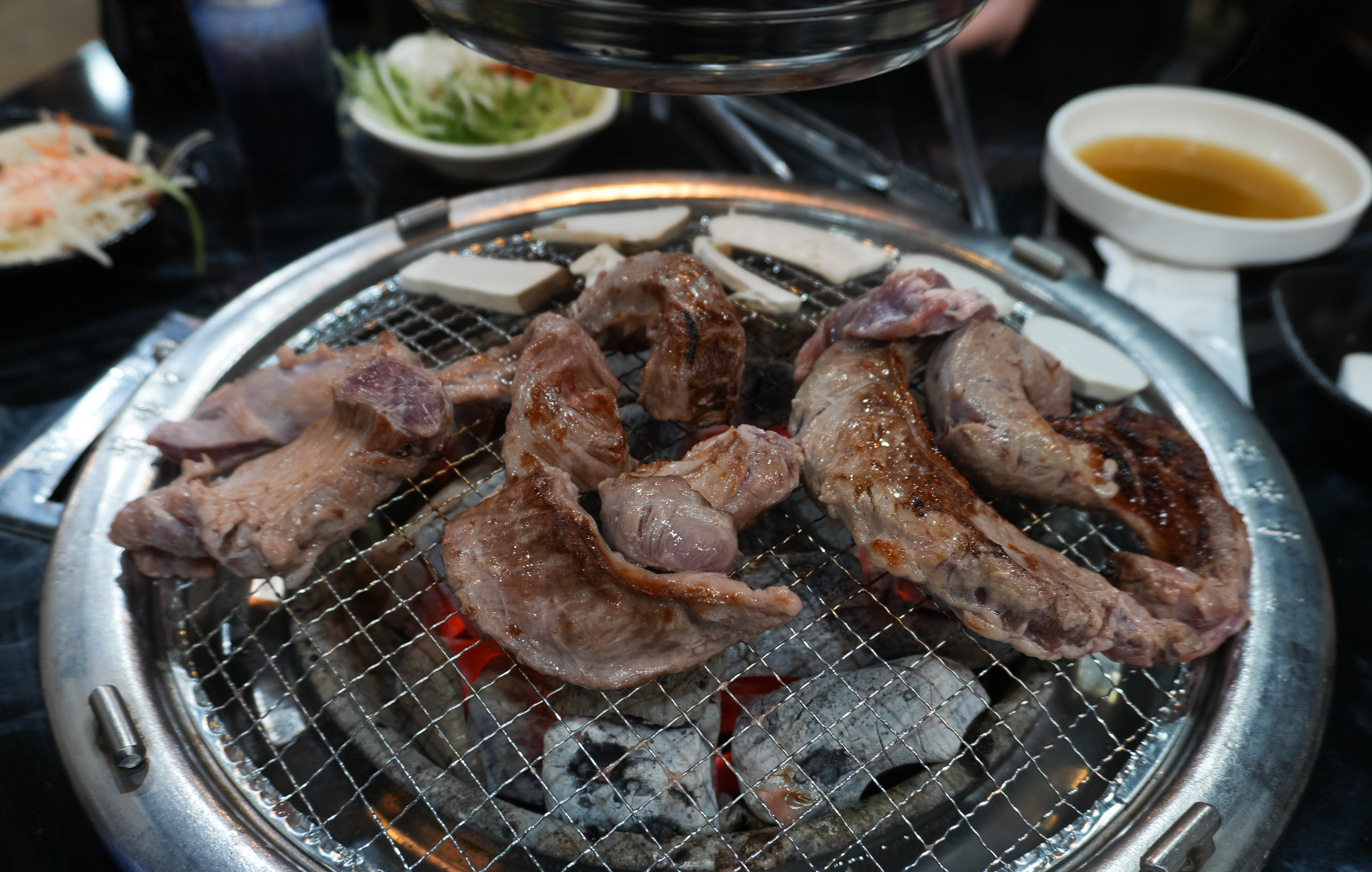 저는 이곳의 갈매기살을 좋아하기 때문에 갈매기살 위주로 구워서 먹었습니다. 사실 같이 간 형이 어떤 메뉴를 좋아하실지 몰라서 고민했는데, 생각보다 만족해하시더라고요. 갈매기살은 쫄깃한 식감과 고소한 맛이 참 매력적인 부위인 것 같습니다. 어지간해서 삼겹살보다도 물리지 않는 것 같더라고요.