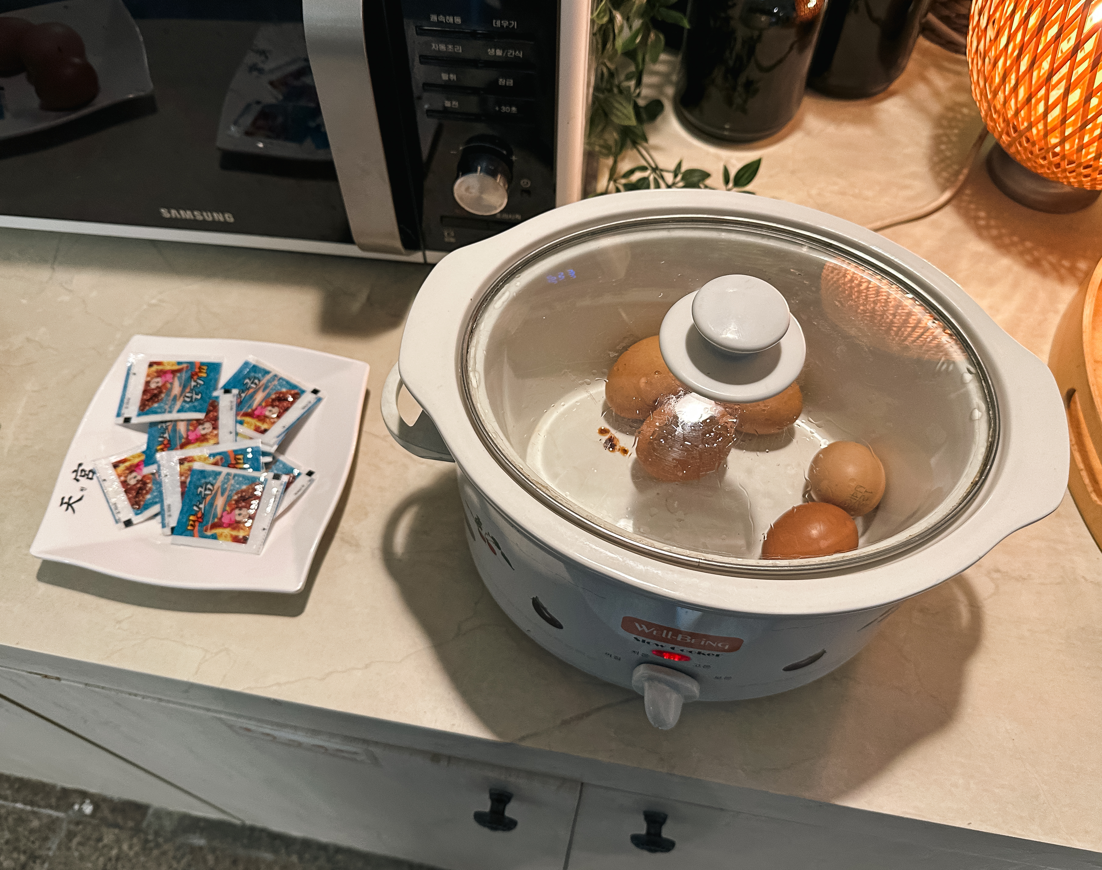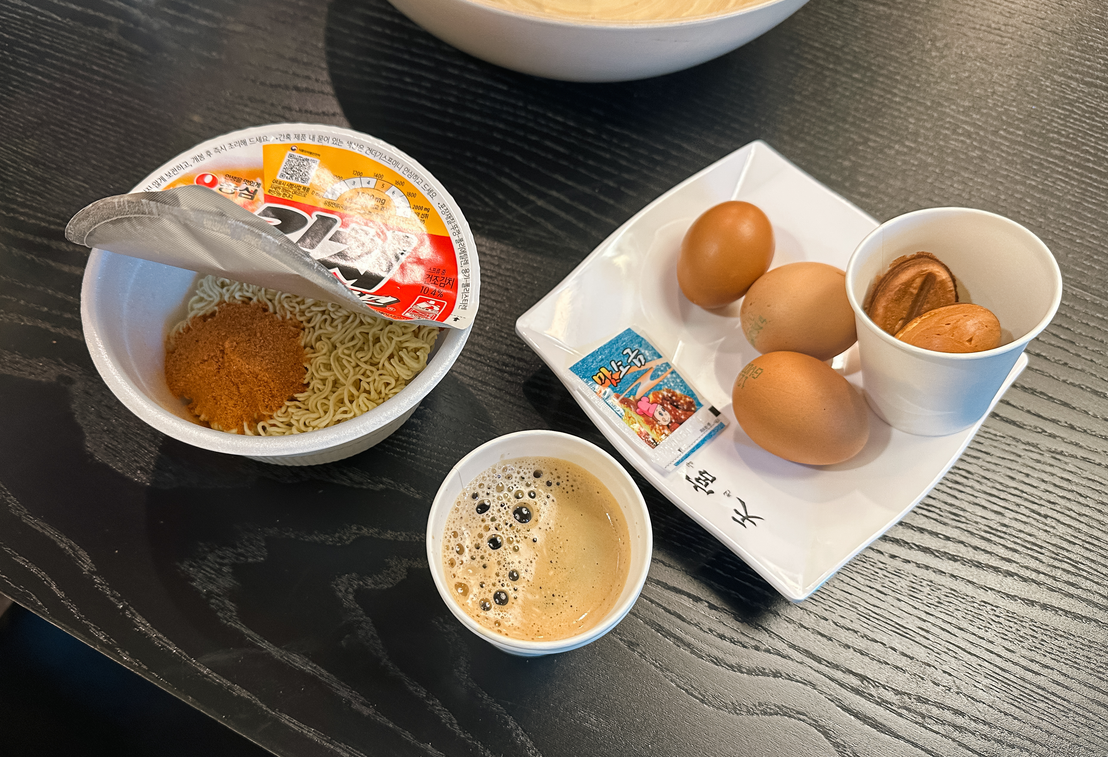 남원 리버호텔에는 나름 조식(?)도 있었습니다. 컵라면과 슬로우쿠커에 직접 구운계란, 커피, 커피콩빵 등이 제공되었는데, 계란을 직접 구워서 그런지 따뜻하고 맛있더라고요.