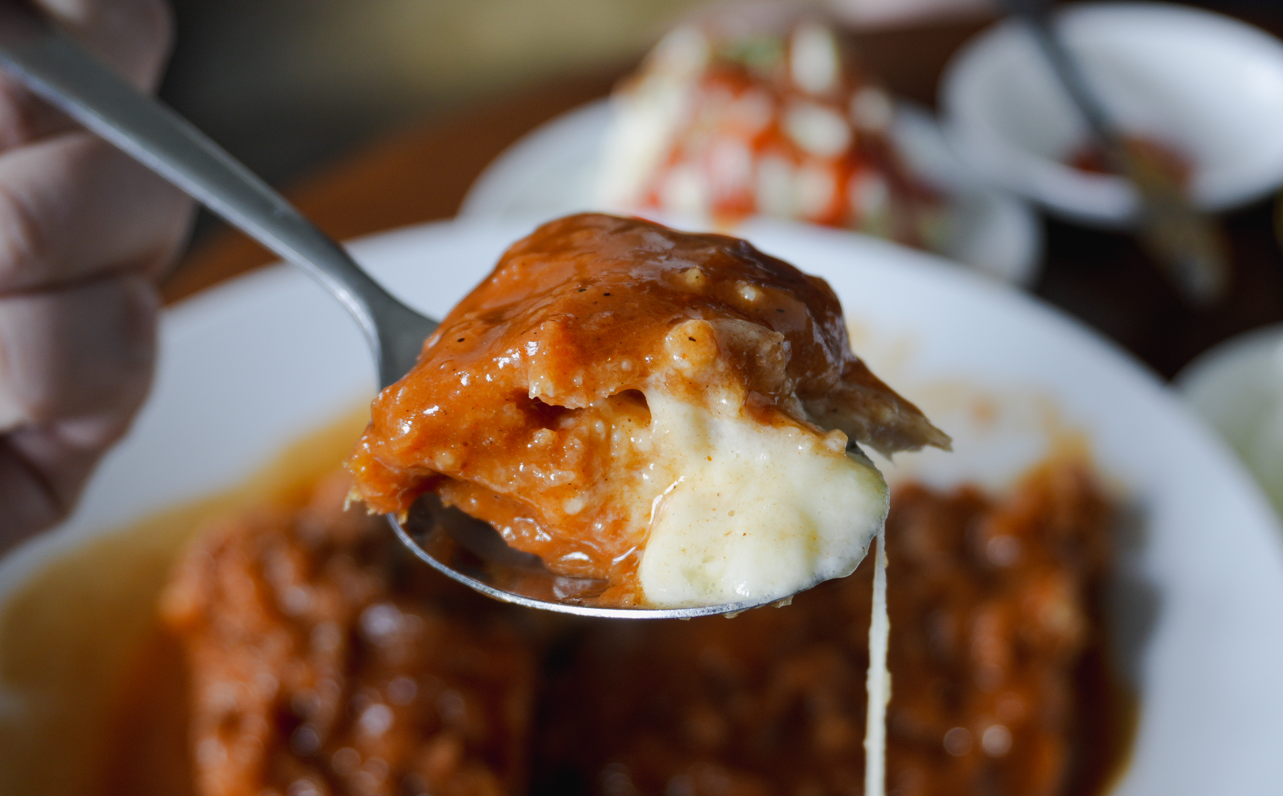 미주택의 특제 돈까스는 기본 치즈돈까스에 토마토와 버섯 등을 넣어서 마치 피자를 먹는 듯 한 느낌을 주었습니다. 포크가 함께 제공되었으나, 치즈의 양과 내용물이 워낙 많아서 포크보다는 숟가락으로 퍼 먹을 지경에 이르렀죠. 돈까스 양도 제법 많아서 쌀국수와 함께 먹으니 배가 무척 부르더라고요.