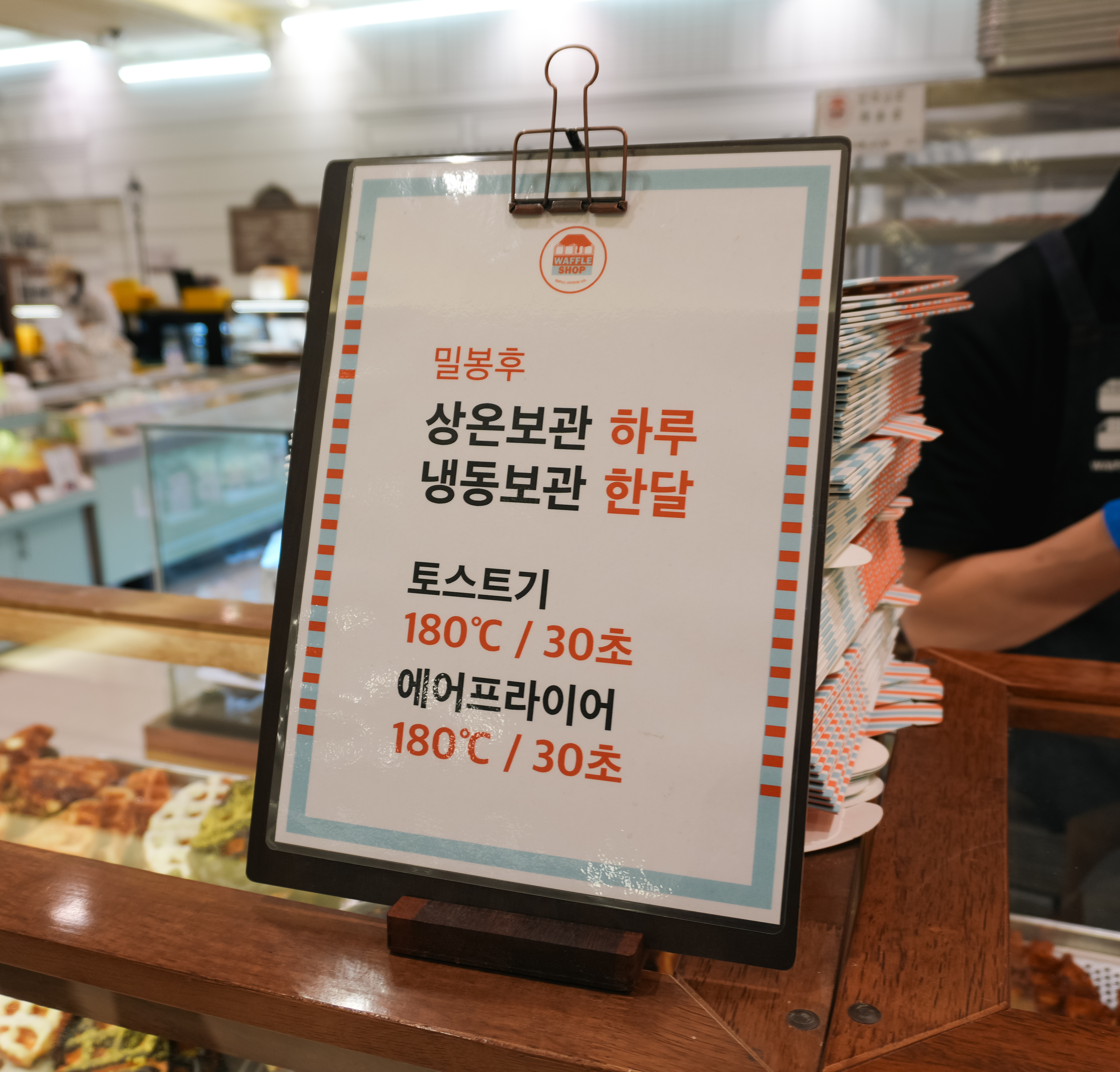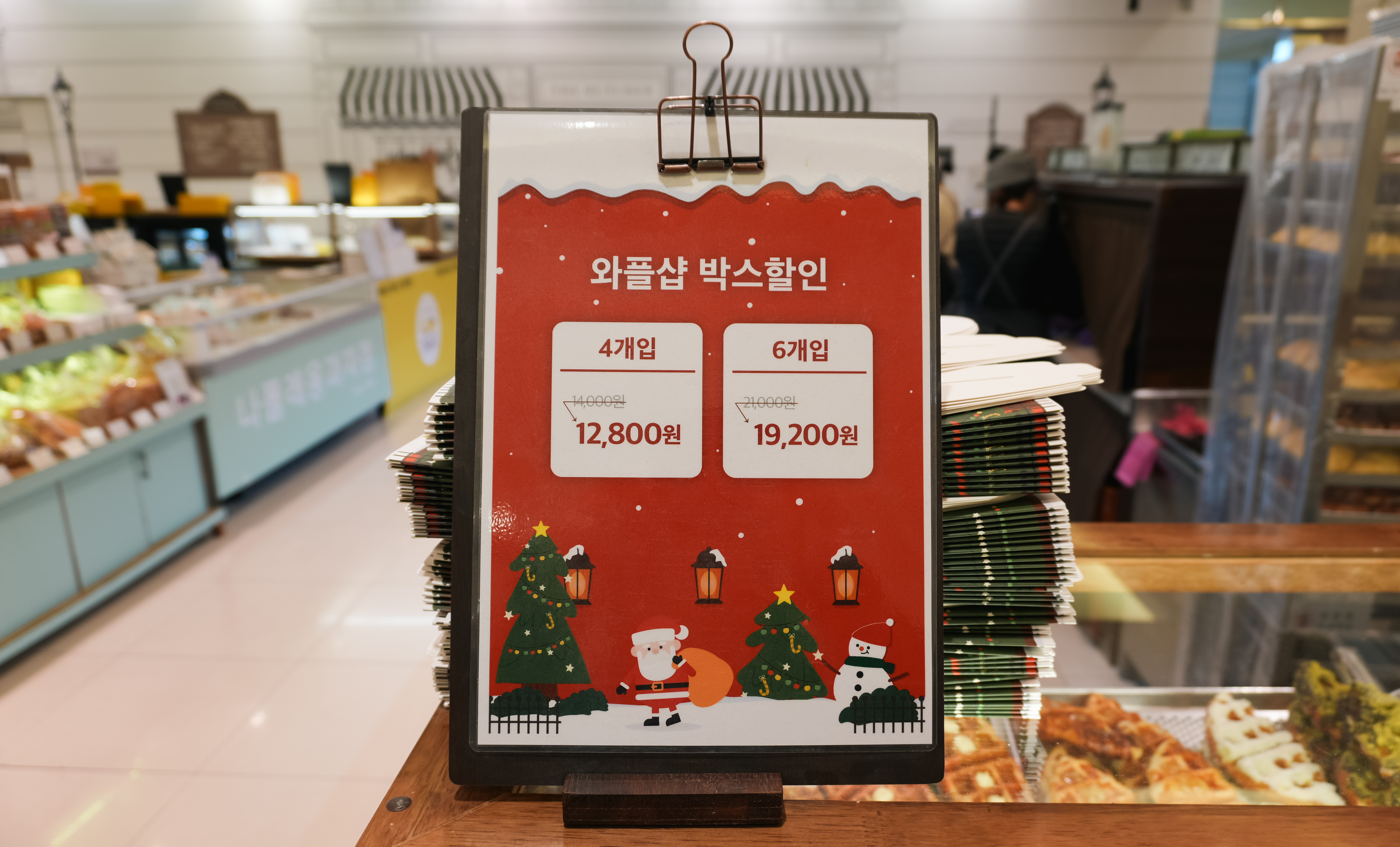 와플샵의 메뉴들은 낱개로는 3,500~3,800원 사이로 판매 중이었는데, 박스로 구성해서 구입하면 4개 12,800원, 6개 19,200원에 구입할 수도 있었습니다. 기왕이면 박스단위로 구입하는 것이 일정금액 할인이 되니깐 괜찮은 것 같더라고요.